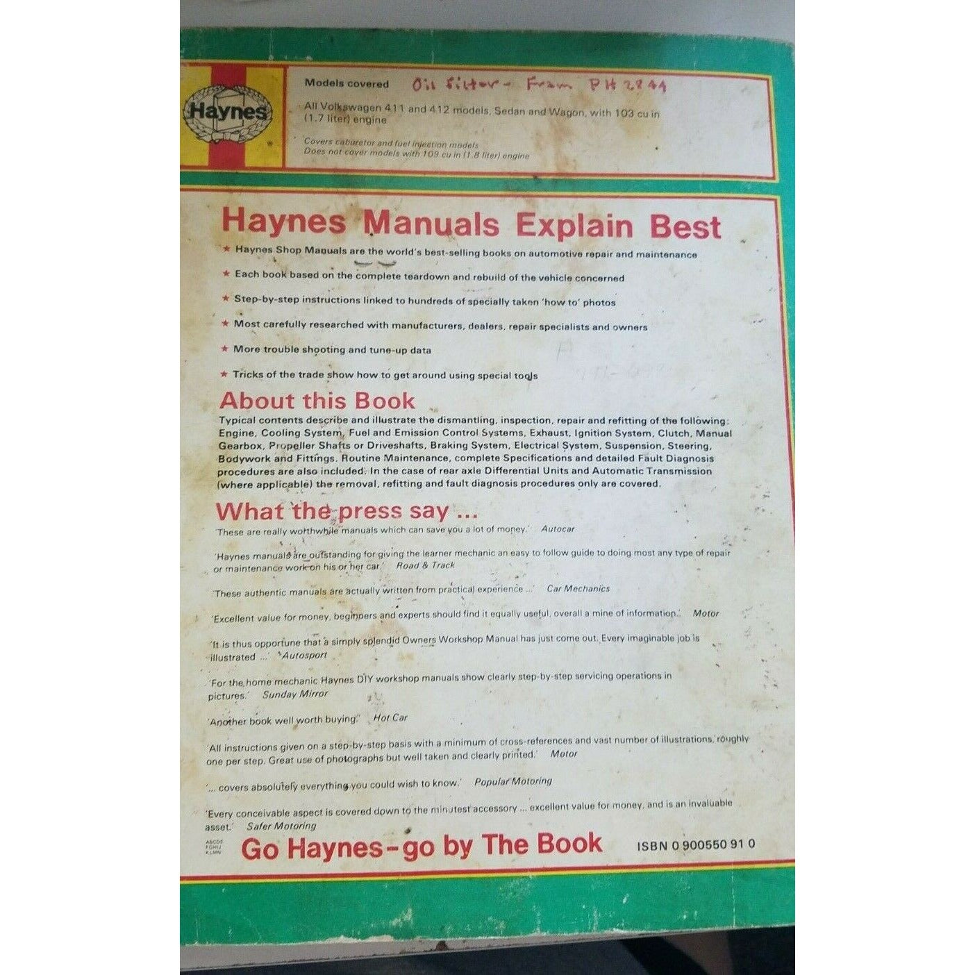 1968 -1973 Haynes Volkswagen 411 412 103 cu 1.7 L Owners Workshop Manual