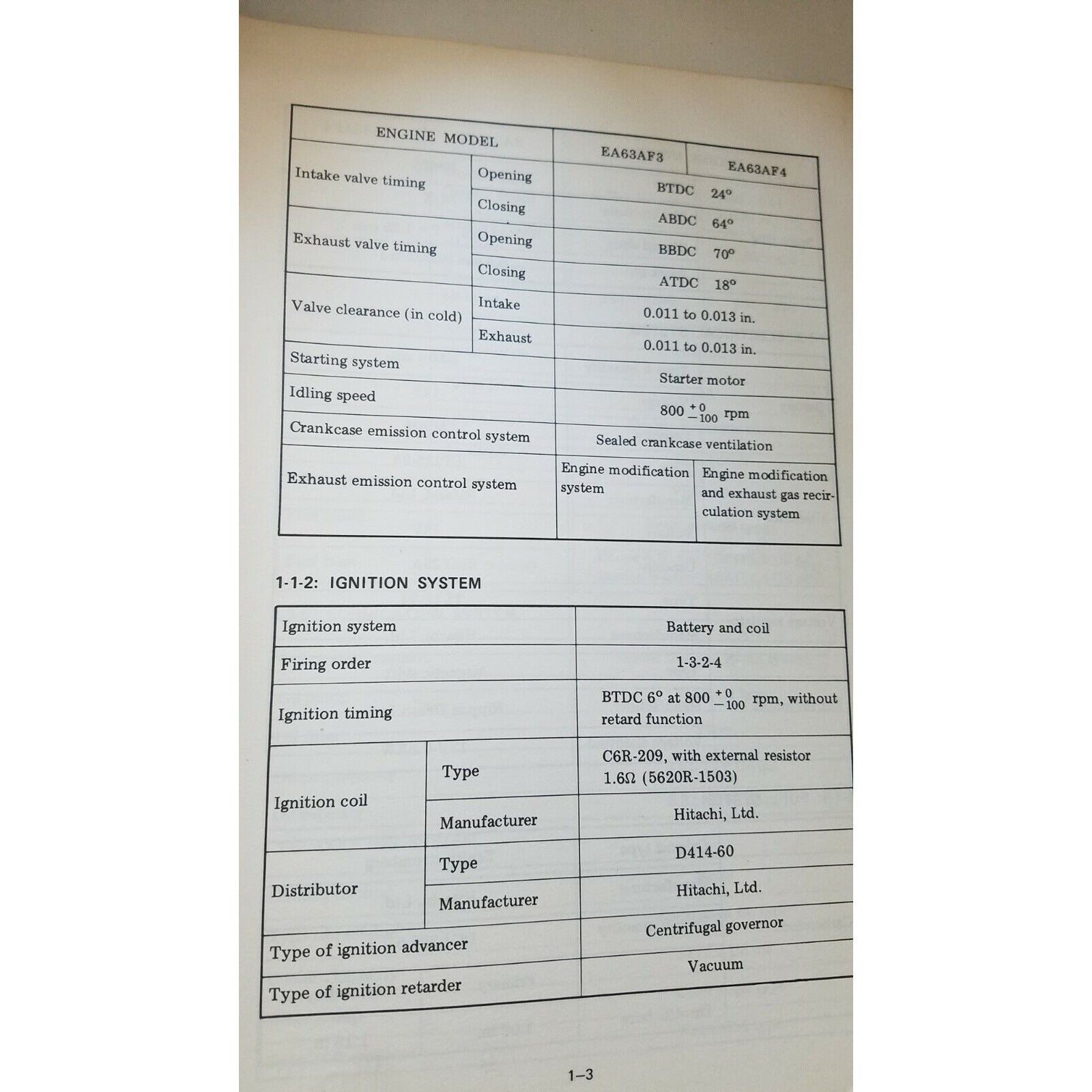 1974 Subaru 1400 MSA 102 B Year USA Model Service Manual Engine Section