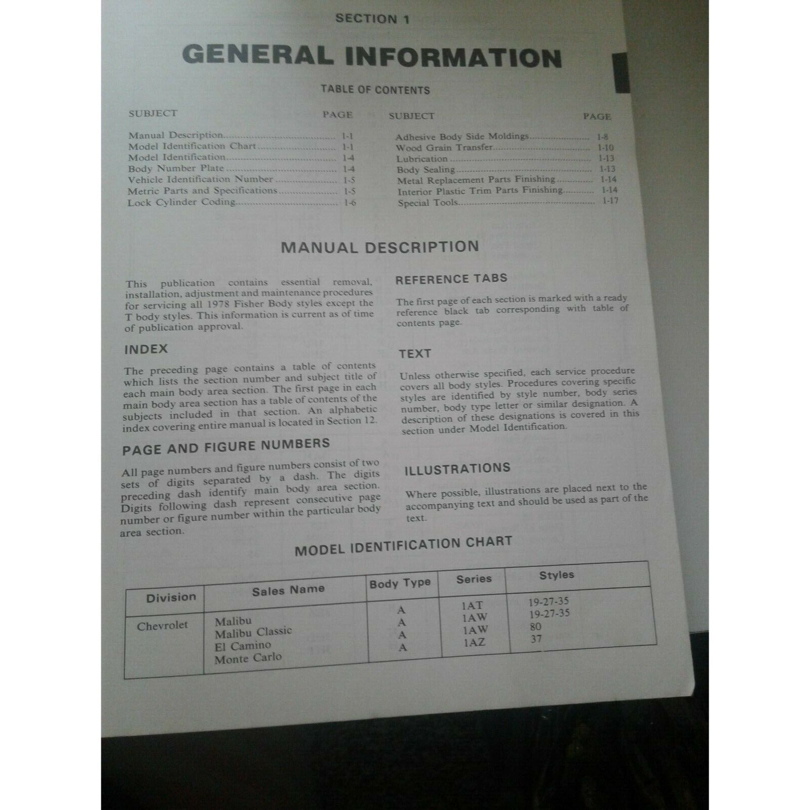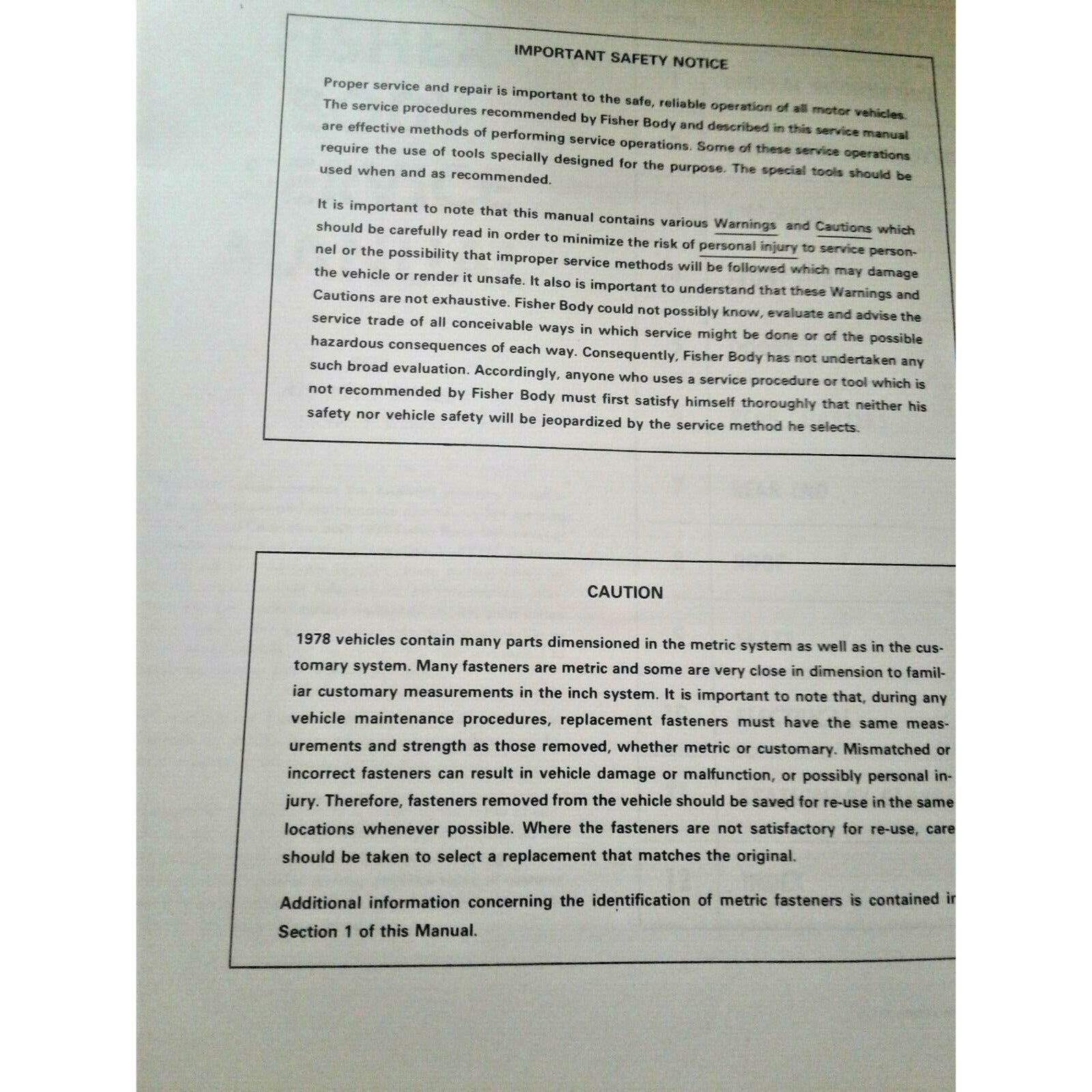 1978 Fisher Body Service Manual, Chevy/ Pontiac/ Oldsmobile/ Buick/ Cadillac GM