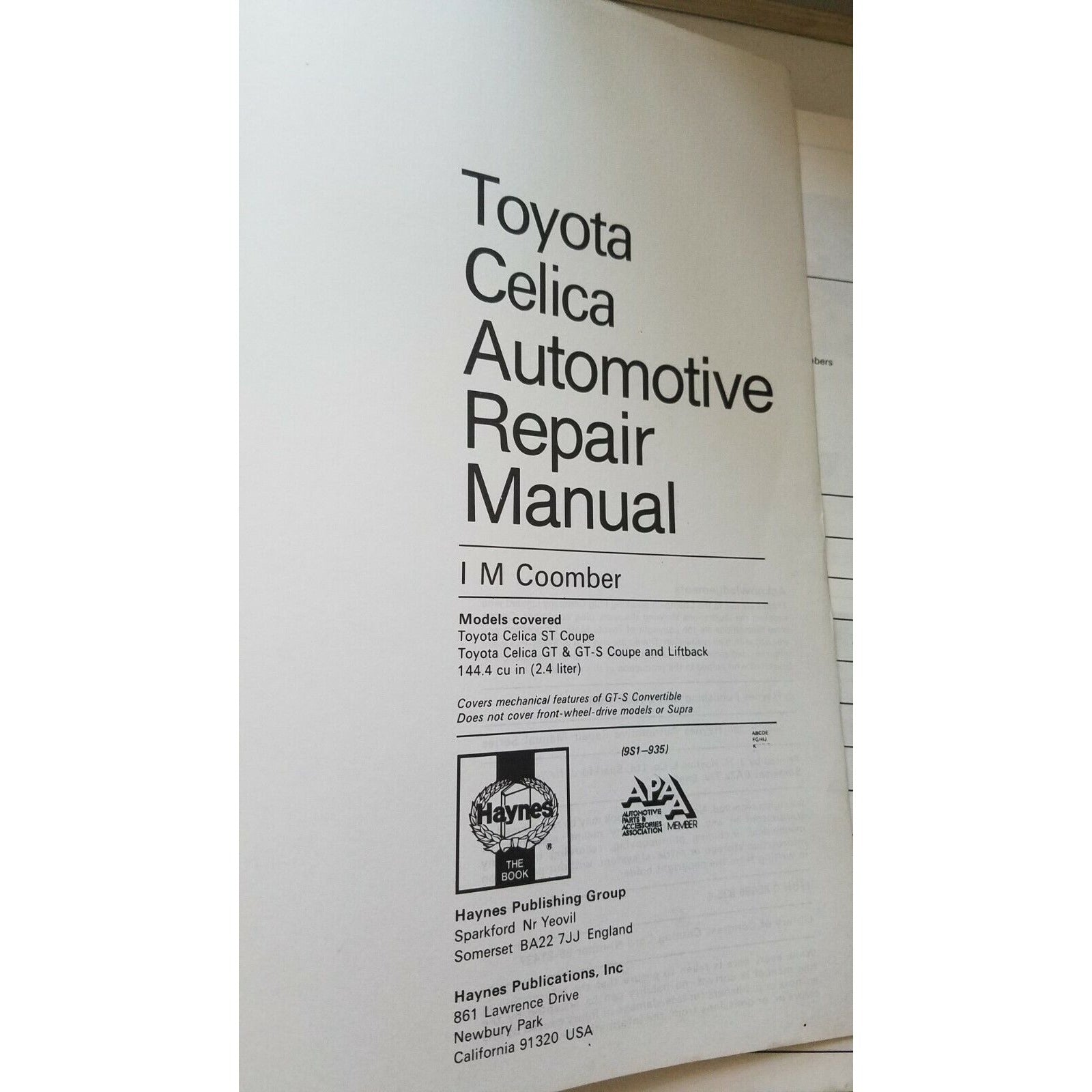 1982 - 1985 Haynes Toyota Celica All 144.4 cu 12.4 L Automotive Manual