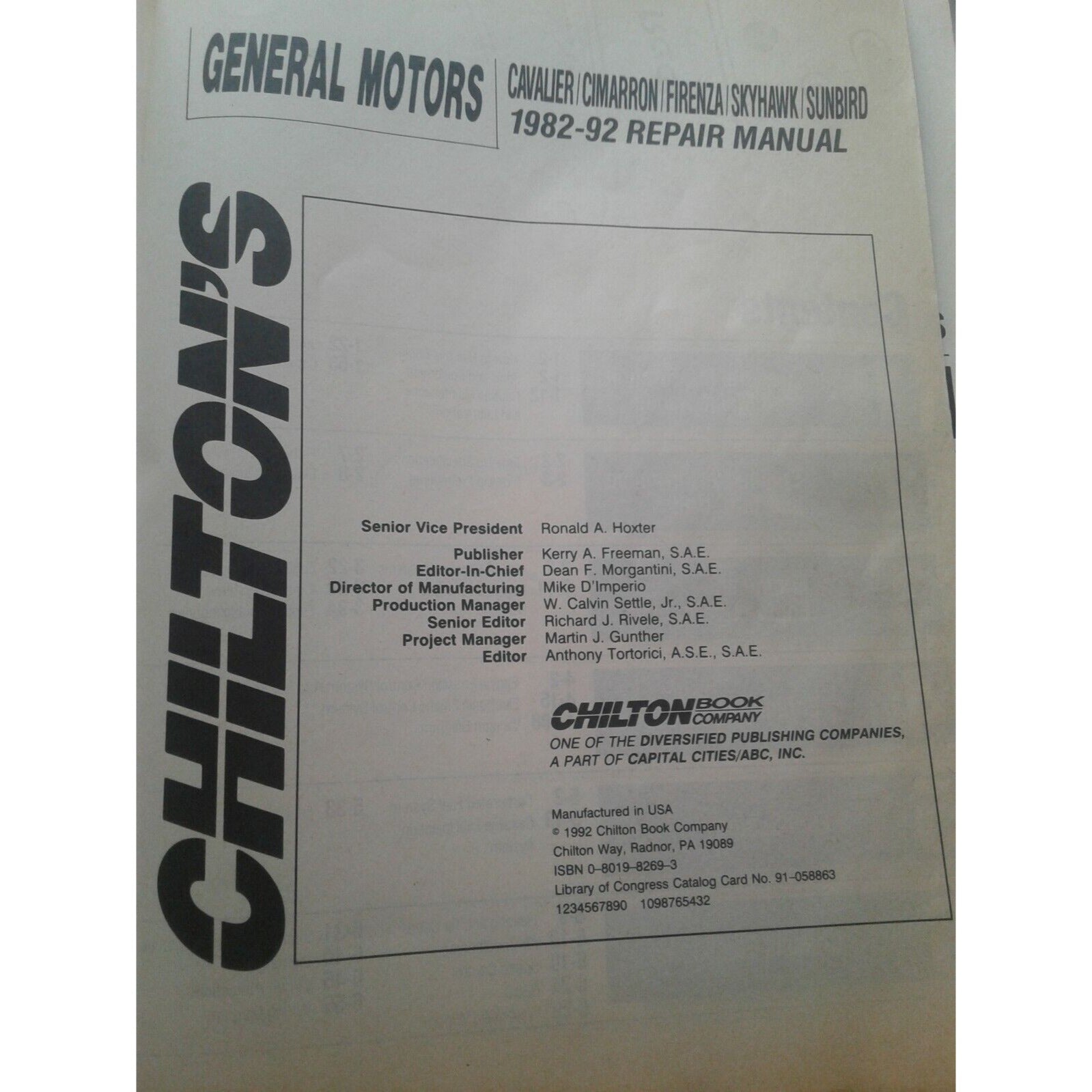 1982 - 1992 Chilton's General Motors Chevy Camaro Repair Manual