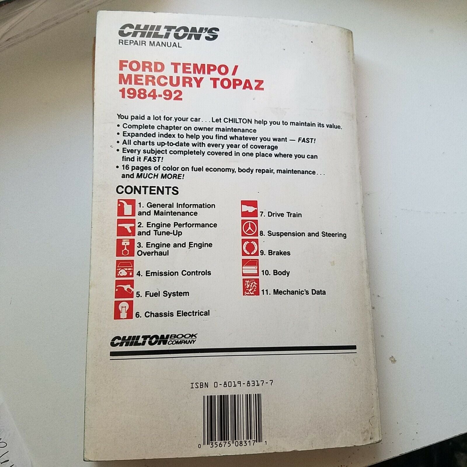 1984 - 92 Chilton's Ford Tempo Mercury Topaz Repair Manual #8317