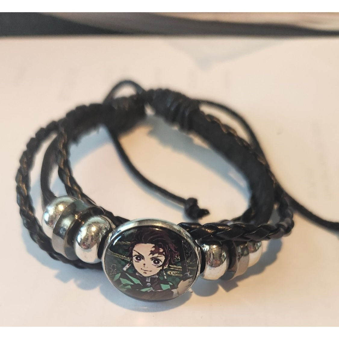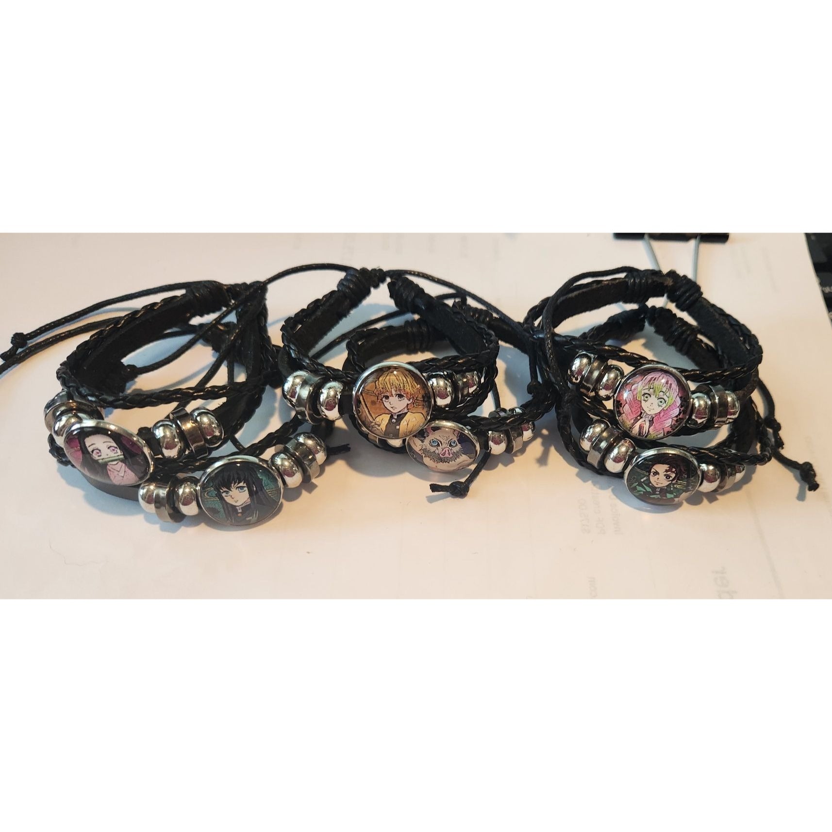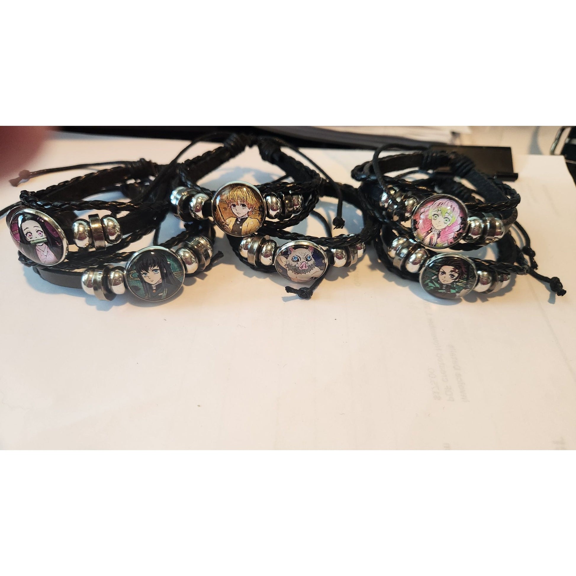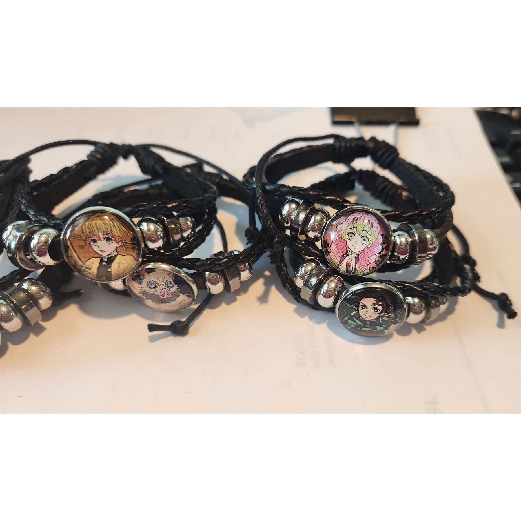 6 pcs Slayer Leather Braided Bracelet Anime Wristband Cosplay Jewelry Glass Gemstone Gifts Slider Adjustable