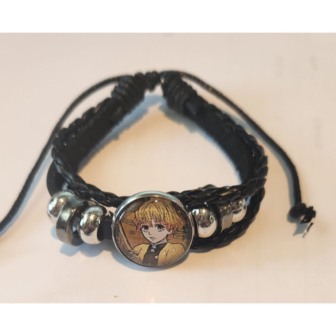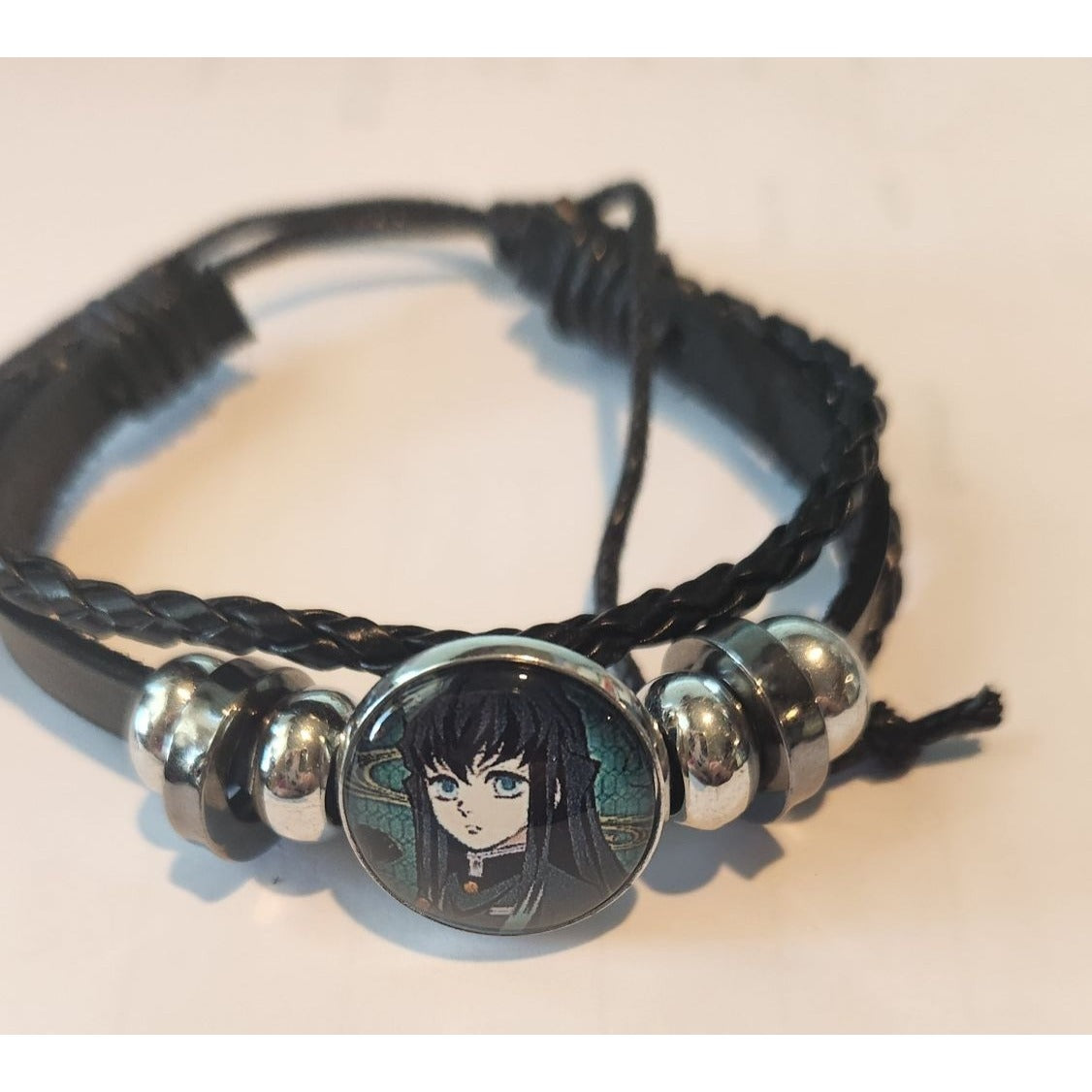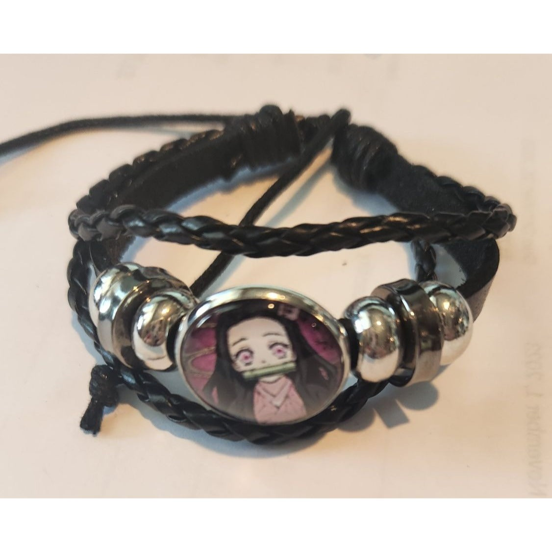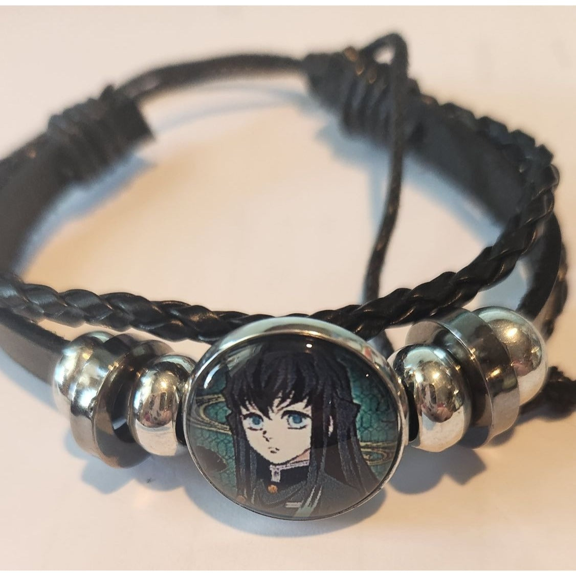6 pcs Slayer Leather Braided Bracelet Anime Wristband Cosplay Jewelry Glass Gemstone Gifts Slider Adjustable