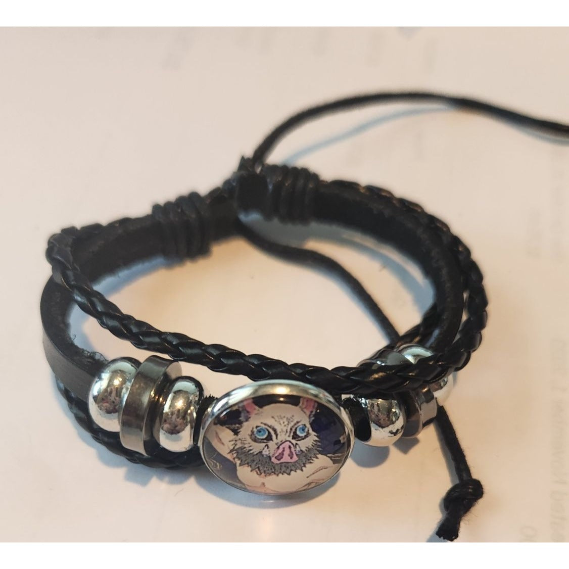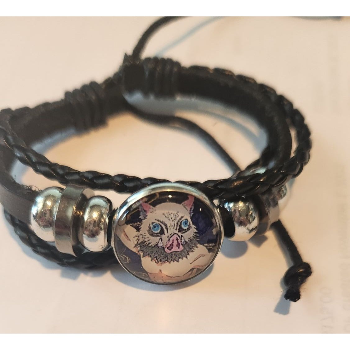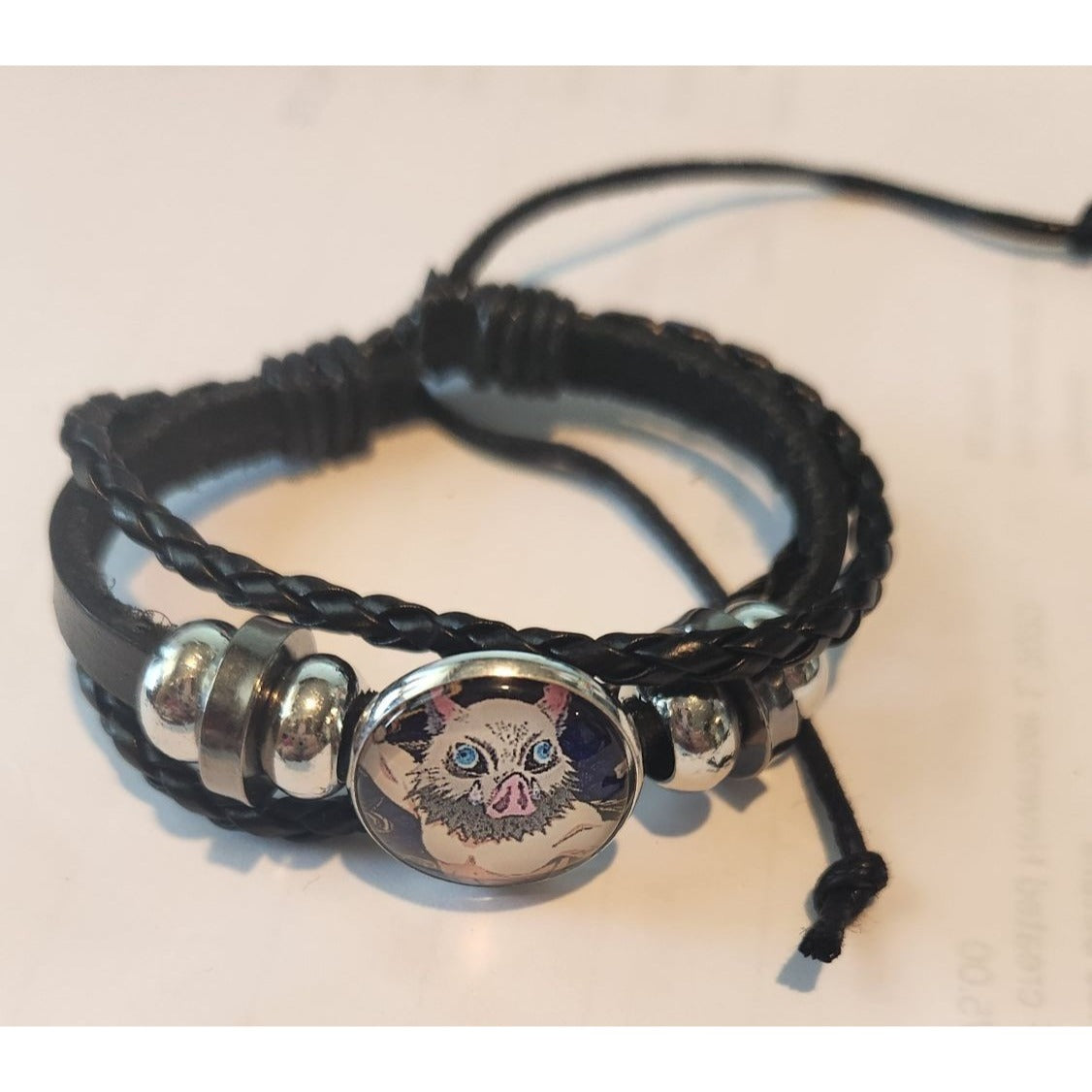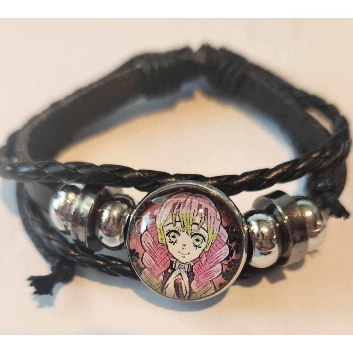 6 pcs Slayer Leather Braided Bracelet Anime Wristband Cosplay Jewelry Glass Gemstone Gifts Slider Adjustable