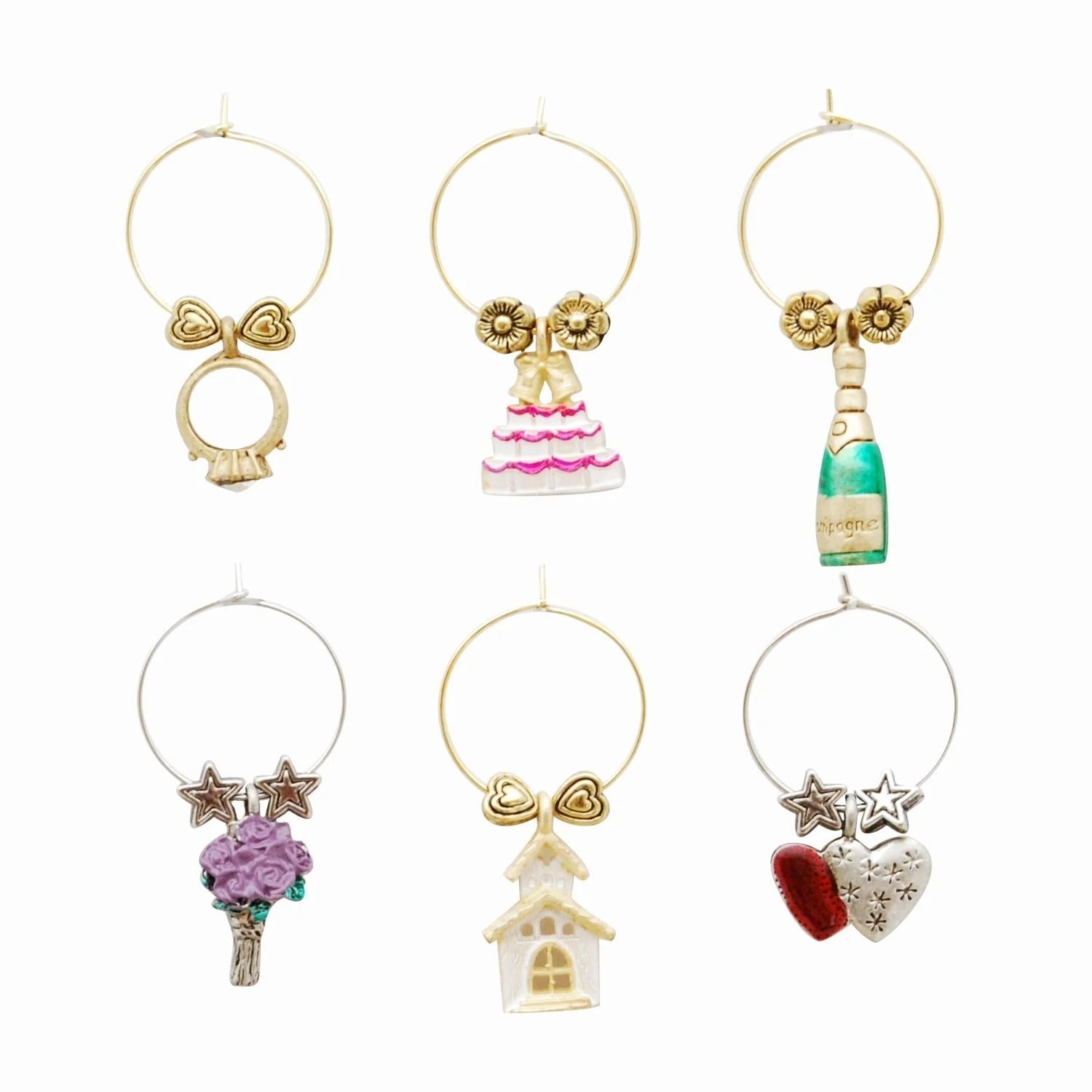 6 piece That Wine is Mine Wine Things 6-Piece I Do Wine Charms, Painted Wedding