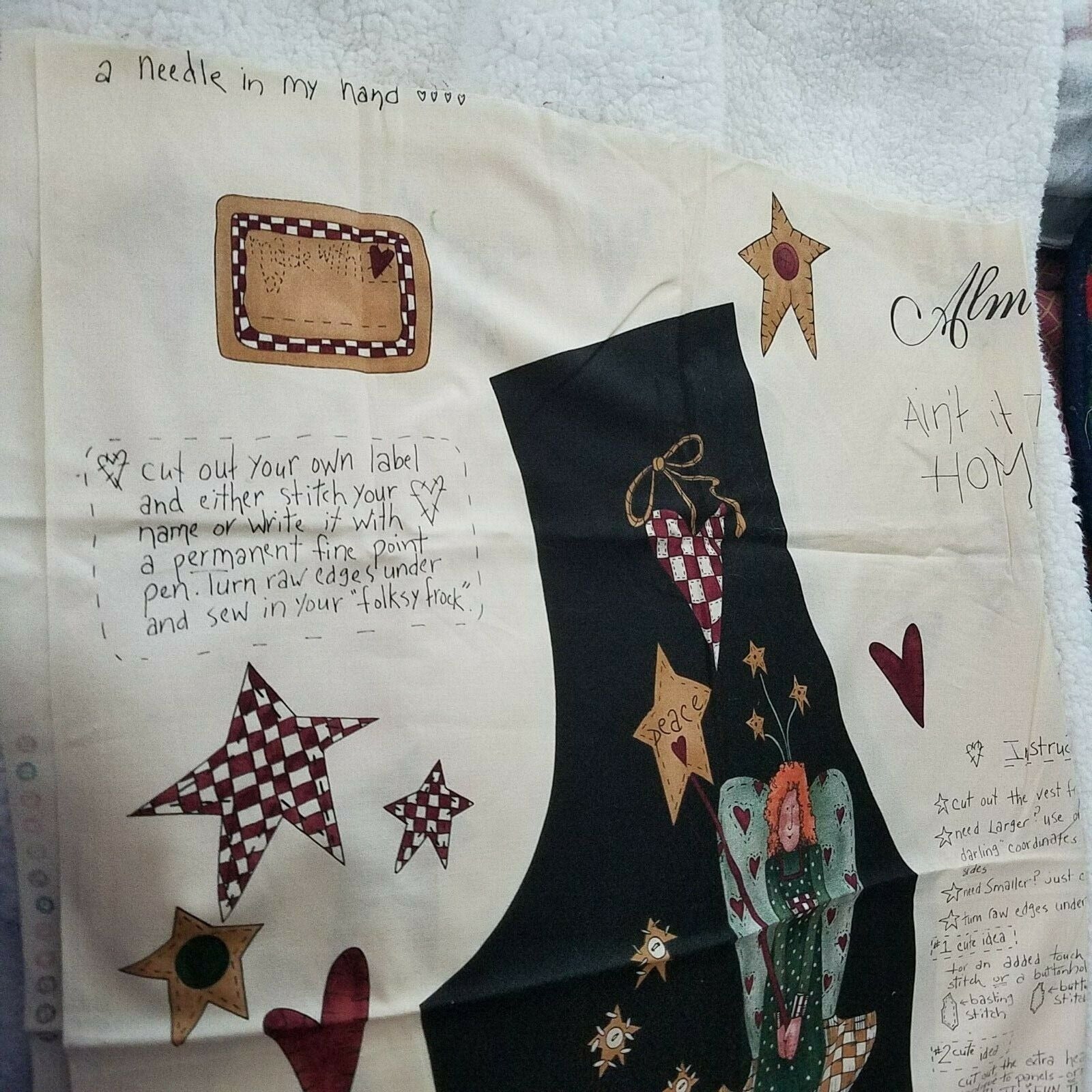 Alma Lynne Designs Printed Vest Pattern Instructions Alfolksy Adult 30" x 45"
