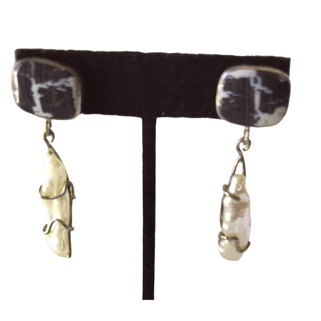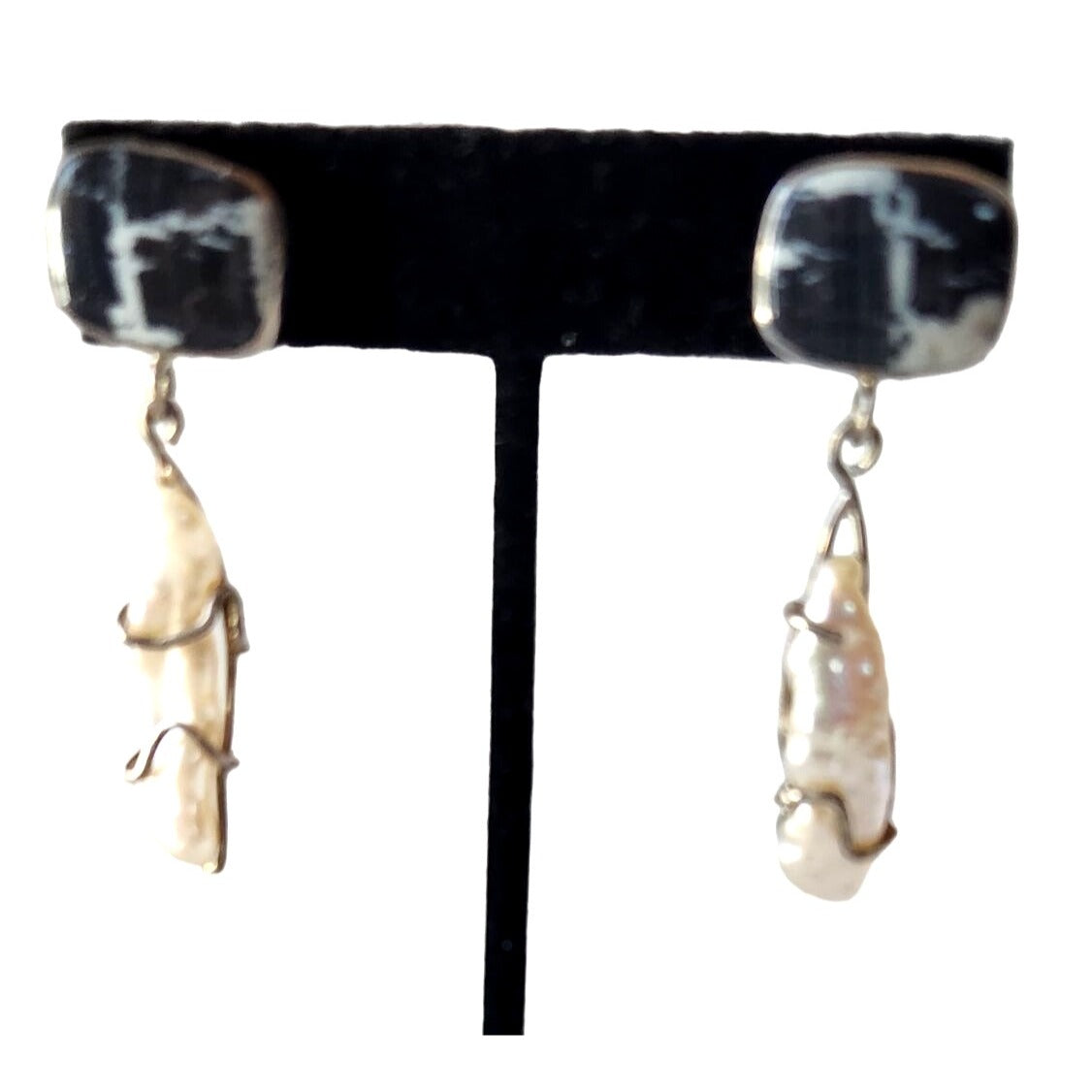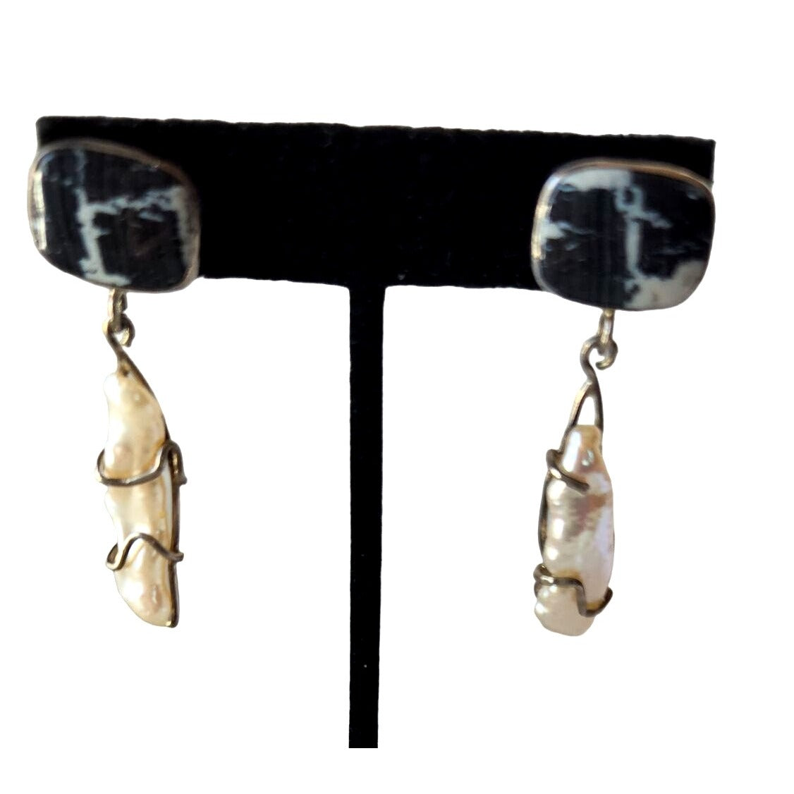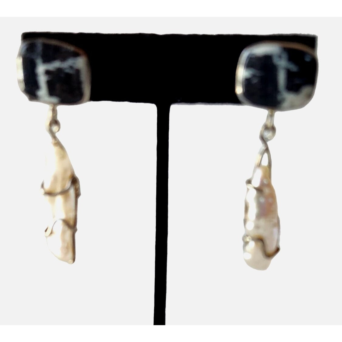 Black Coral Gold Wire wrap Brogue Pearls Earrings Post 11 gr 30mm x 10mm 925 Silver