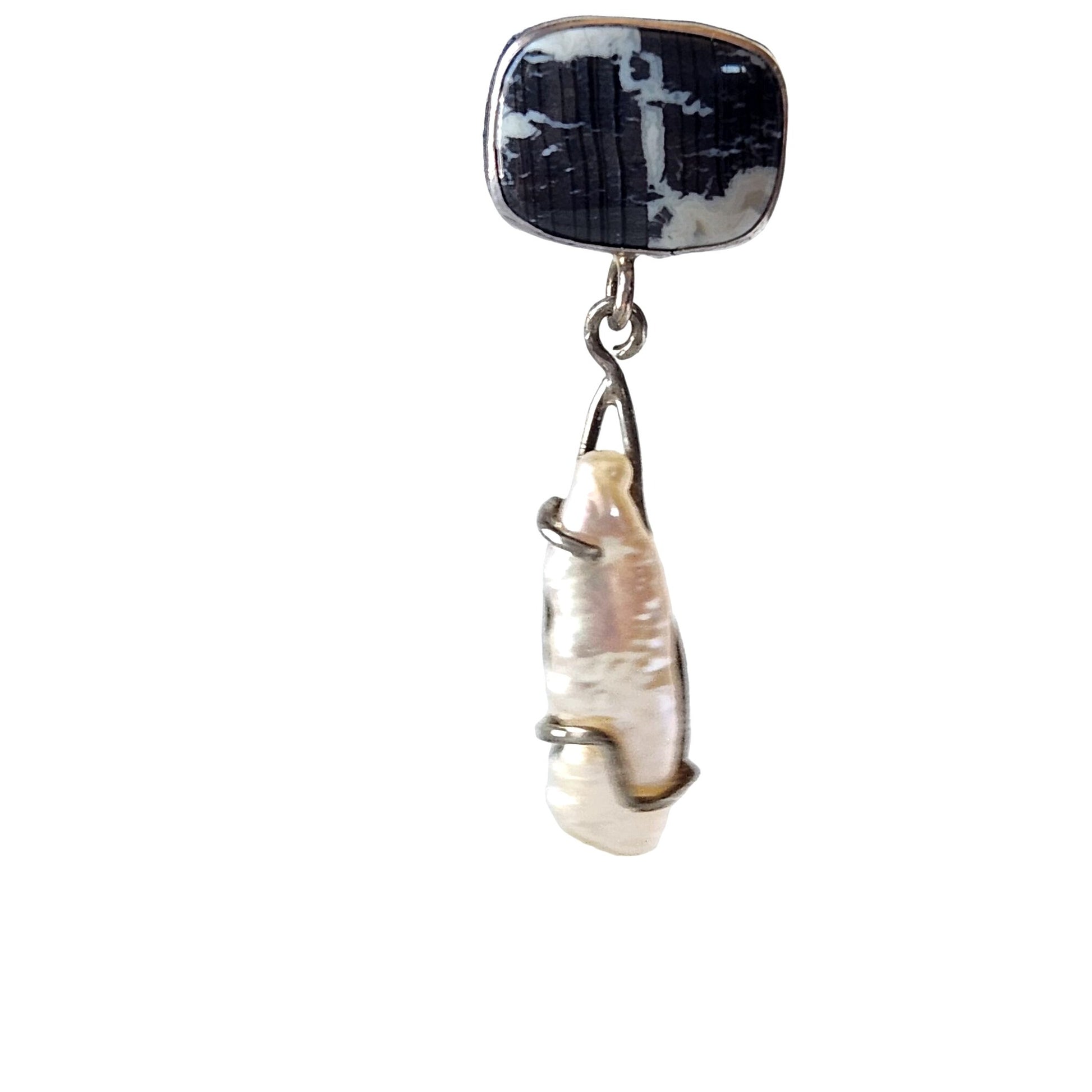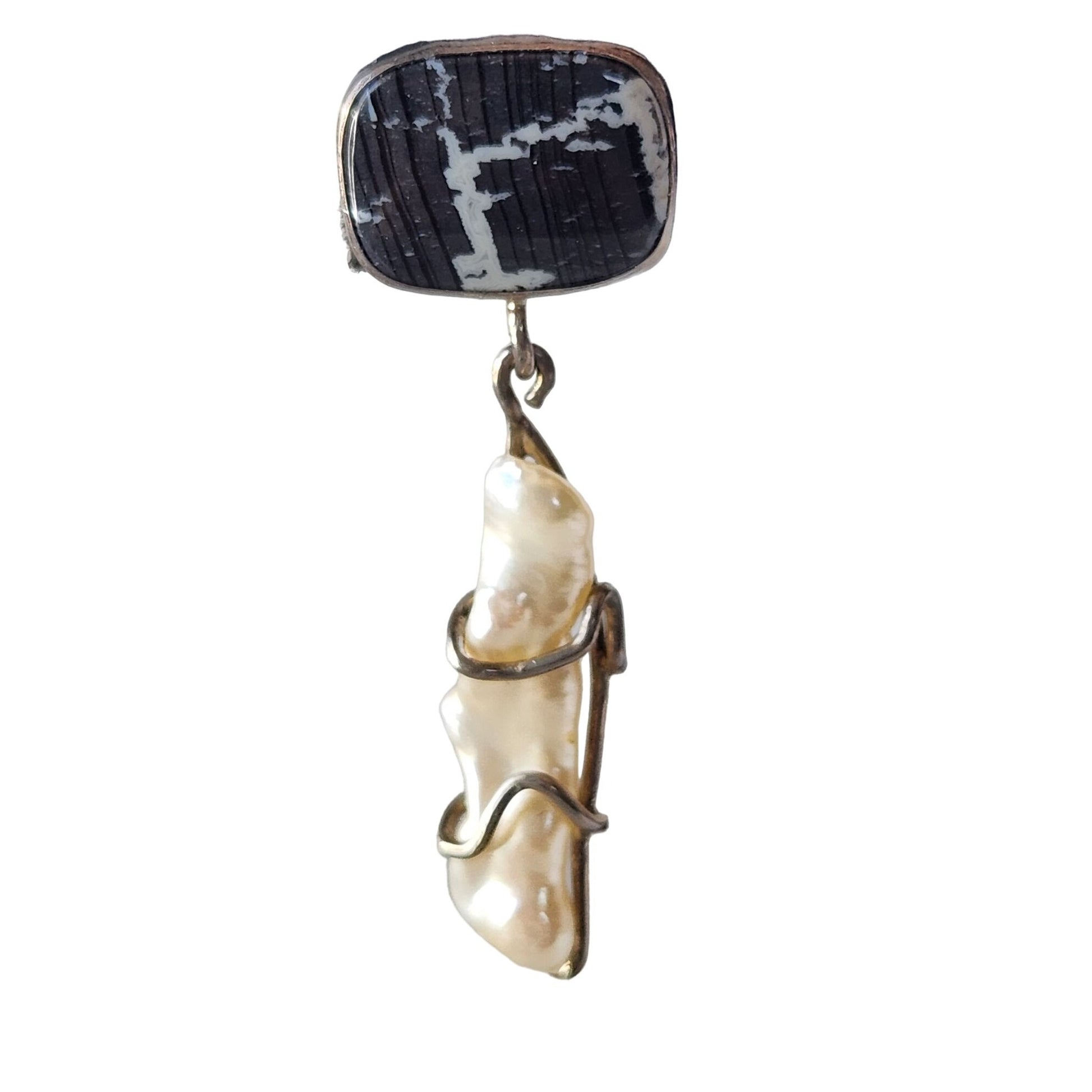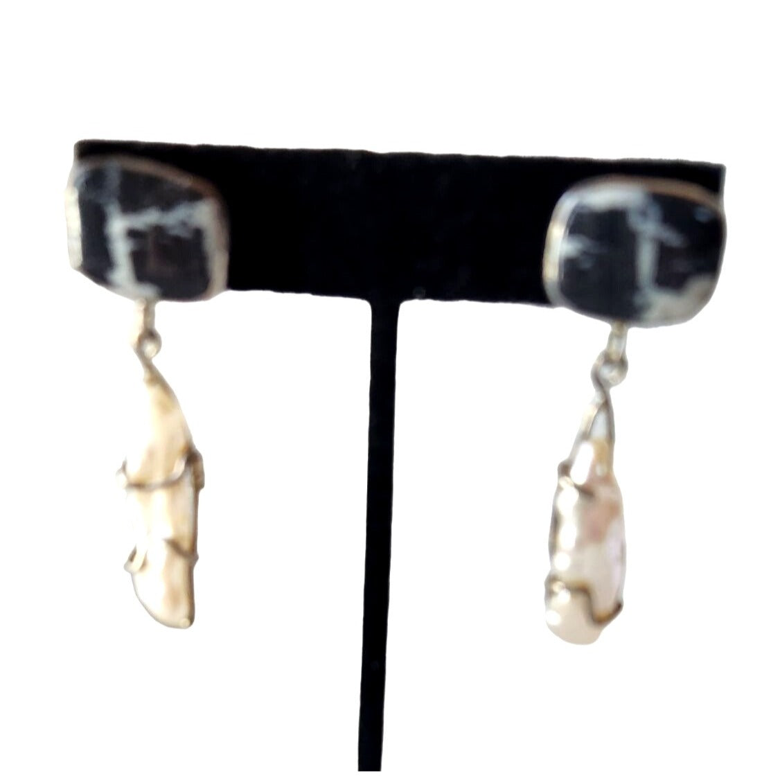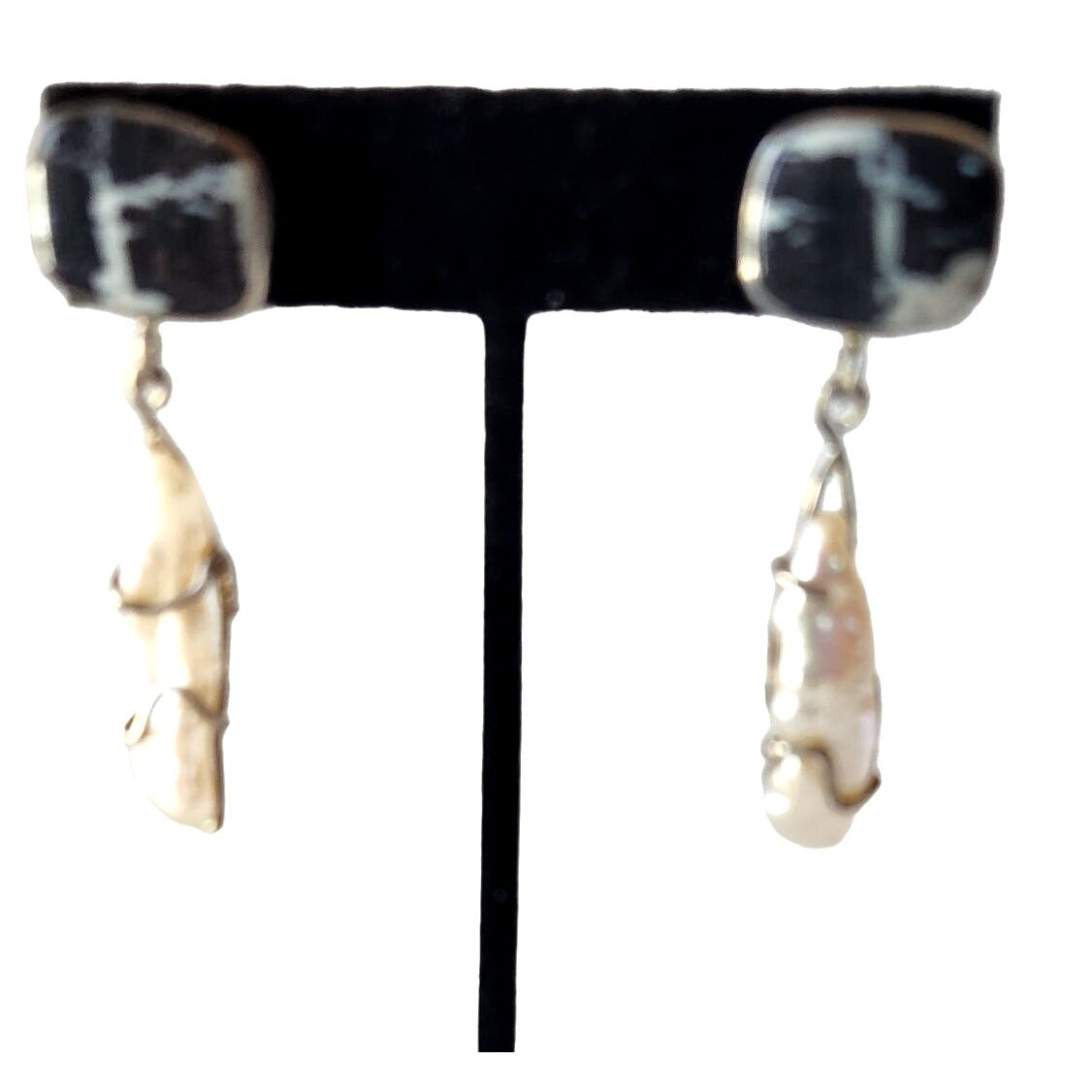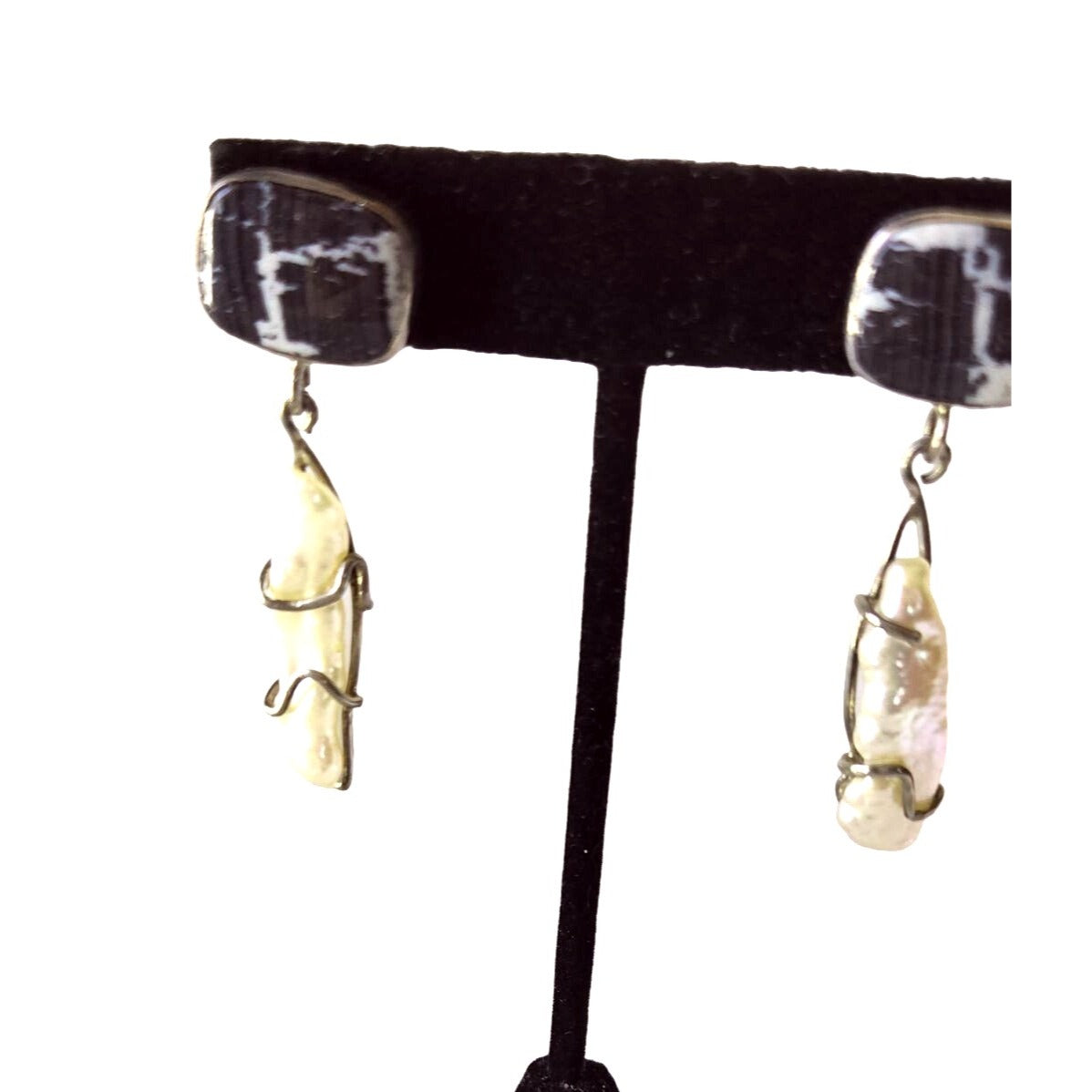 Black Coral Gold Wire wrap Brogue Pearls Earrings Post 11 gr 30mm x 10mm 925 Silver