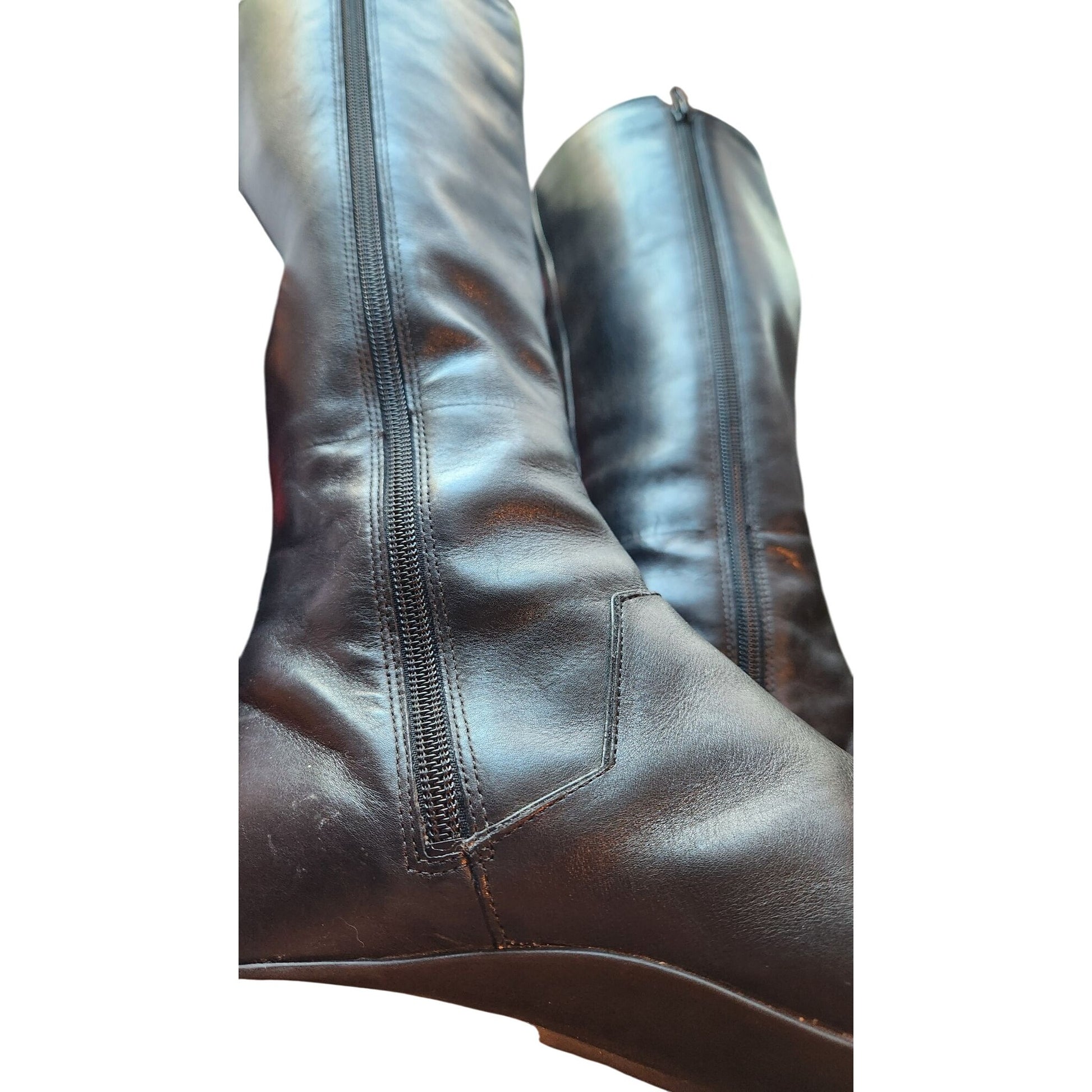 Boots Black Clarks 71136 7M 07/06 Vintage Leather upper Knee high 1 Heel Damaged