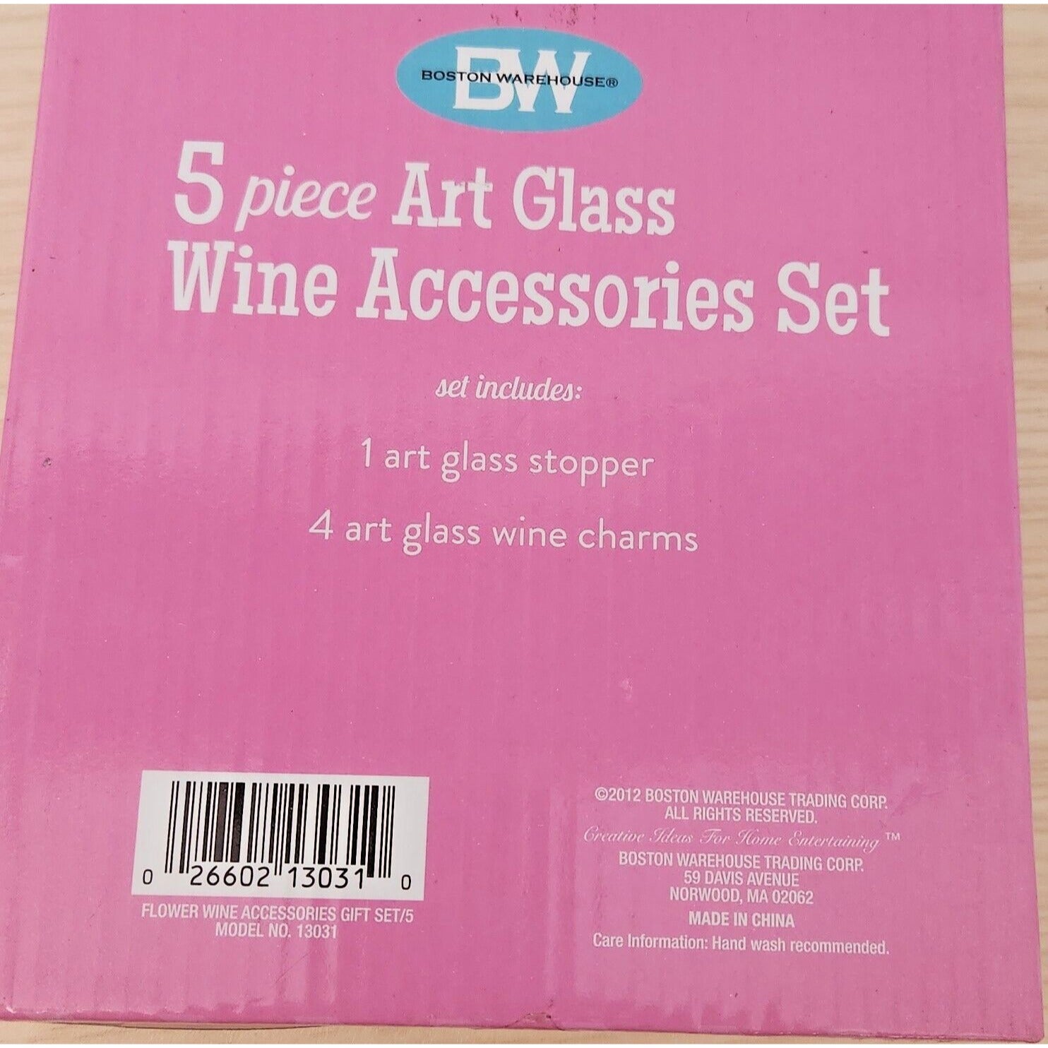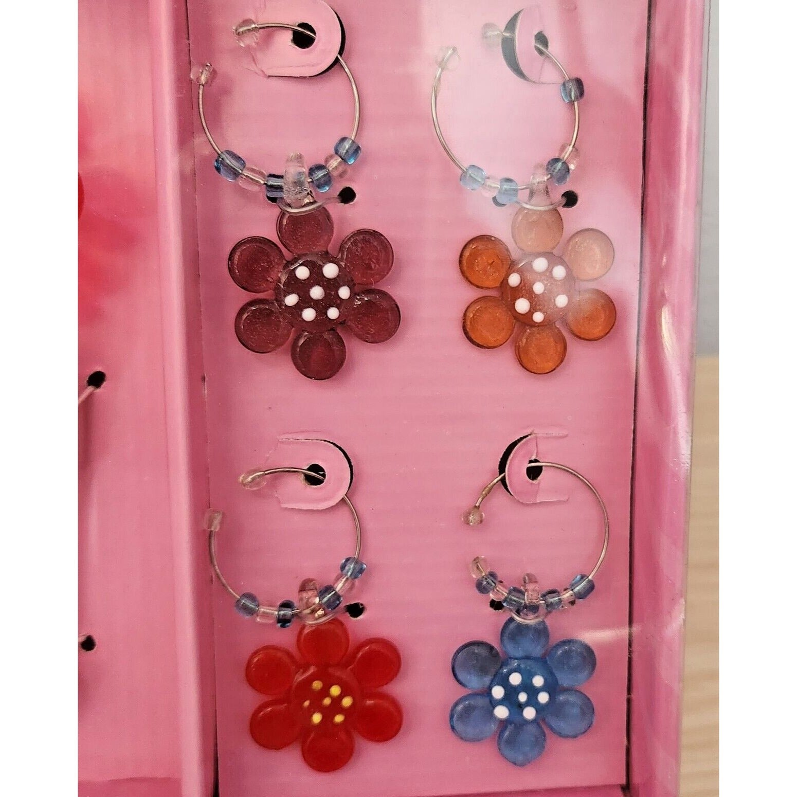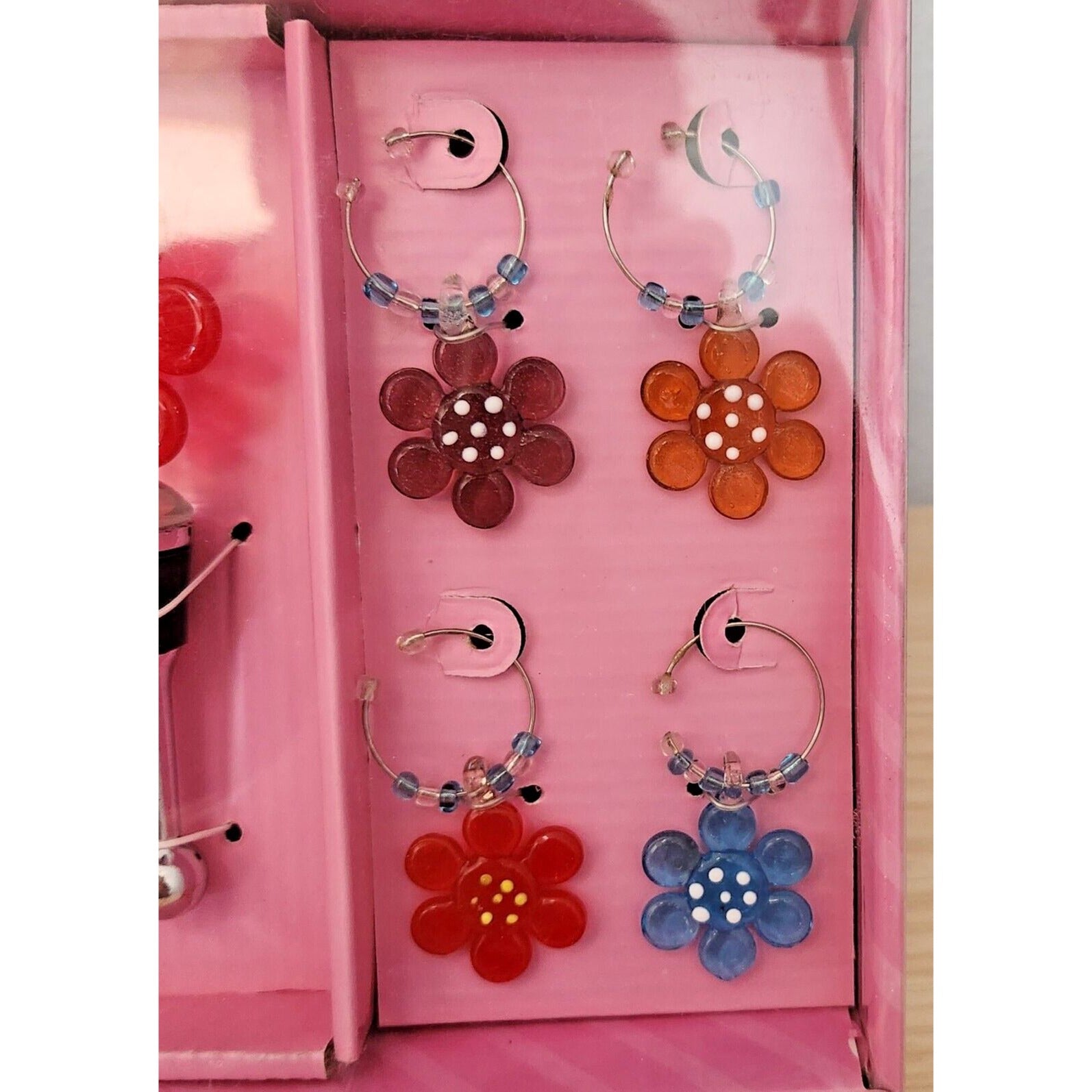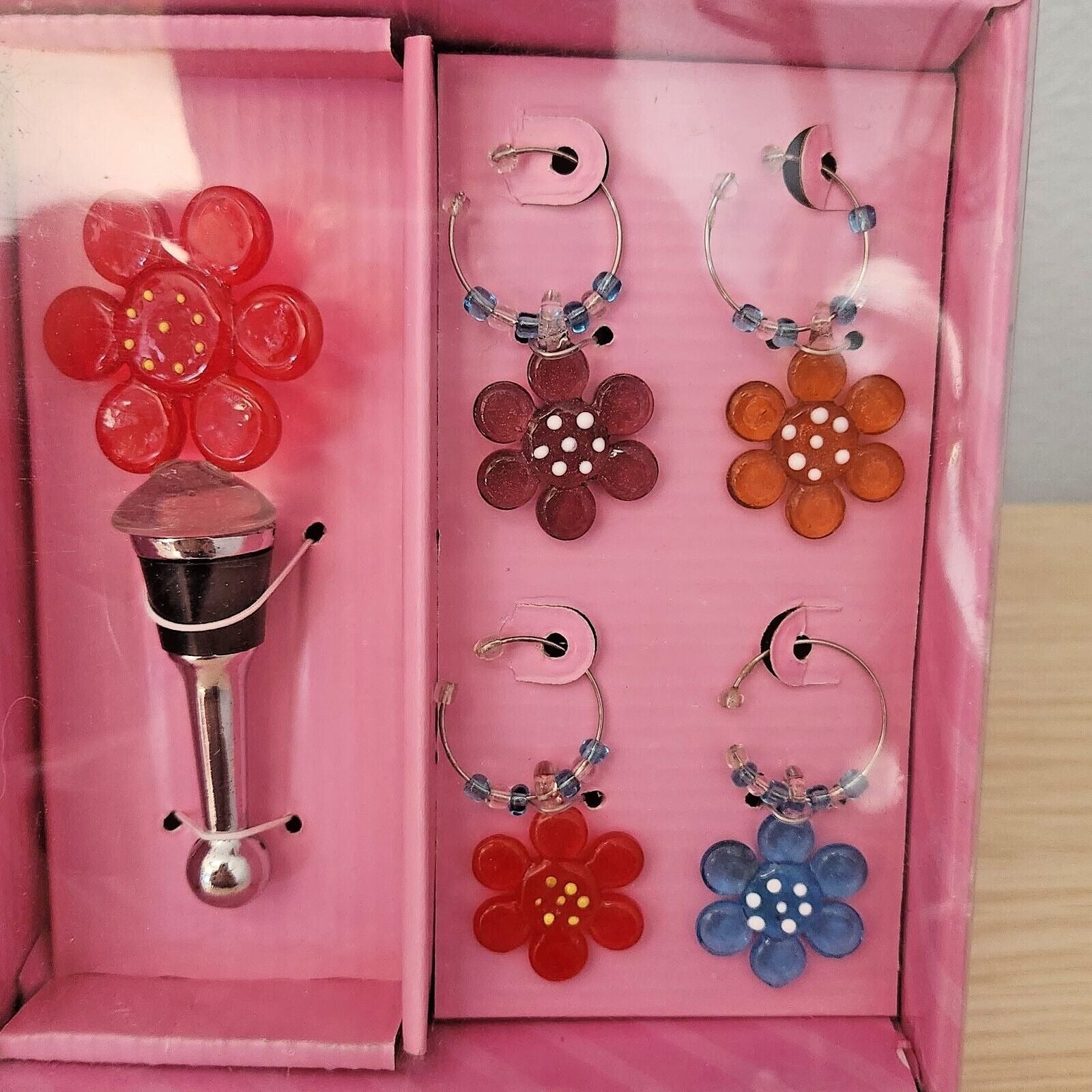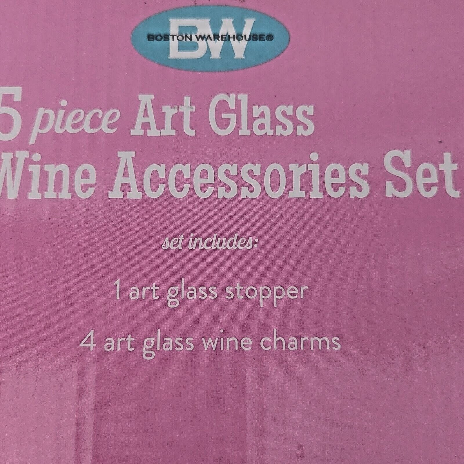 Boston Warehouse 5 Piece Art Glass 1 Wine Stopper and 4 Wine Charms Flower Glass