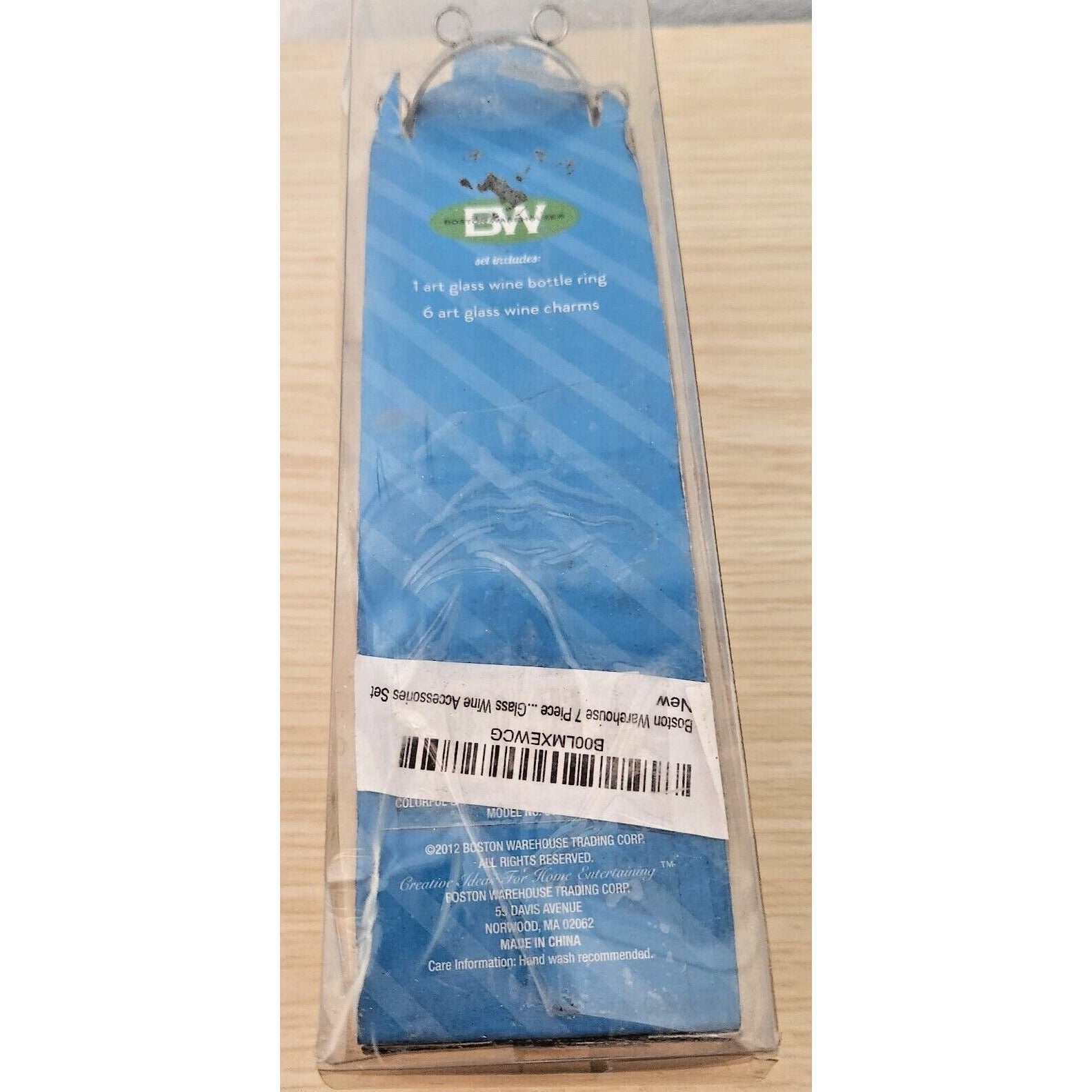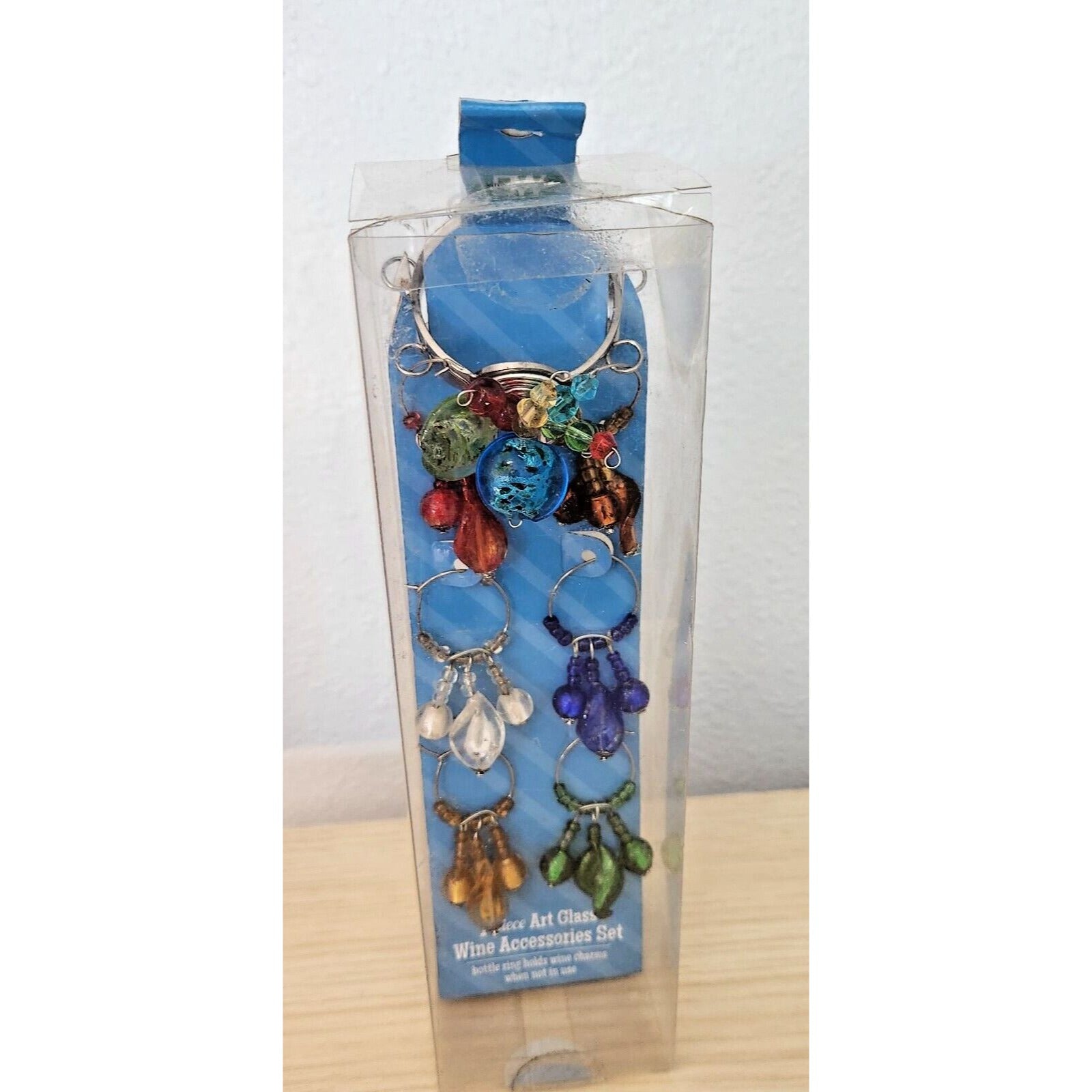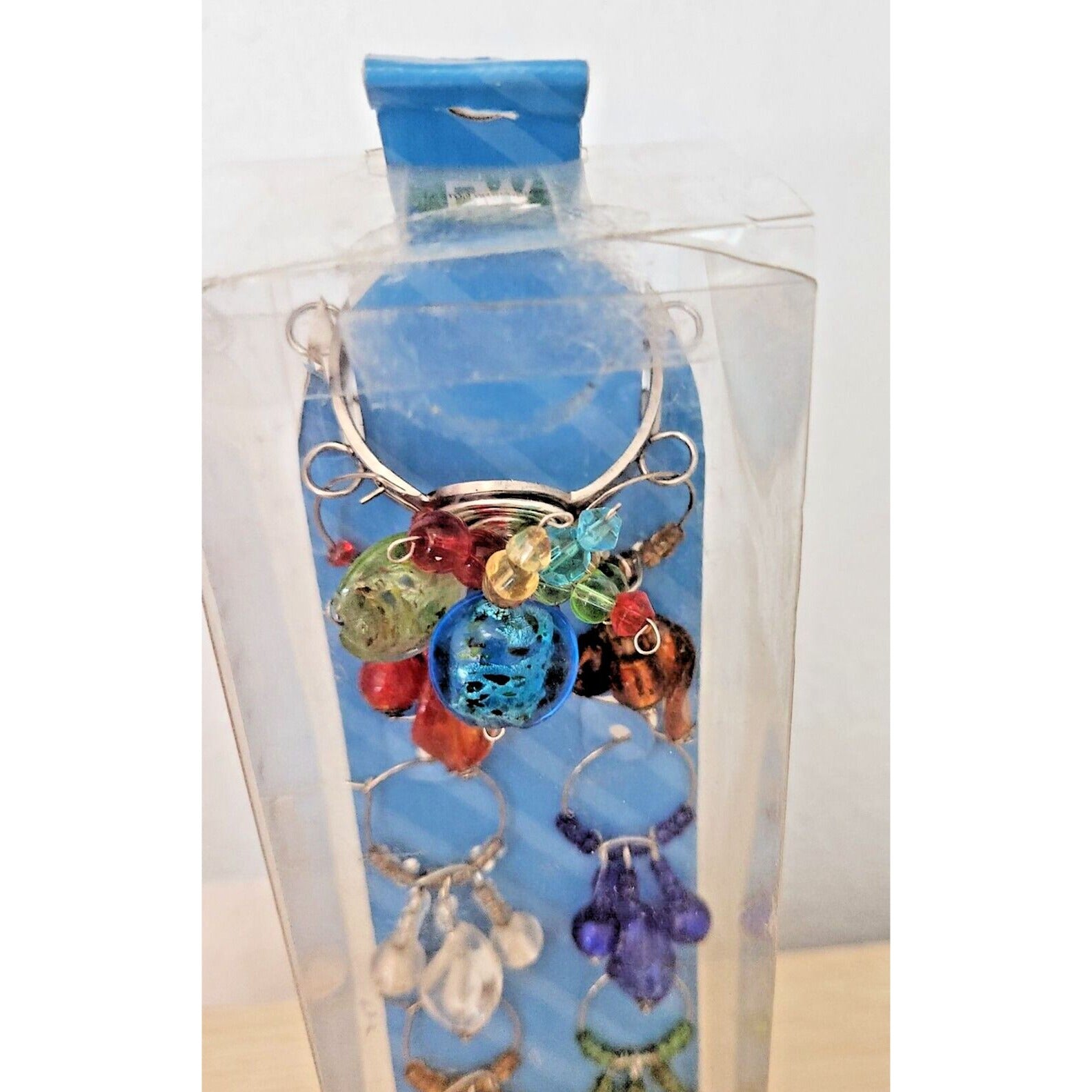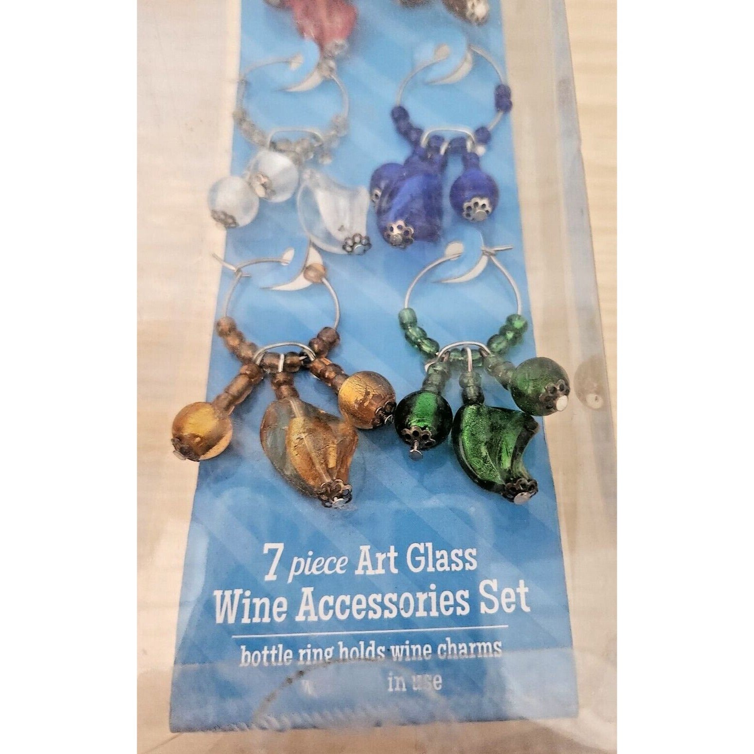 Boston Warehouse 7 Piece Art Glass 1 Wine Ring and 6 Beaded Wine Charms Drops
