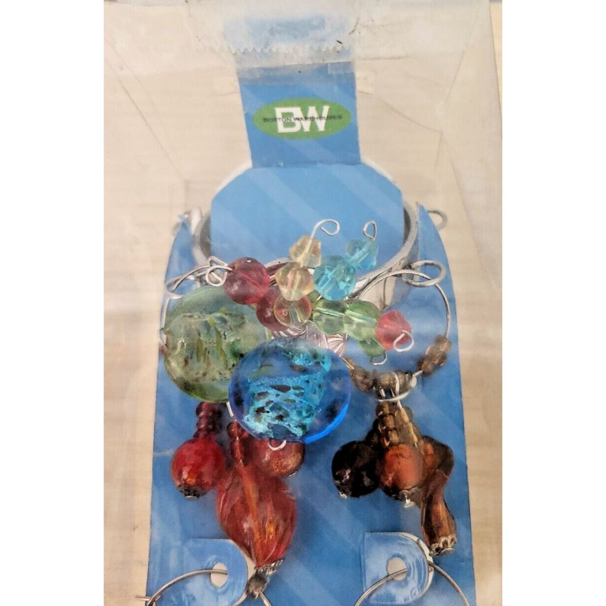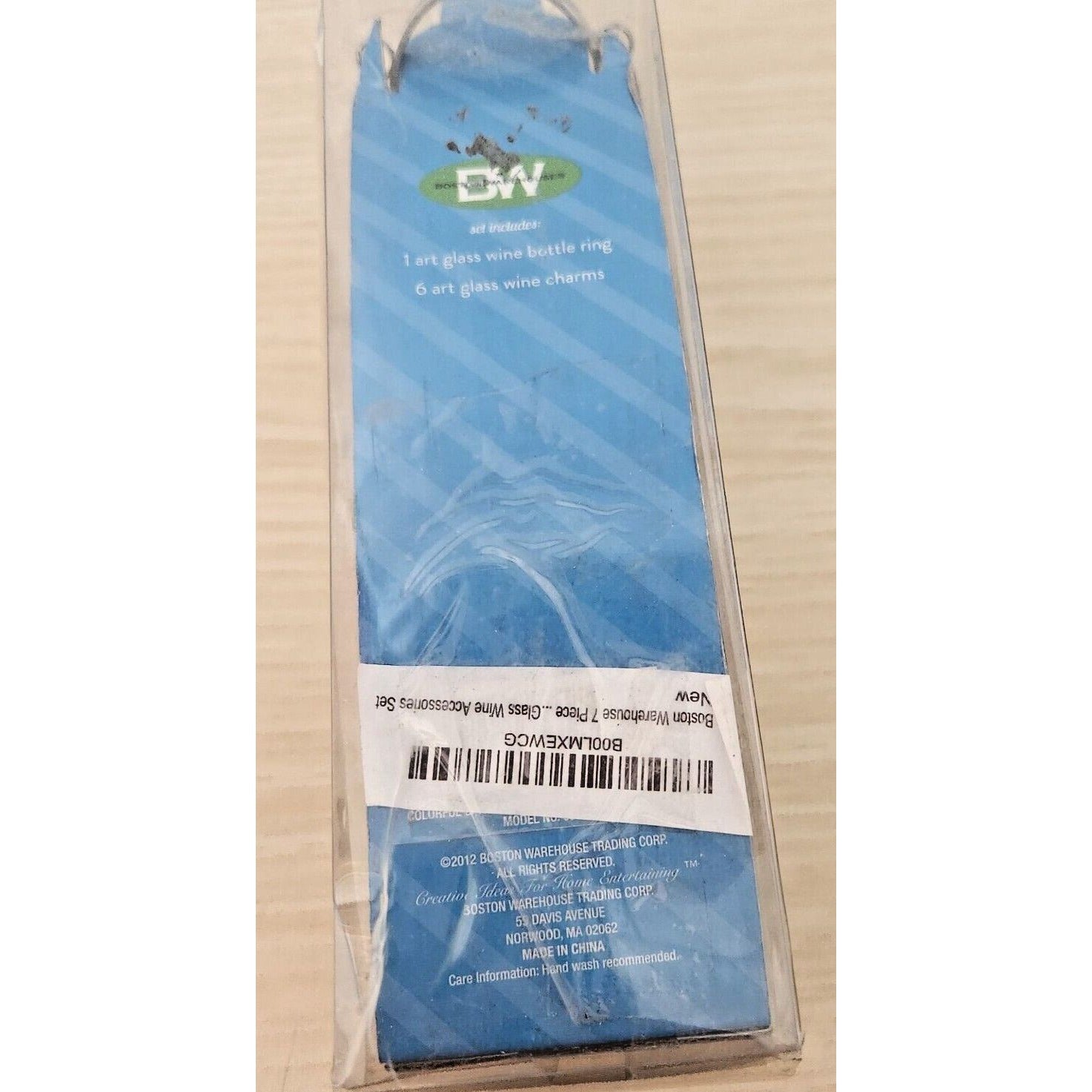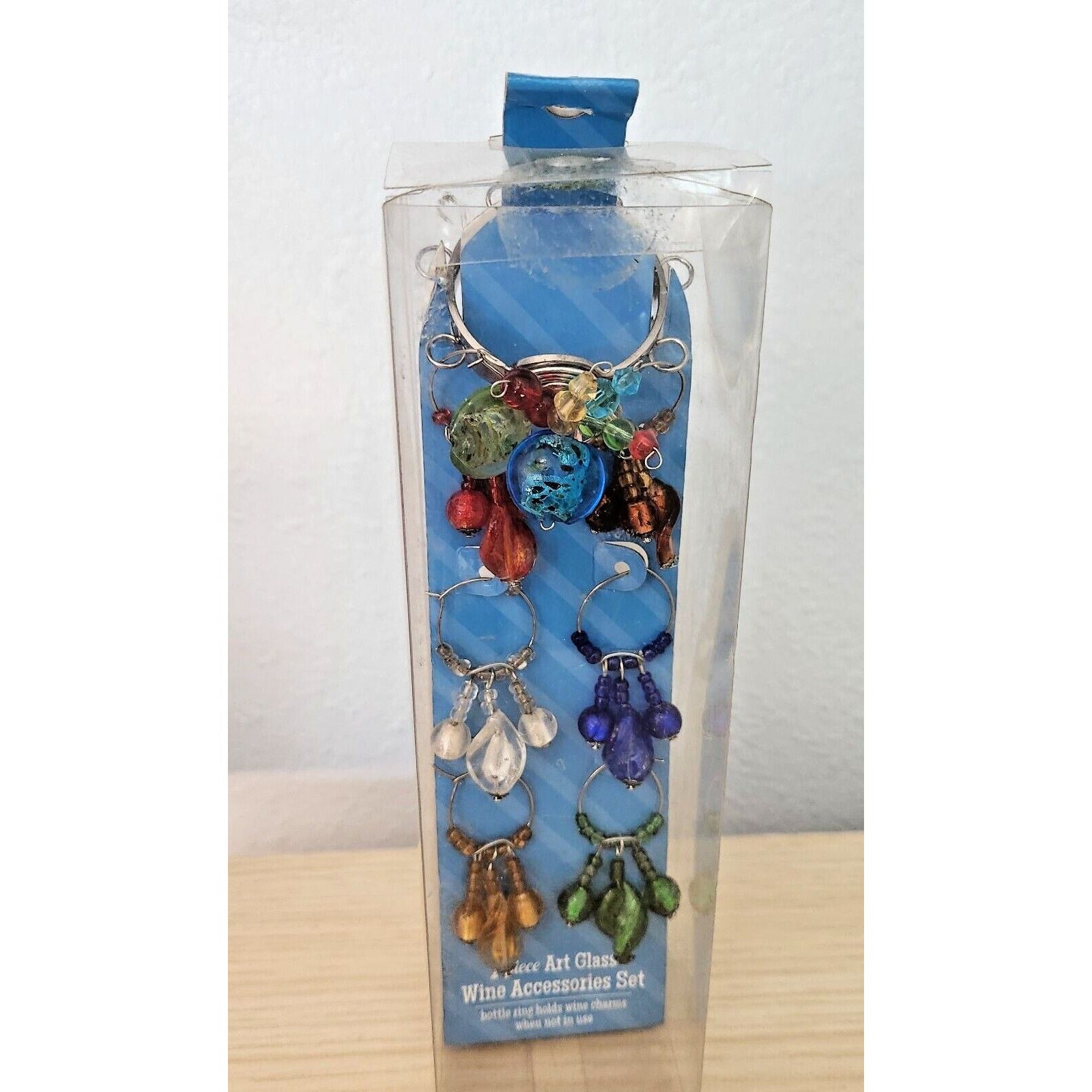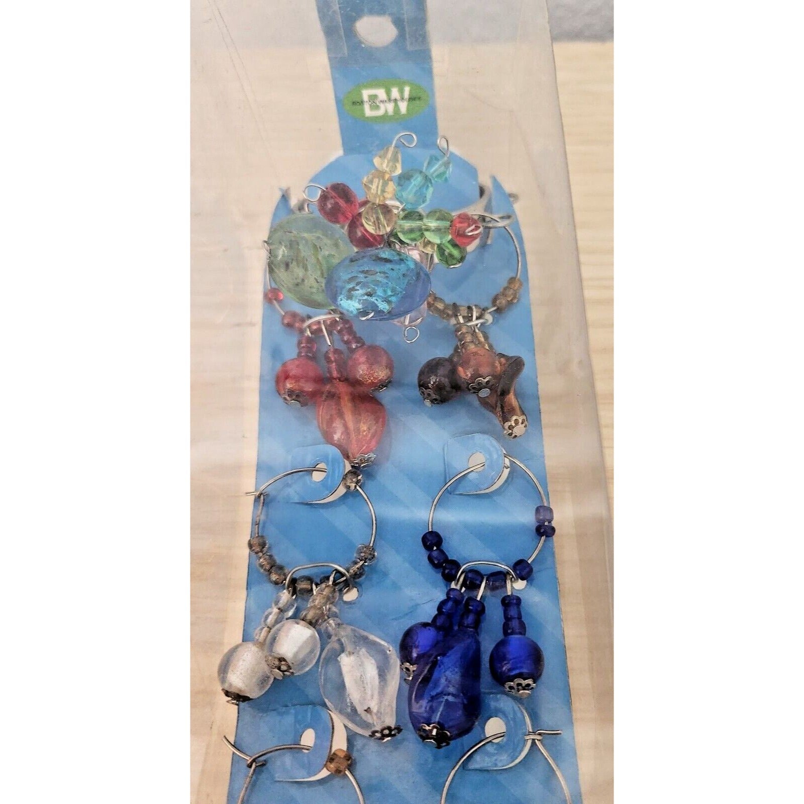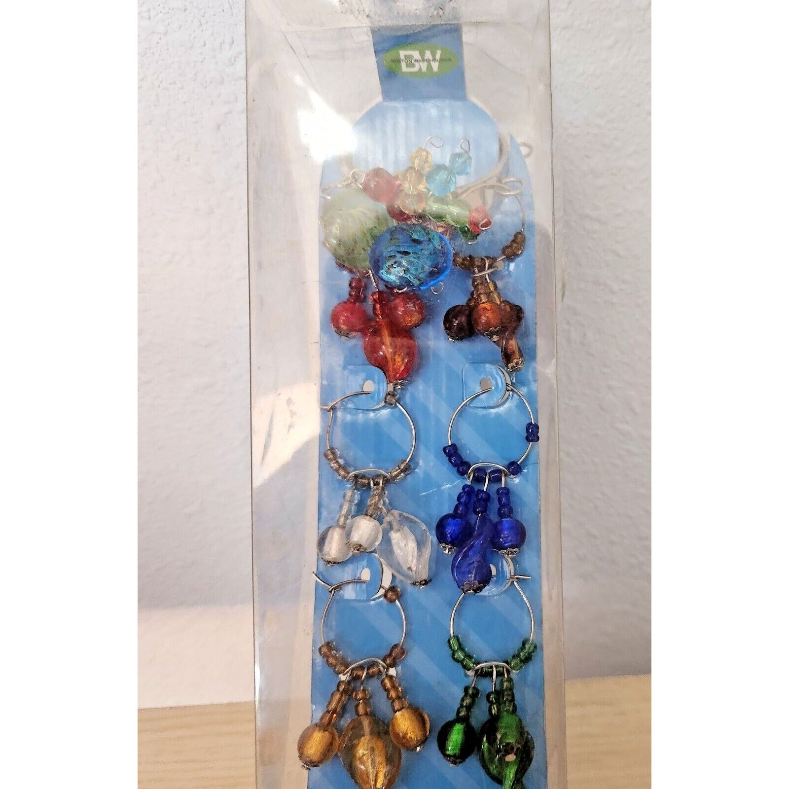 Boston Warehouse 7 Piece Art Glass 1 Wine Ring and 6 Beaded Wine Charms Drops