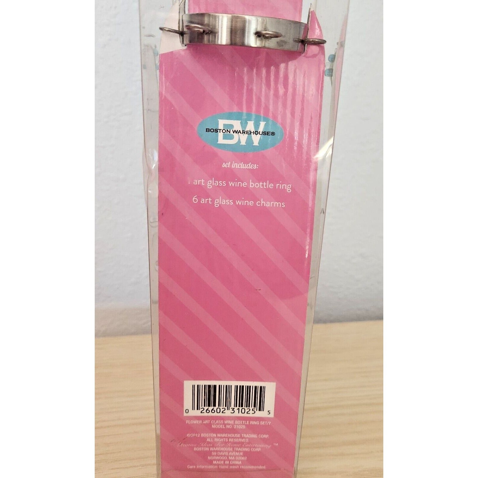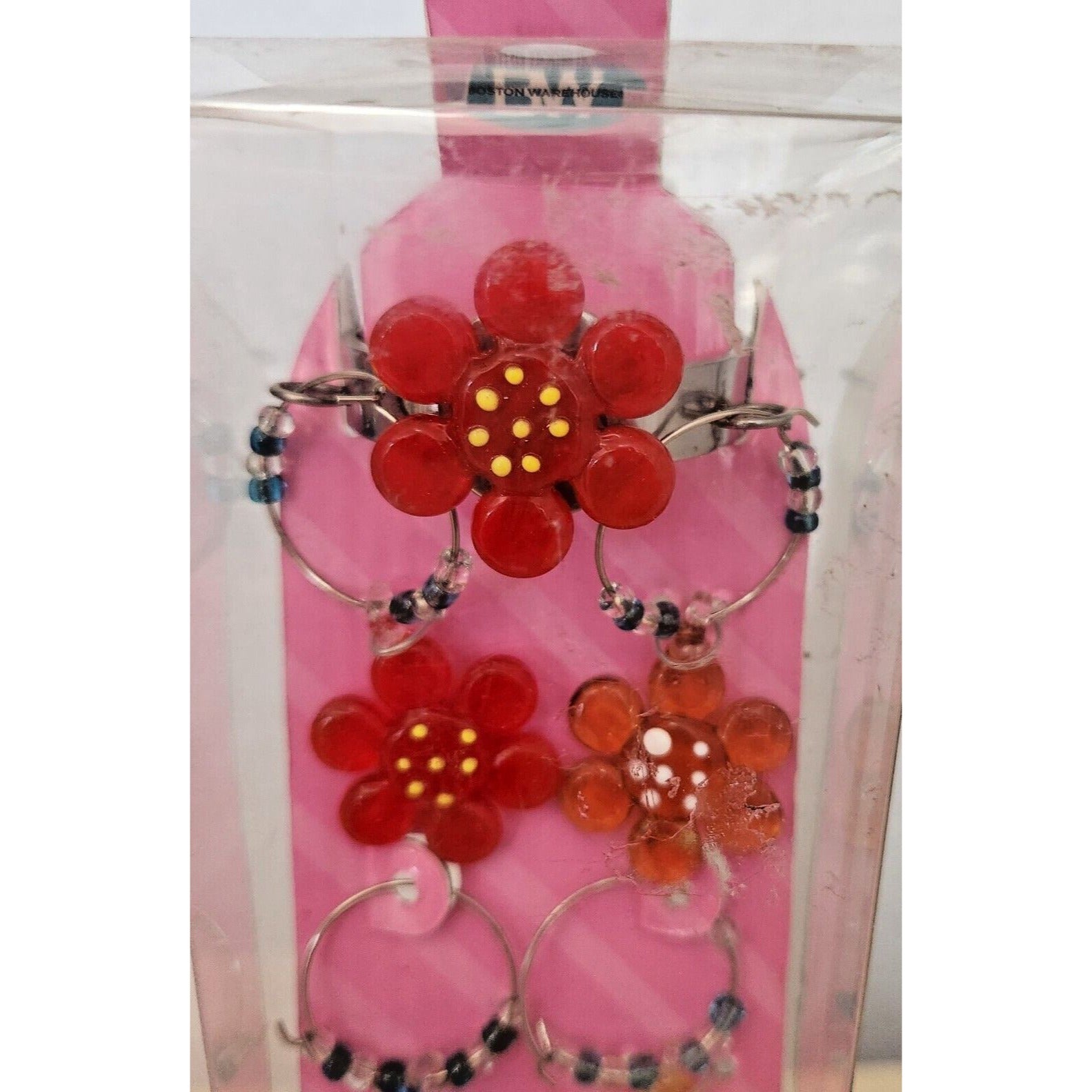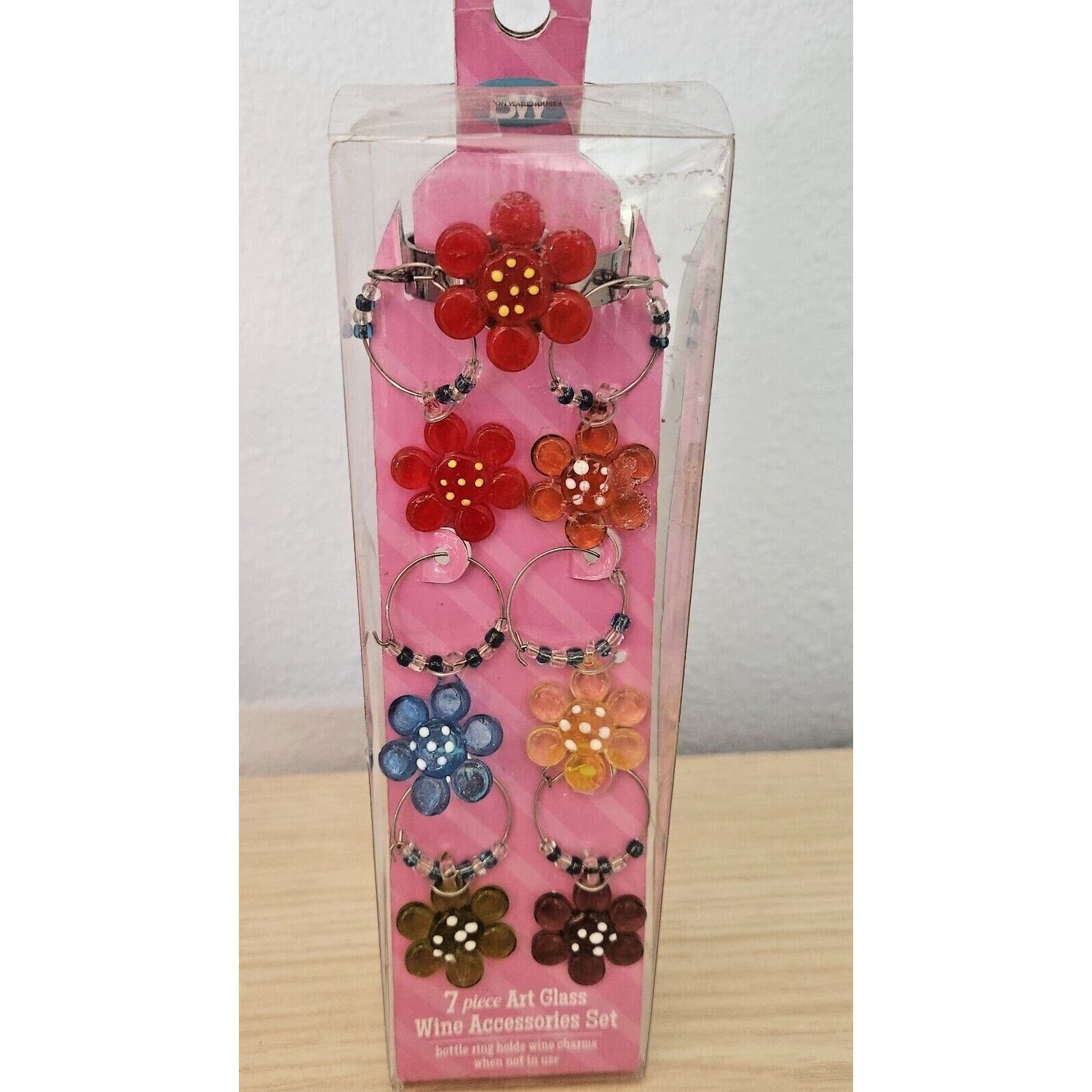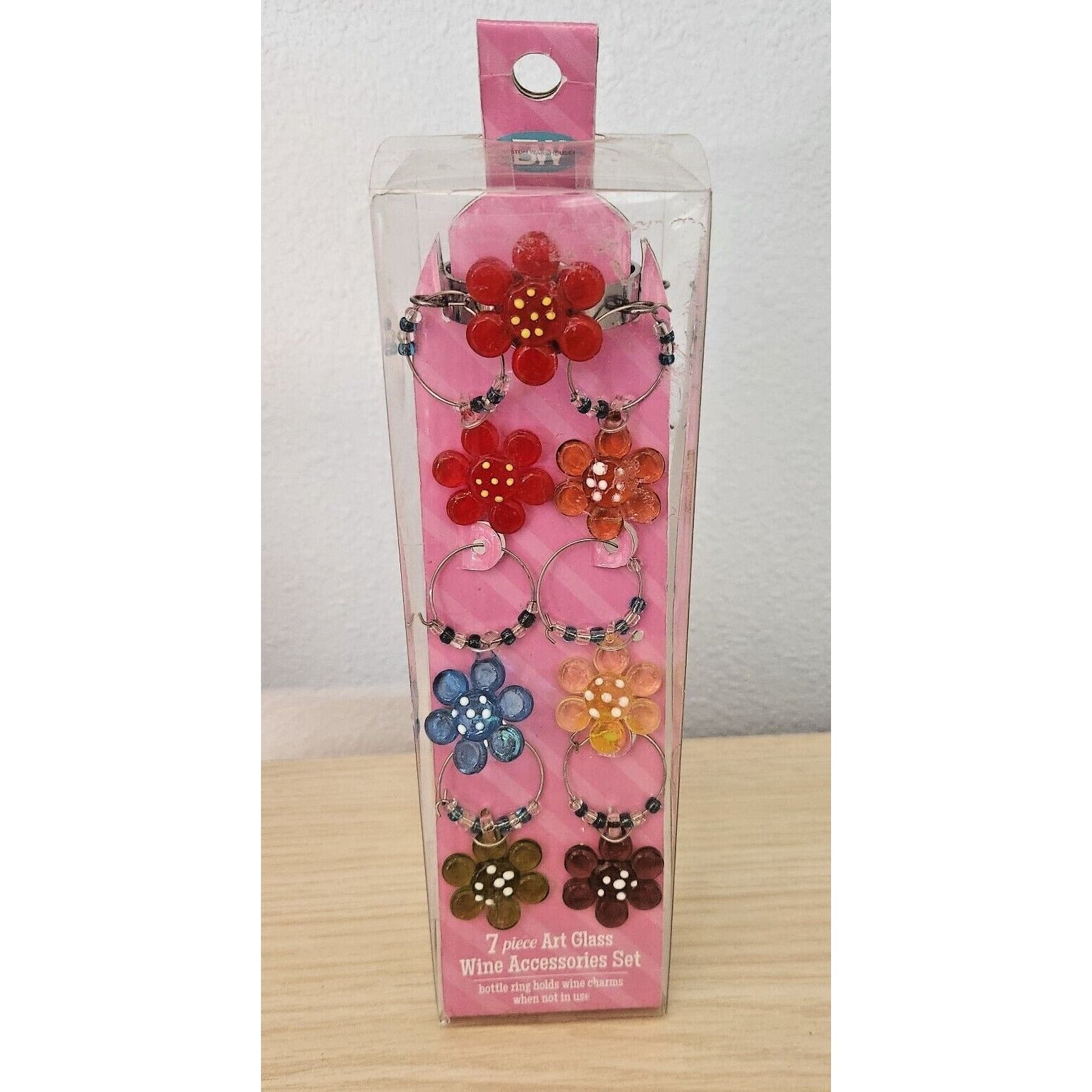 Boston Warehouse 7 Piece Art Glass 1 Wine Ring and 6 Beaded Wine Charms Flower