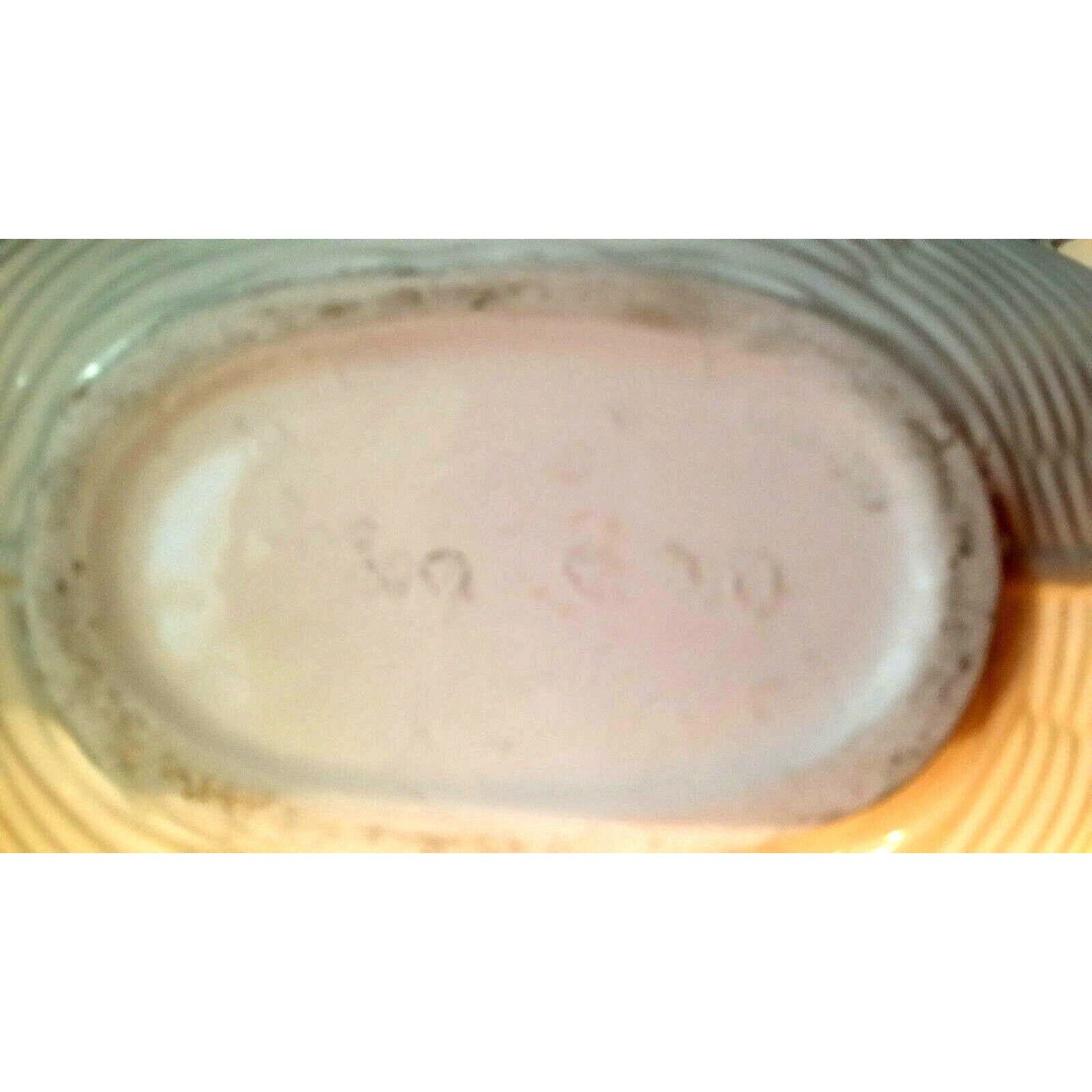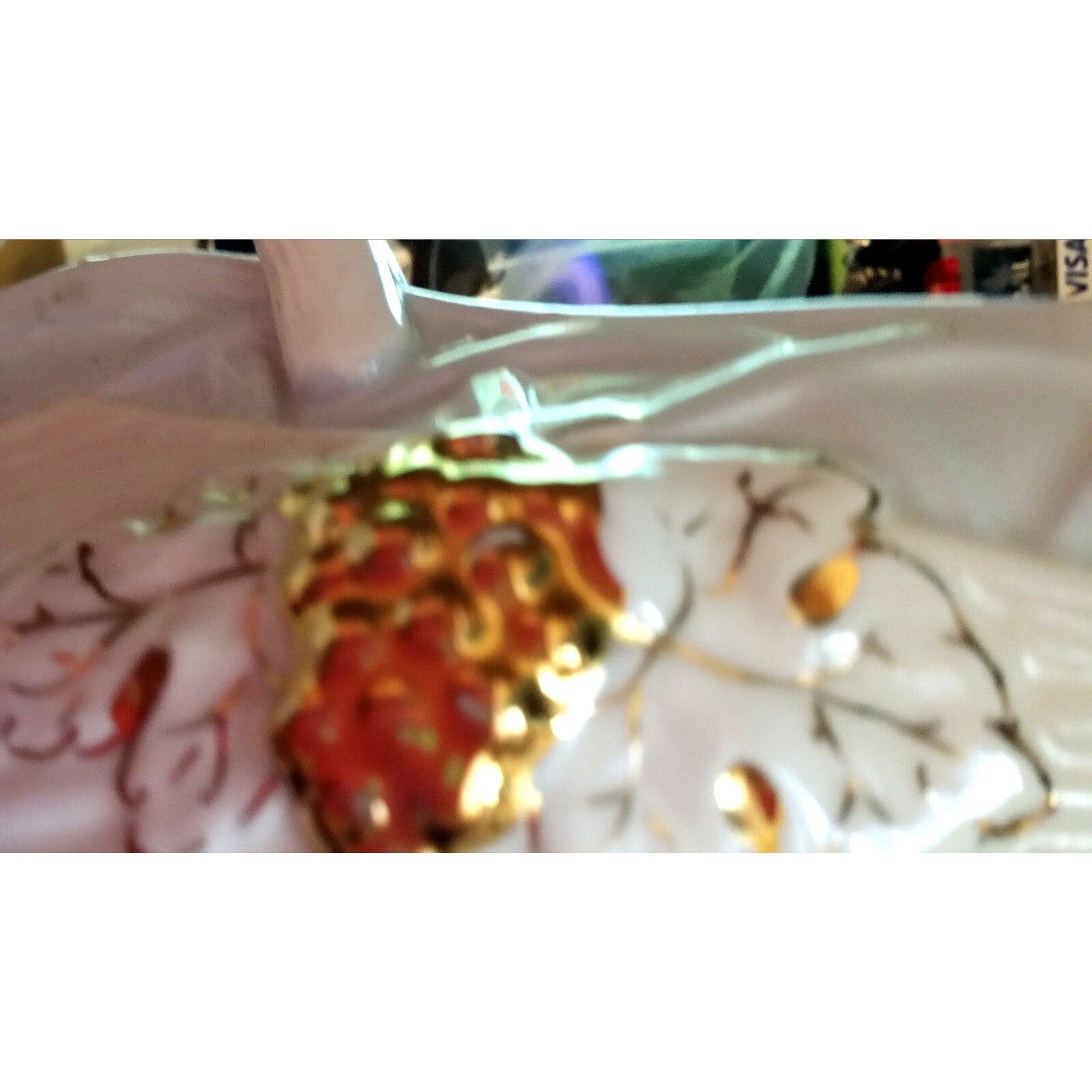Bowl Ceramic Blue Rim Ribbon Look White Gold Flowers Leaves White Handles
