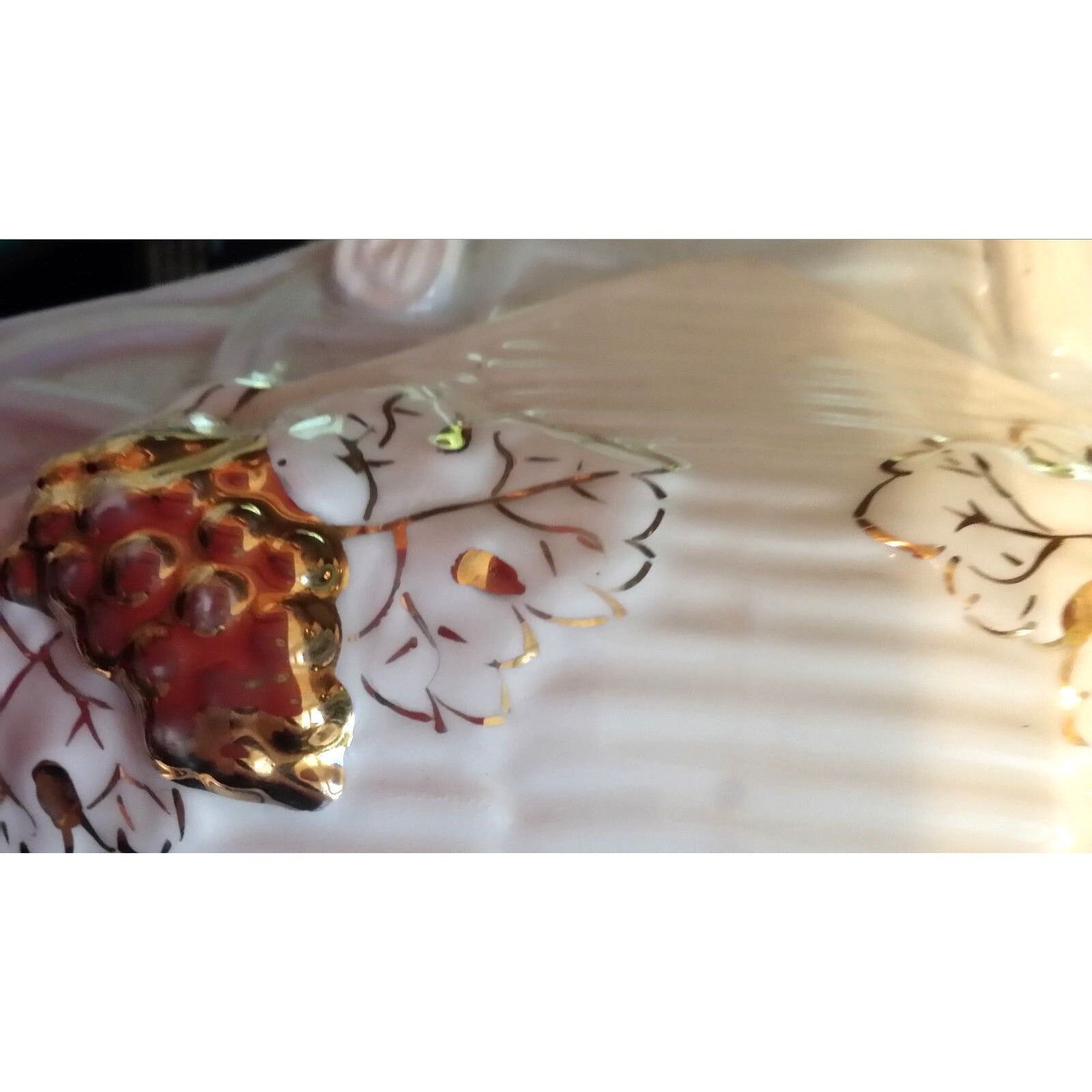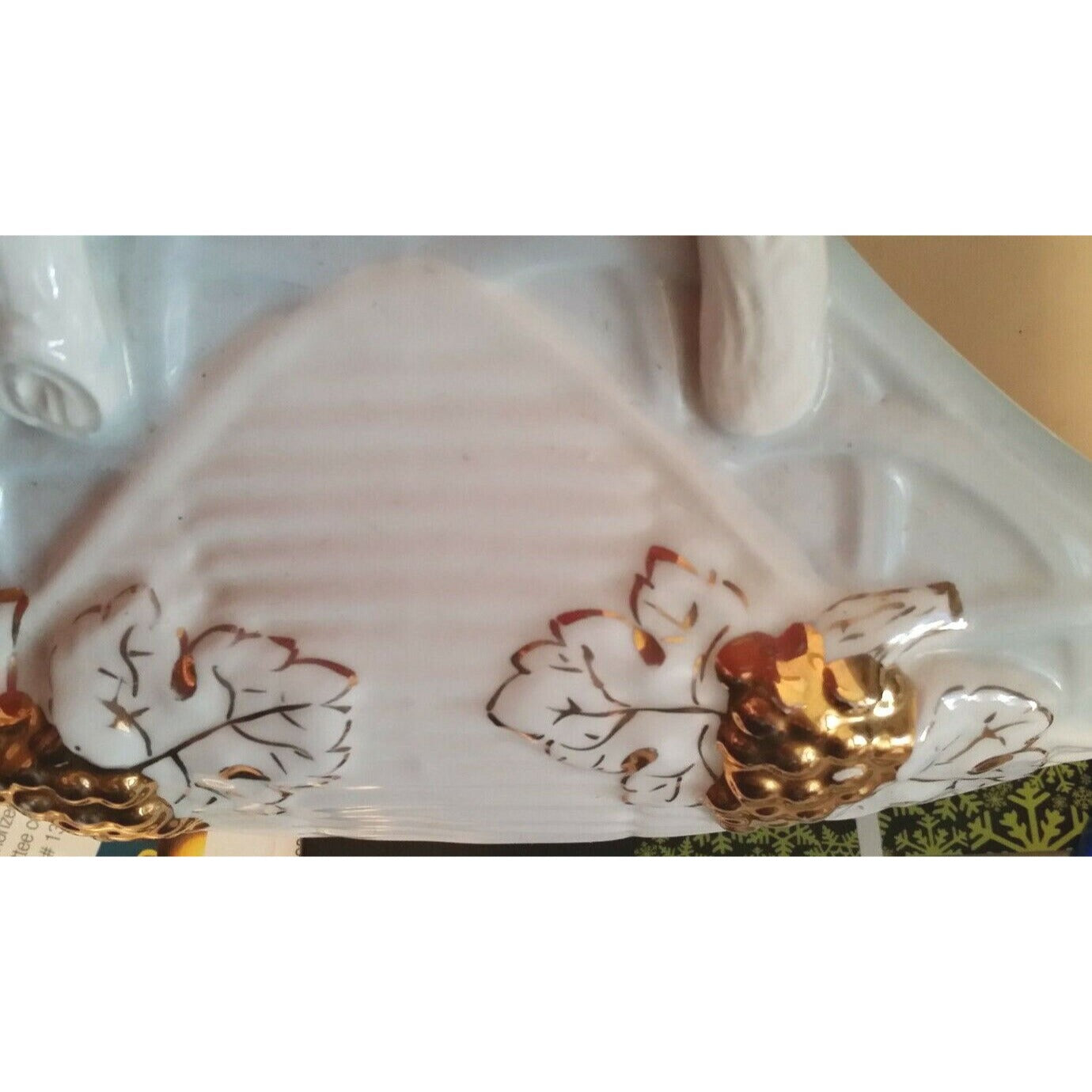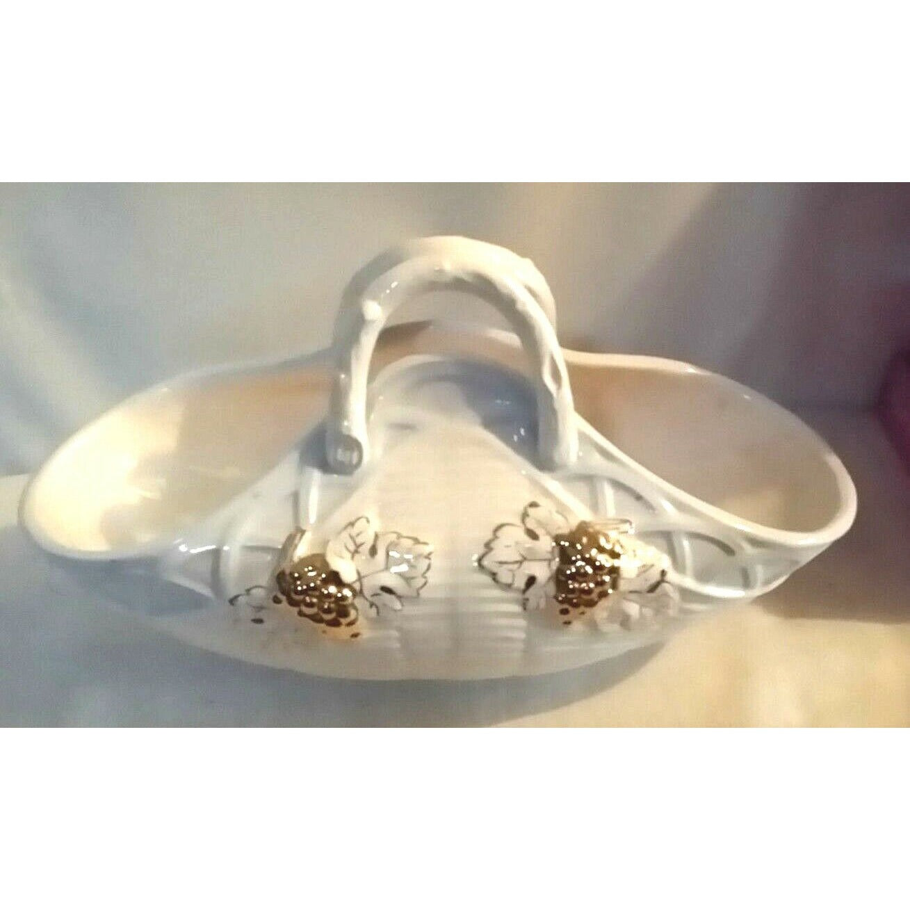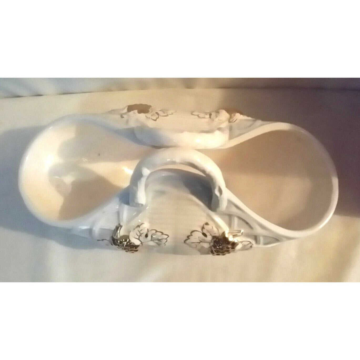 Vintage Ceramic Blue Rim Ribbon Look White Gold Flowers Leaves White Handles