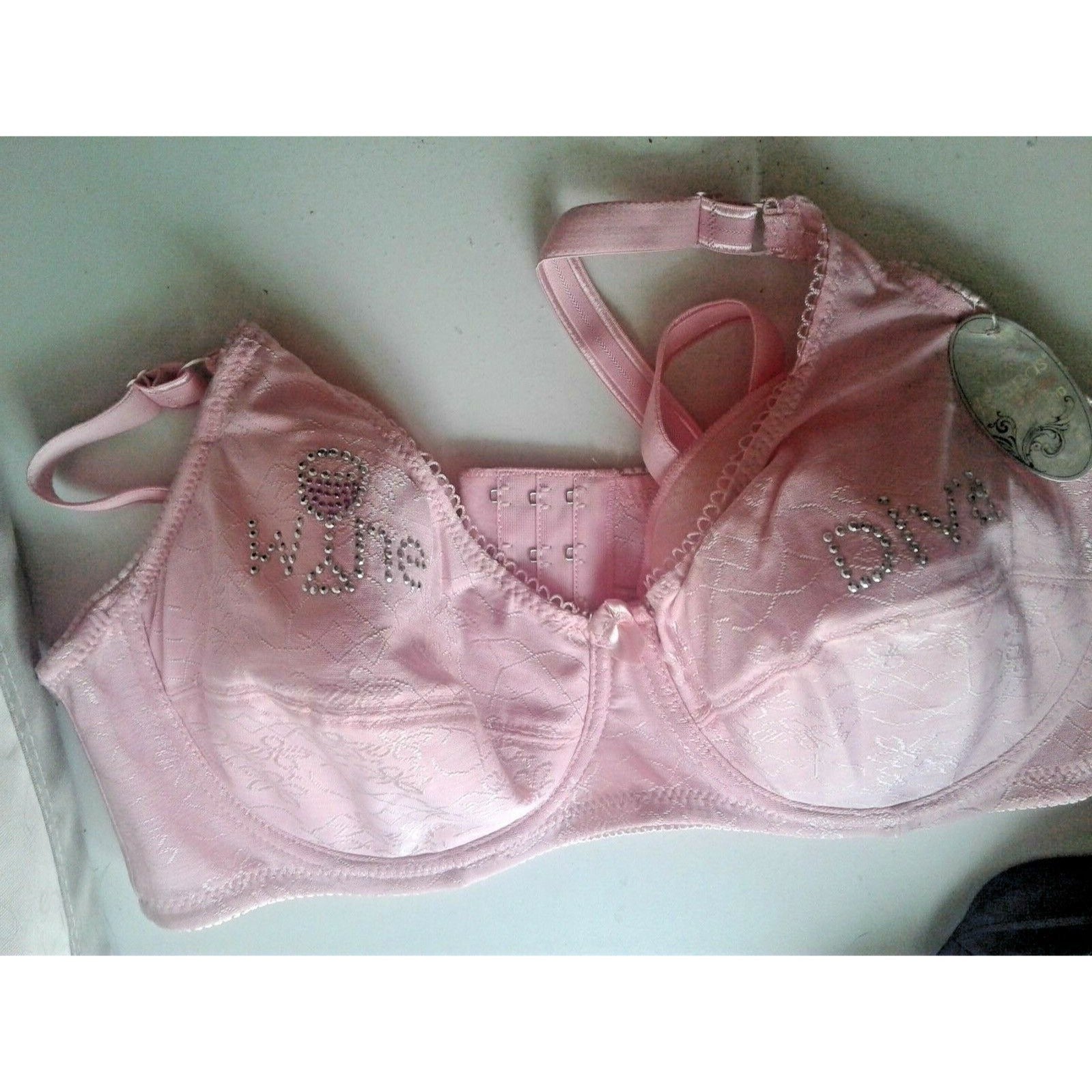 Bra Mopas Size 40 D Pink Flower Says Wine Diva on Top Cup Rhinestones Underwire