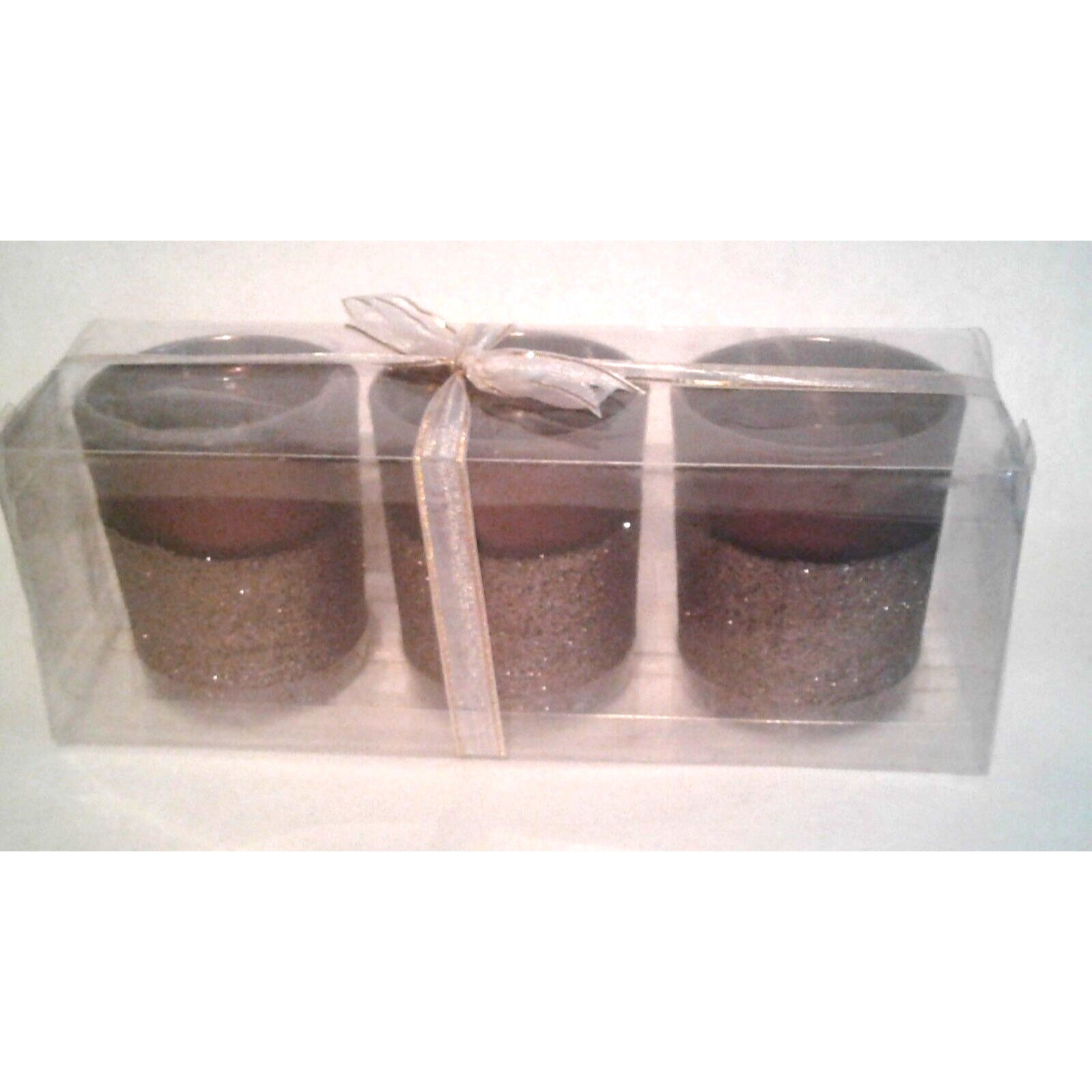 Candles Brown Glitter Bottom Tea Light 2 1/2 " Tall 2" Top Gift Box Set of 3