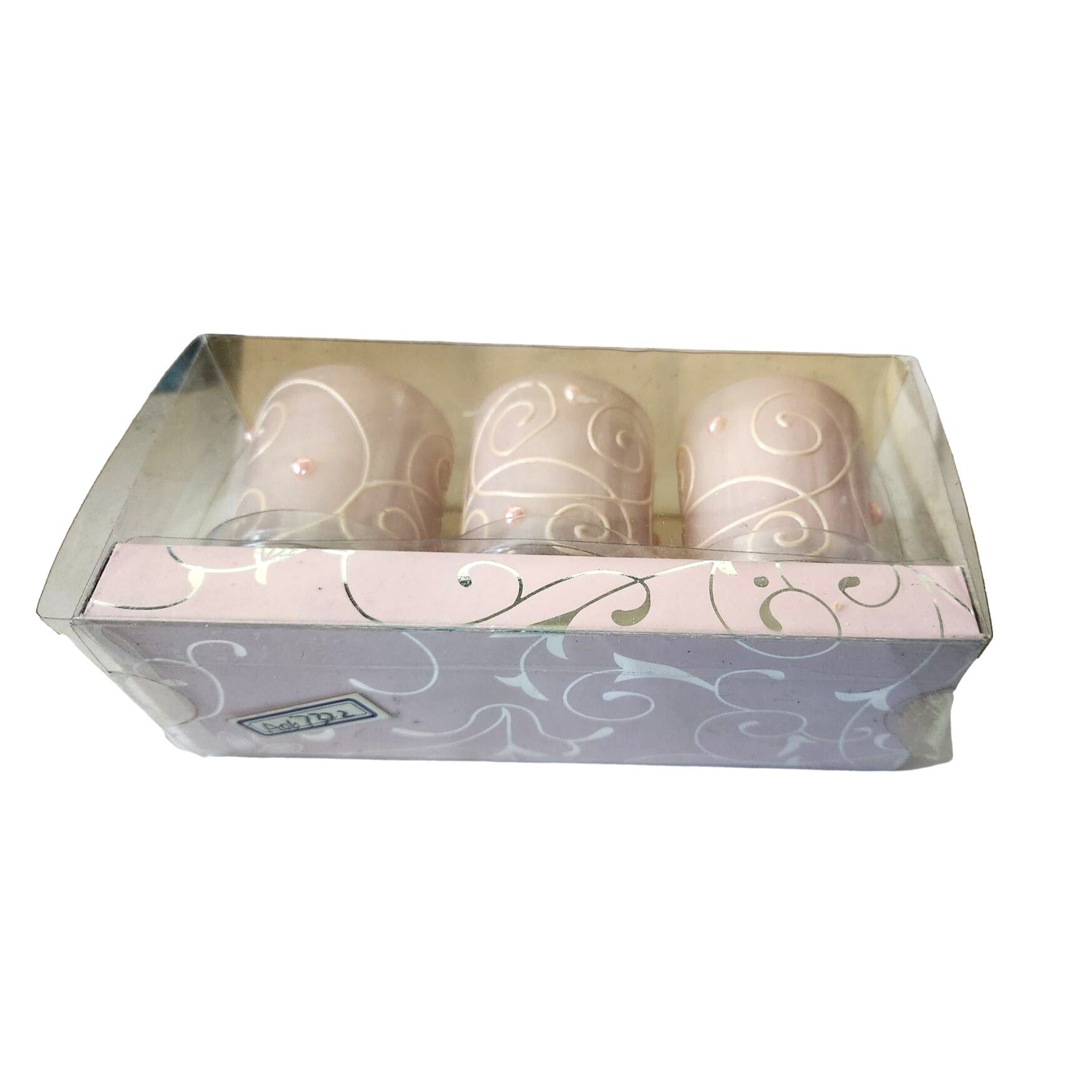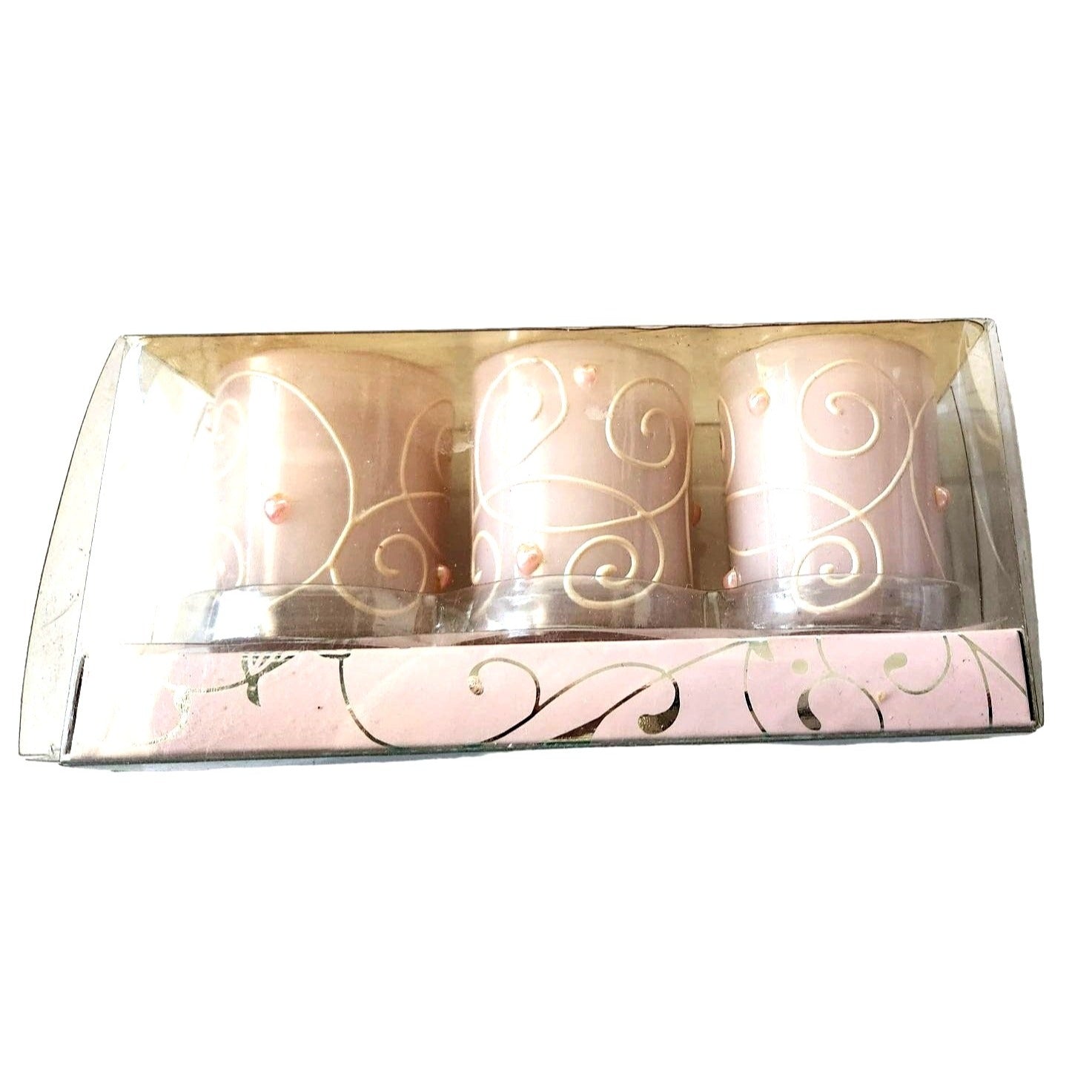 Candles Valentine Love Pink Votive Swirl Hearts 2 1/2 " Tall 2" Top Set of 3 Sparkle top
