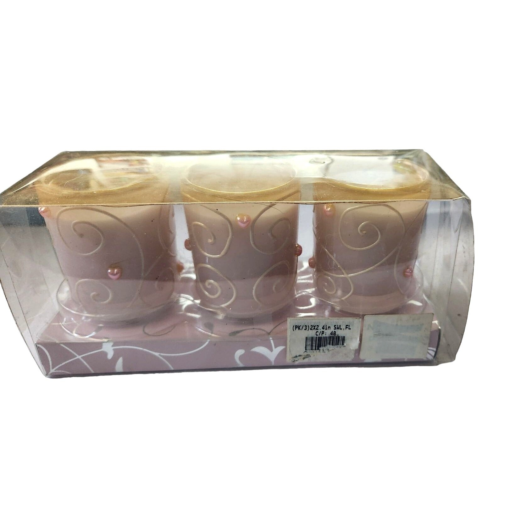 This set of 3 Unbranded Valentine Love Pink Votive Swirl Hearts Candles, each 2 1/2" tall and 2" top, adds a romantic touch to any setting. The pink, heart-themed candles come with a sparkle top.