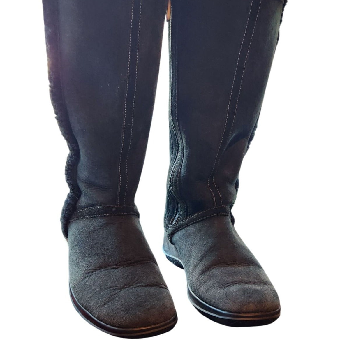 Clarks Artisan Collection Black Leather Shearling Lined Tall Boots Womens 6.5M Warm & Stylish Winter Footwear