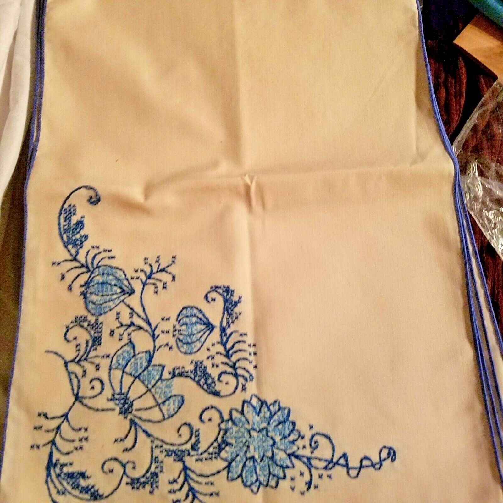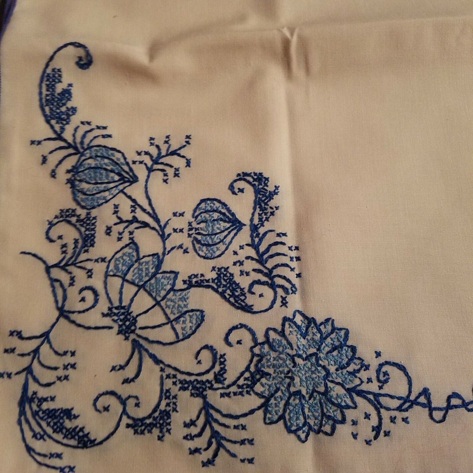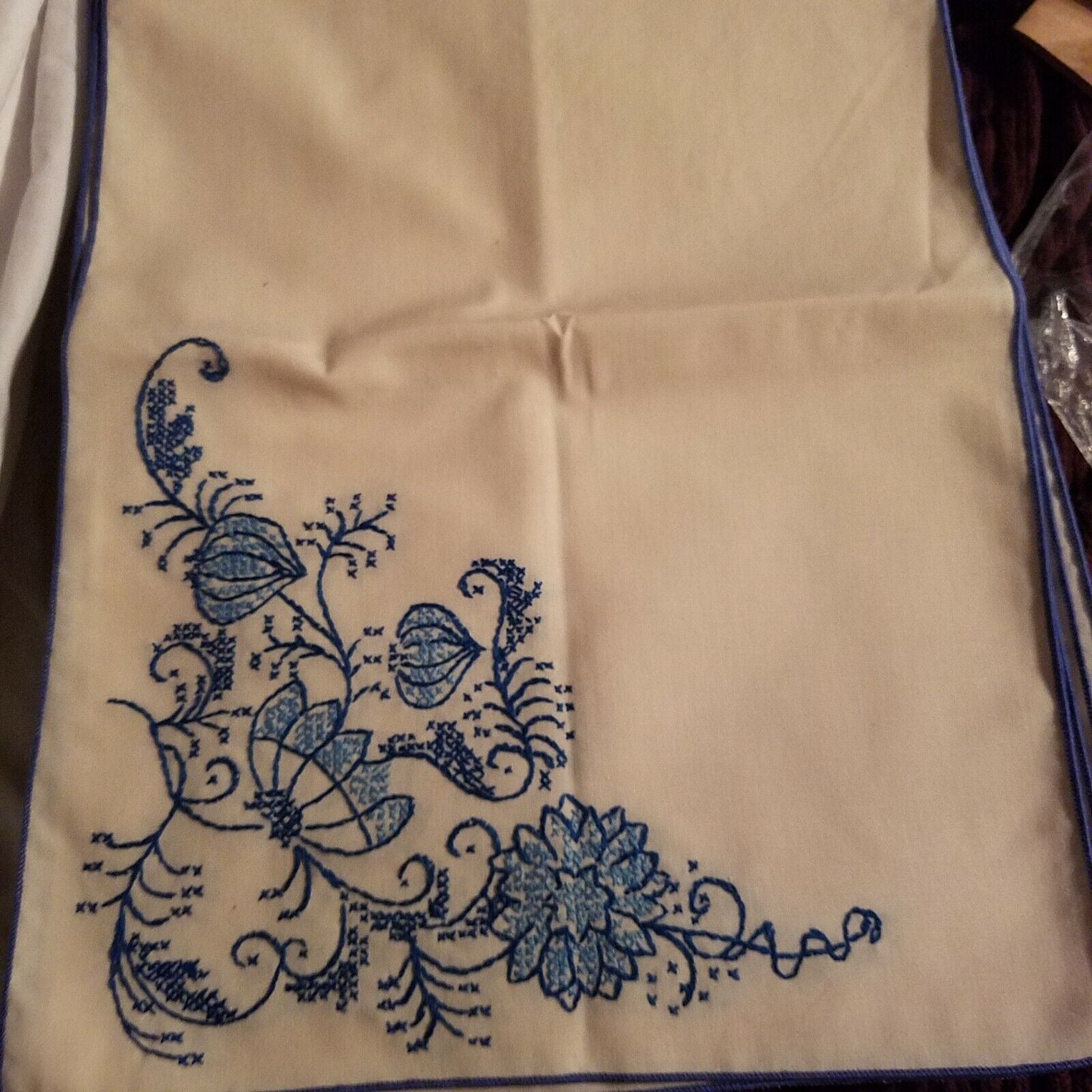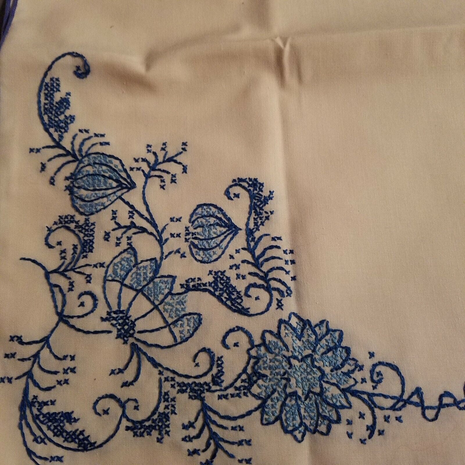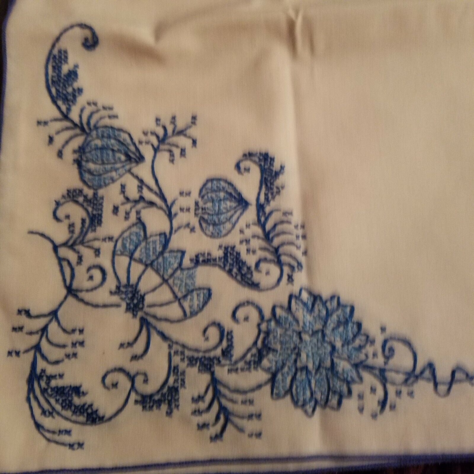 Placemat Cream 12 x 16 Blue Floral Hand Embroidered Corner
