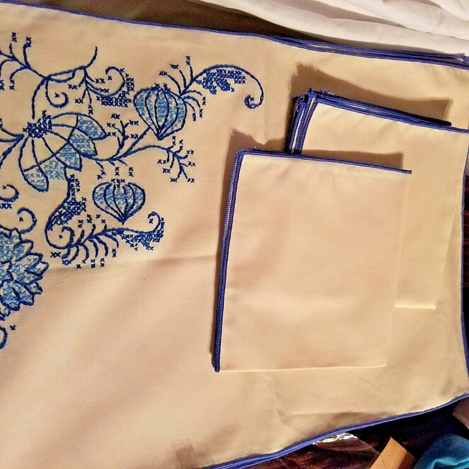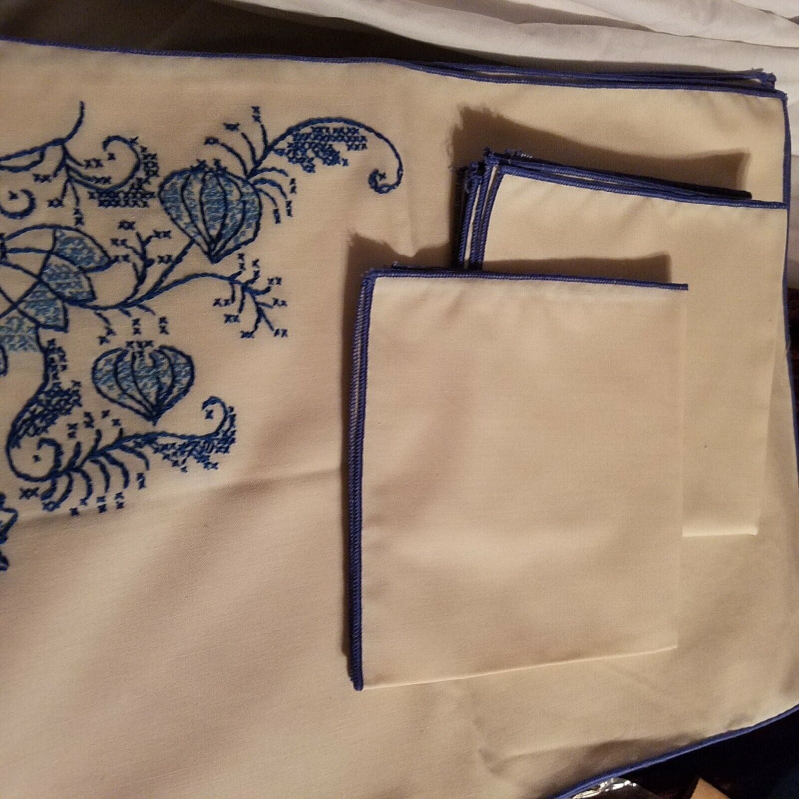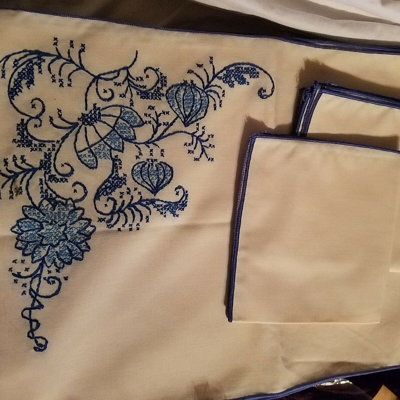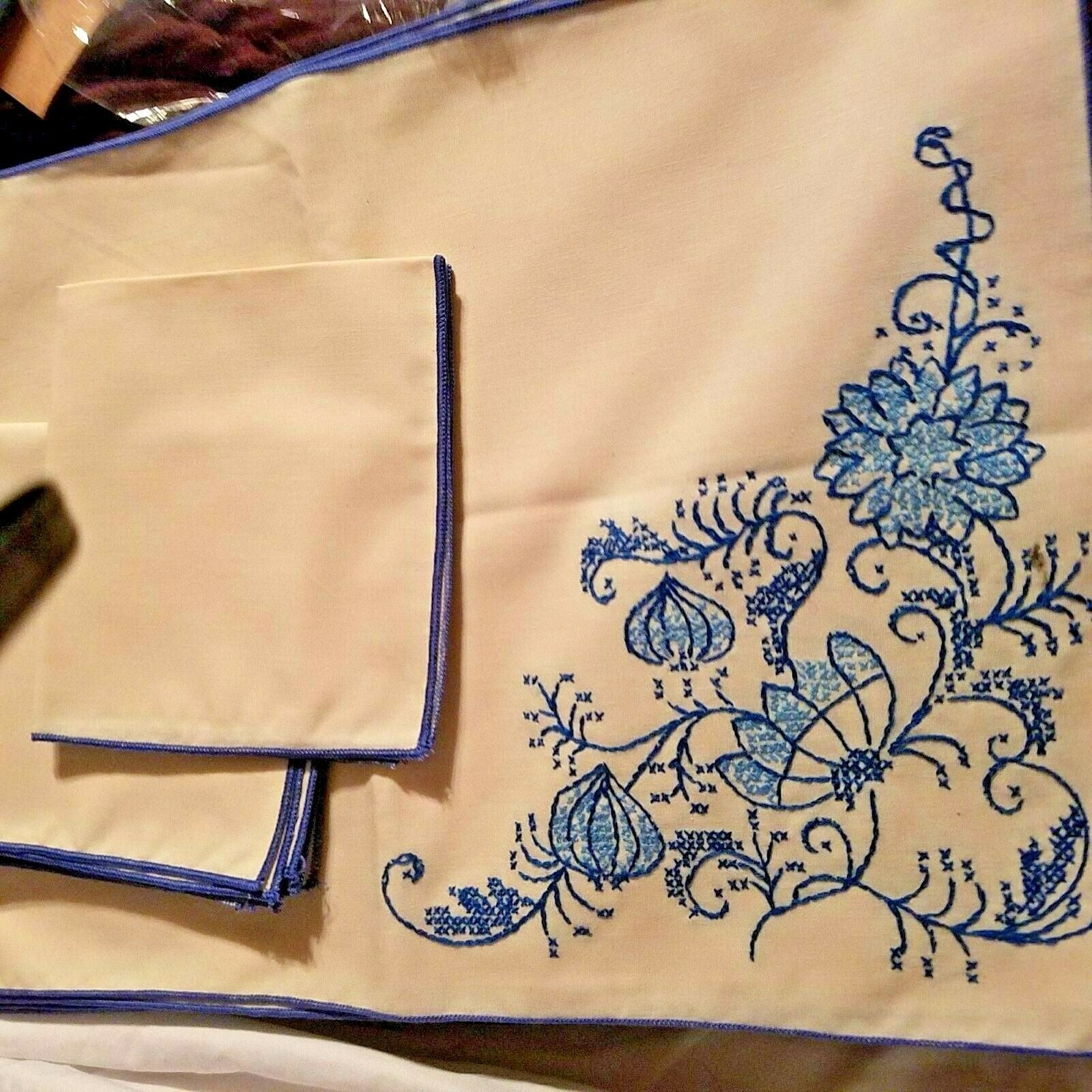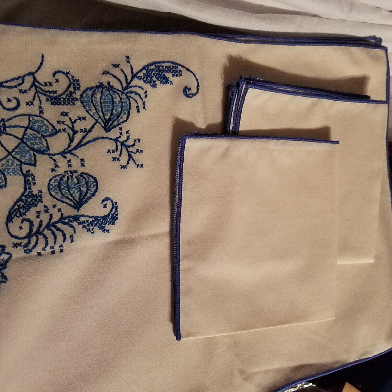 Cloth Placemat Cream 12 x 16 Embroidered Corner & Napkins 12 x 12 Set of 4