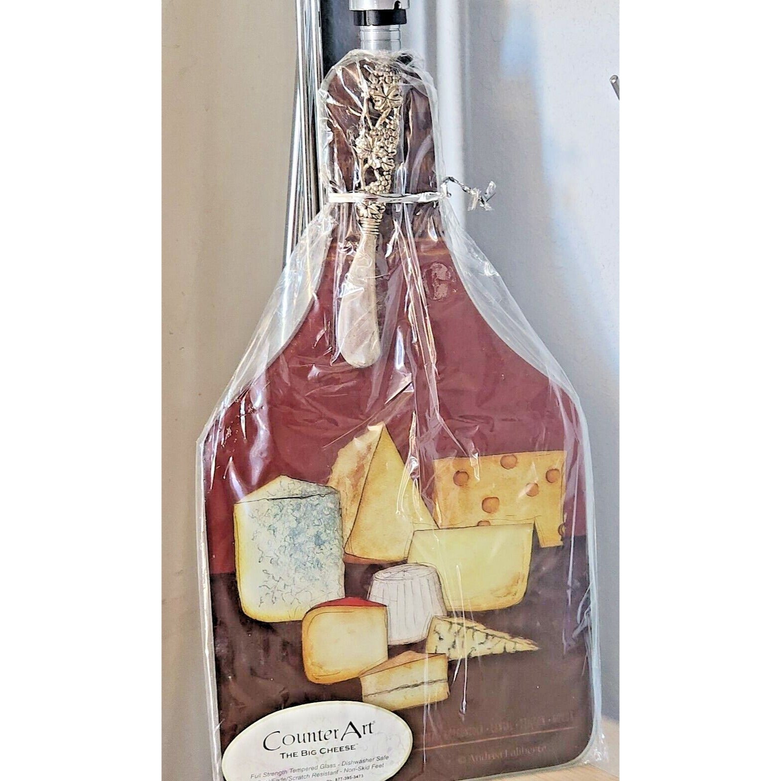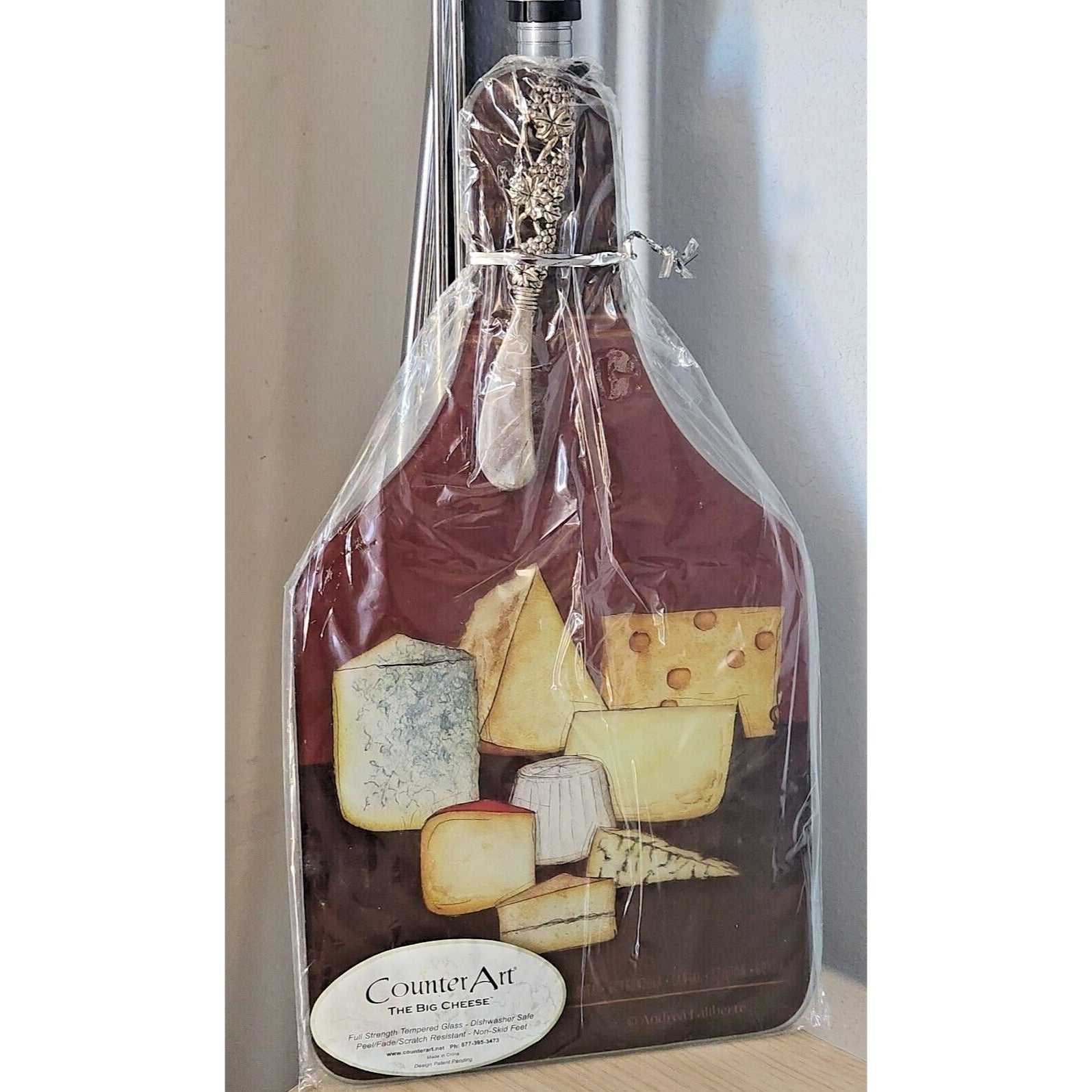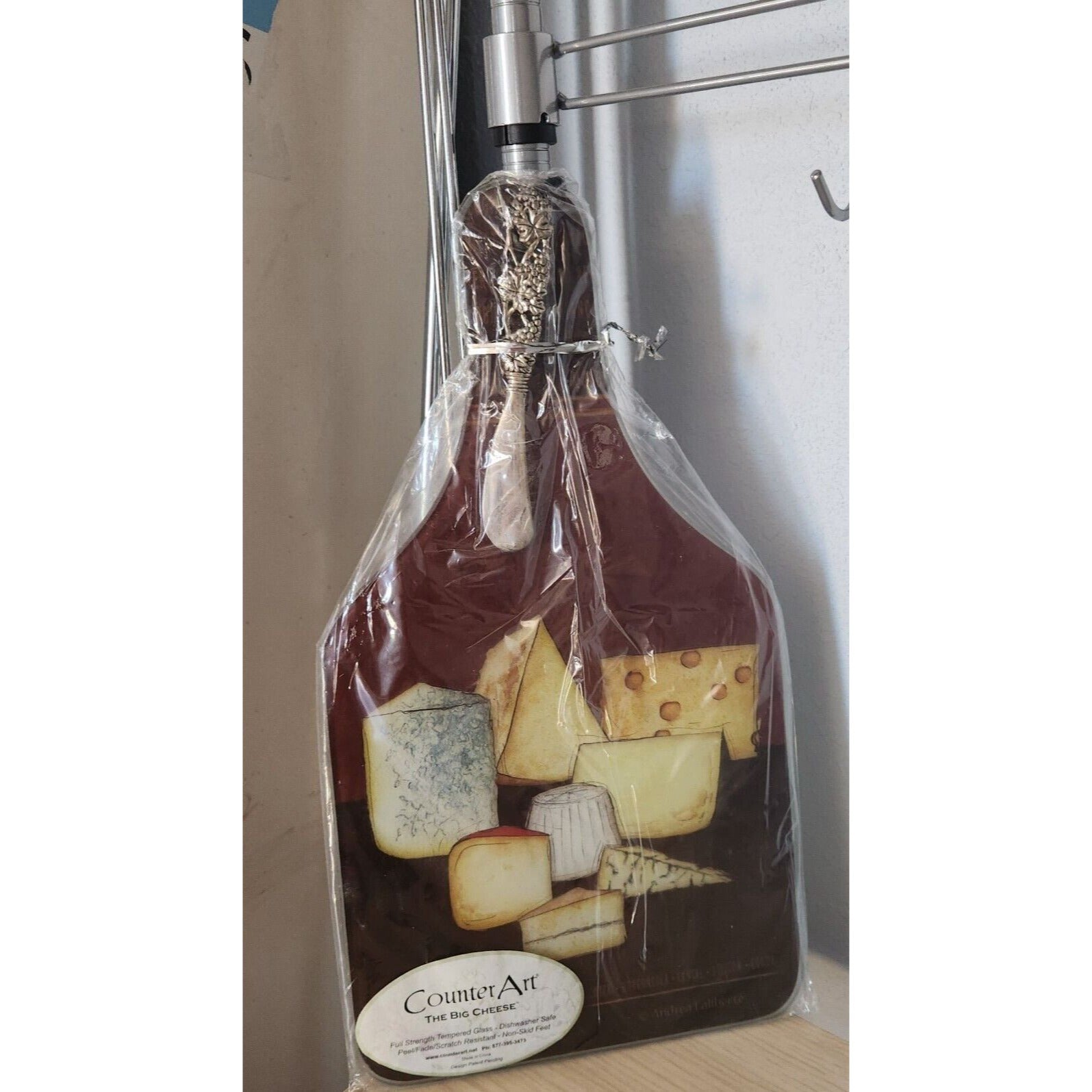 Counter Art Tempered Glass Wine Shape Cutting Board Cheese w/Knife 14 " x 7 1/2"