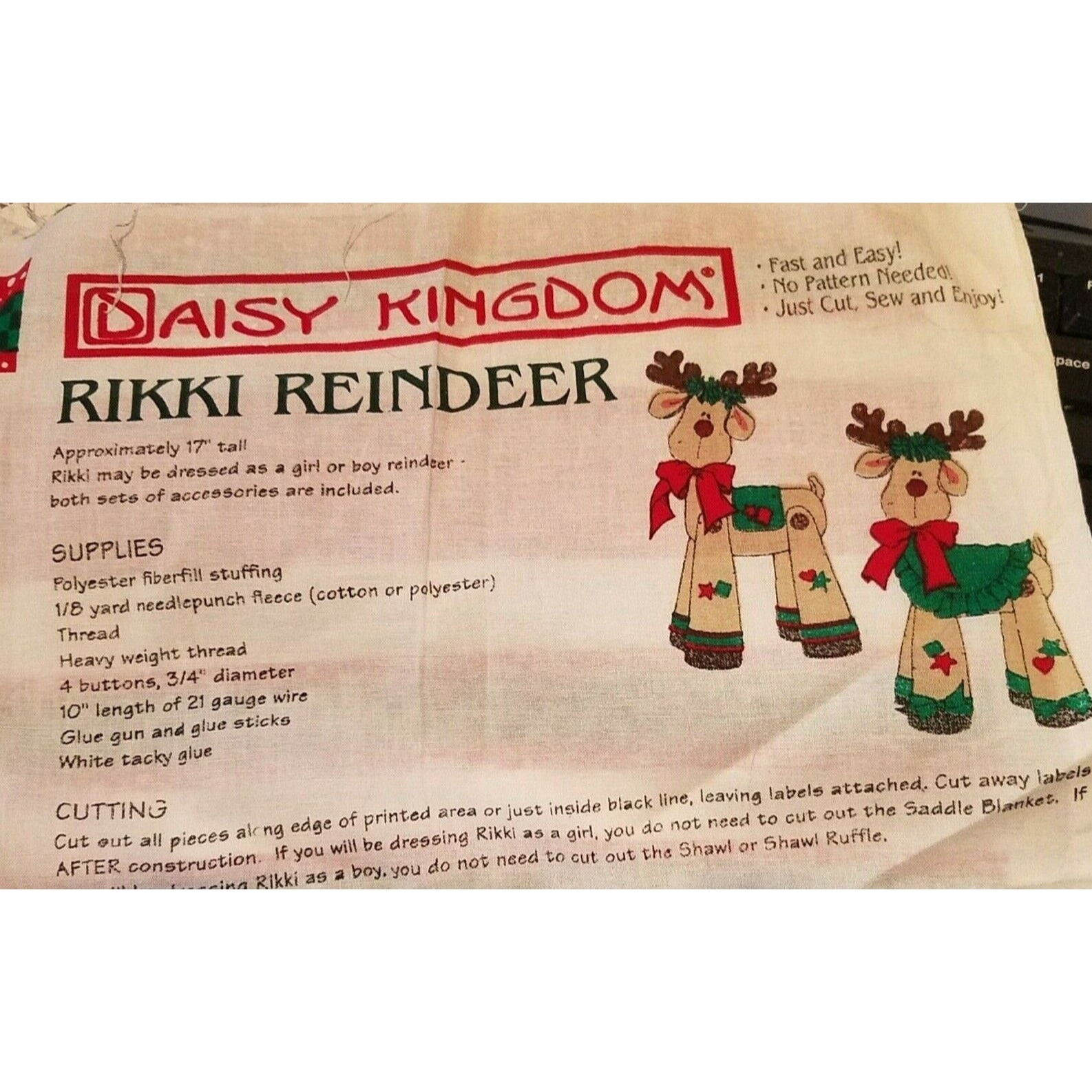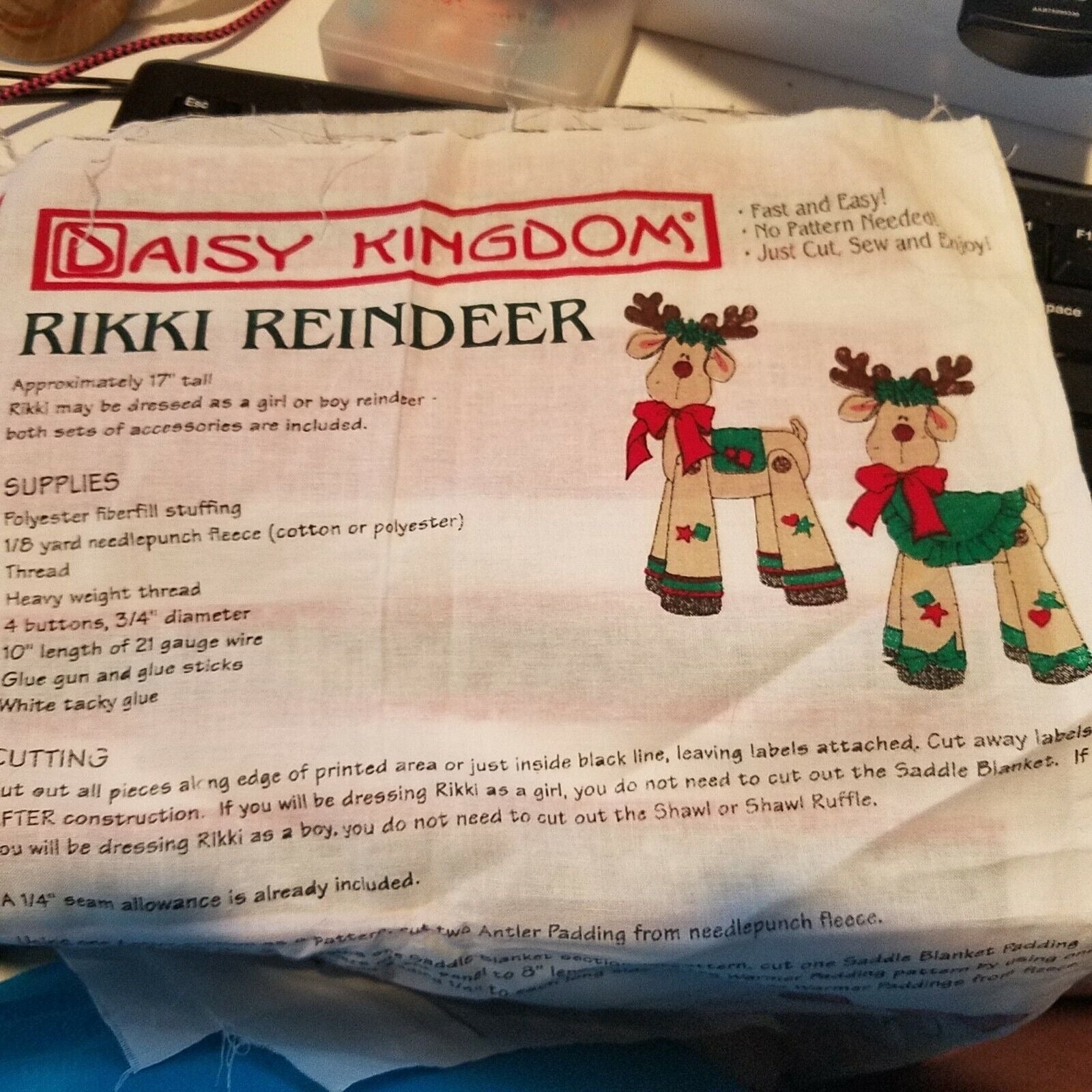 Craft Kit Rikki Reindeer Stuffed Animal Daisy Kingdom 1997 Instructions Printed