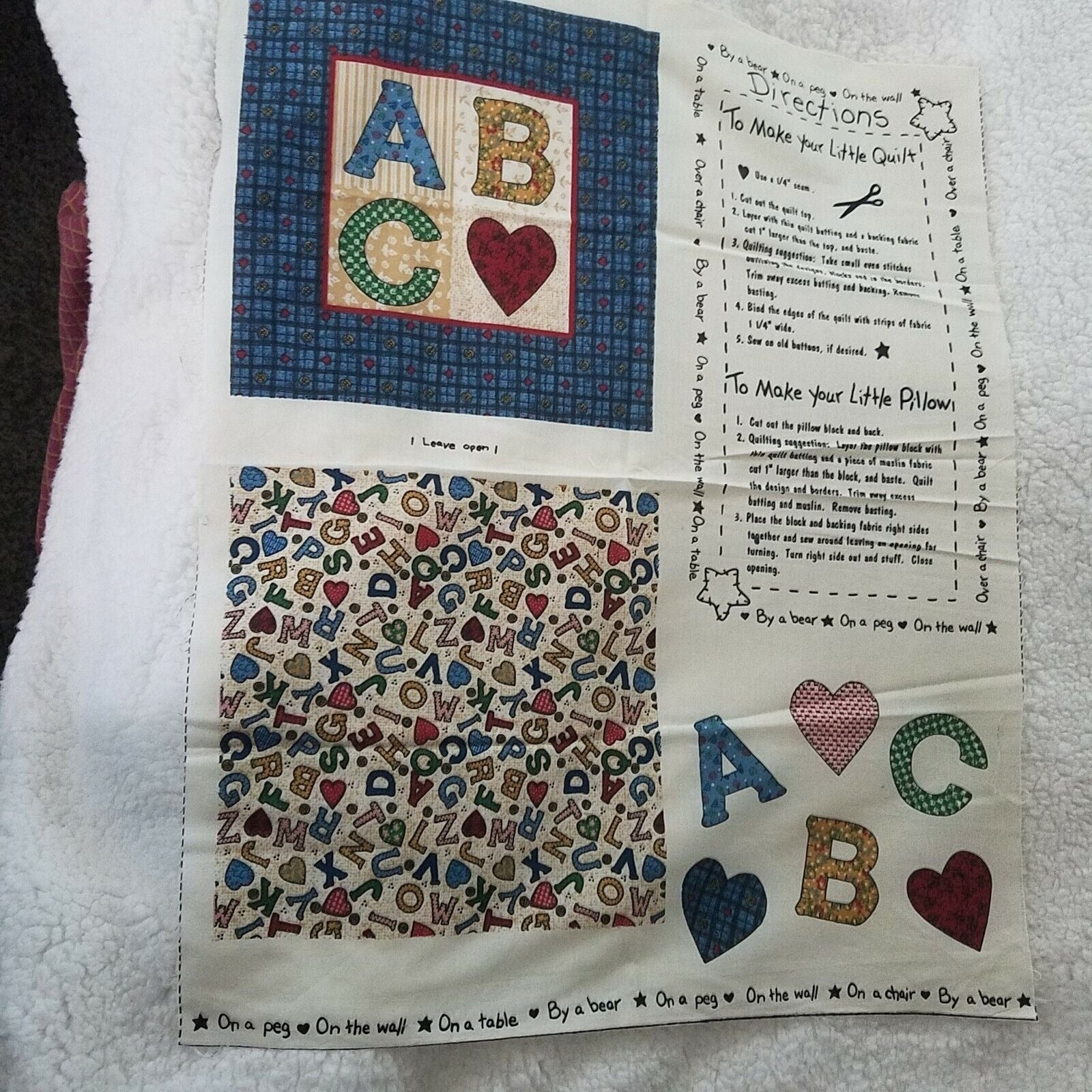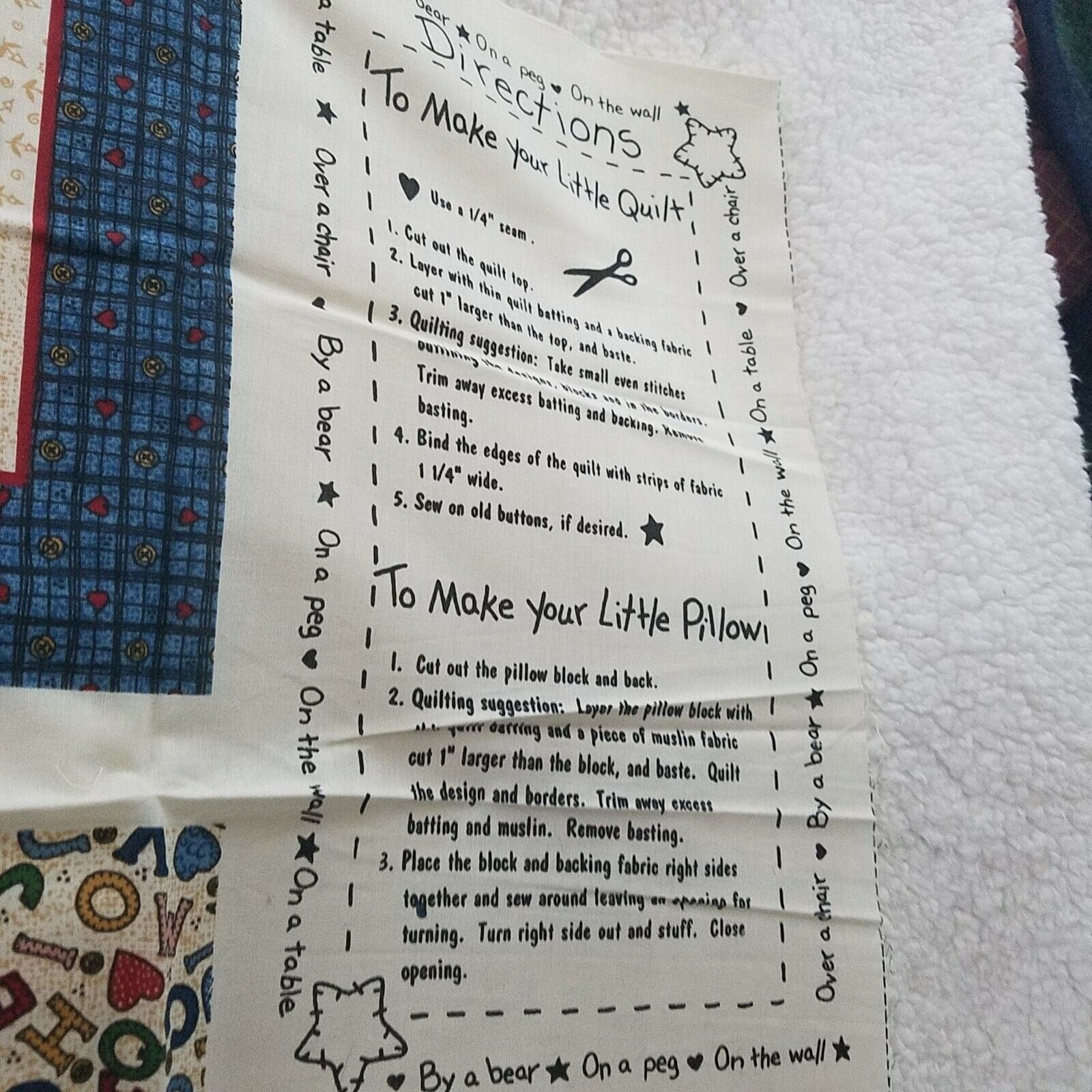 Craft Kit Small Quilt or Pillow ABC By a Bear On a Peg On the Wall Directions