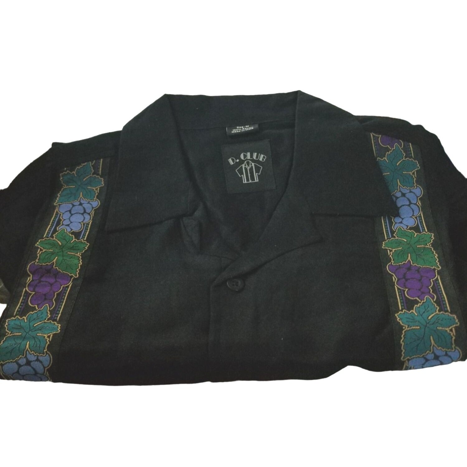 D. Club Original Shirt Men Medium Wine Grapes Decor Sides Short Sleeve Button-Up Shirt 100% Rayon
