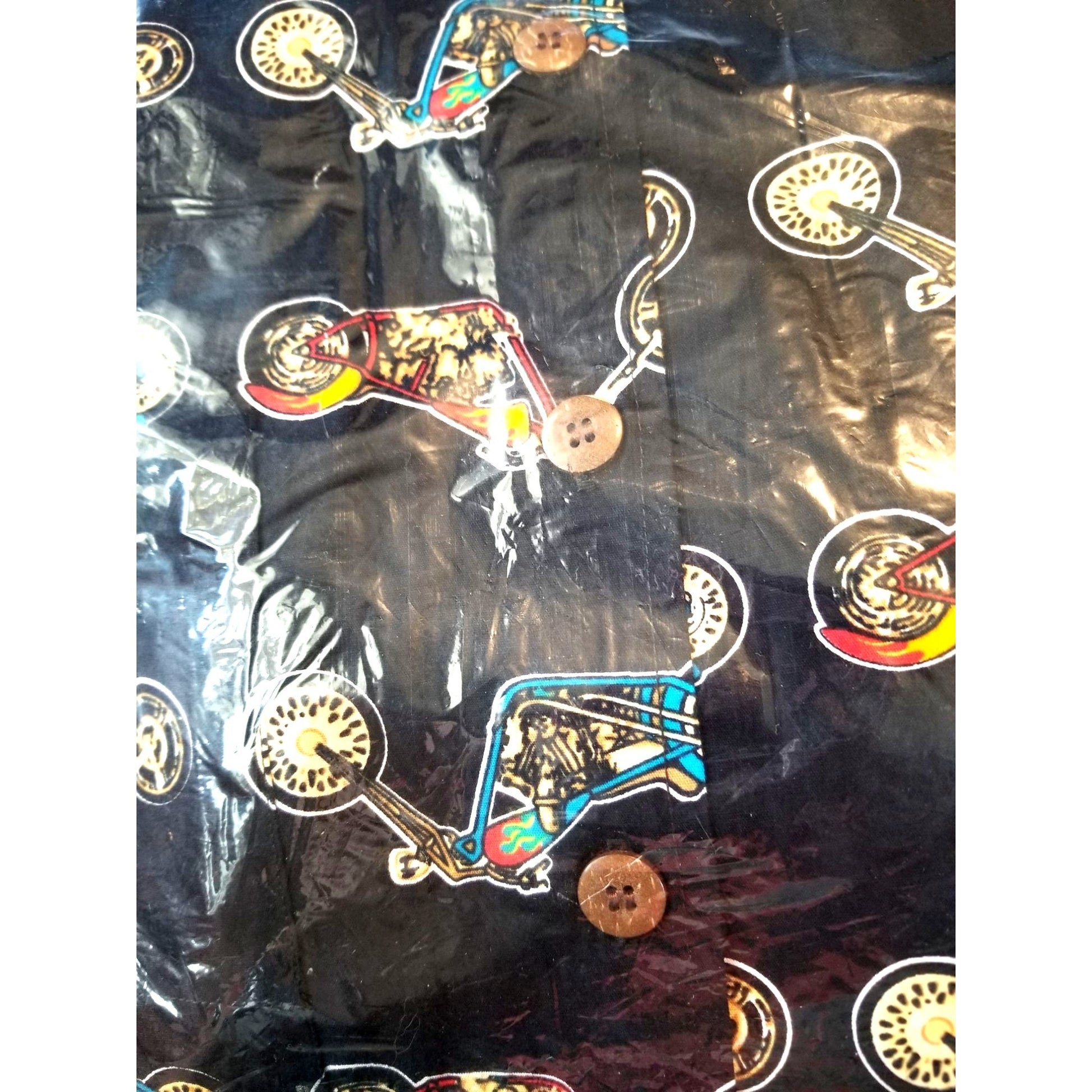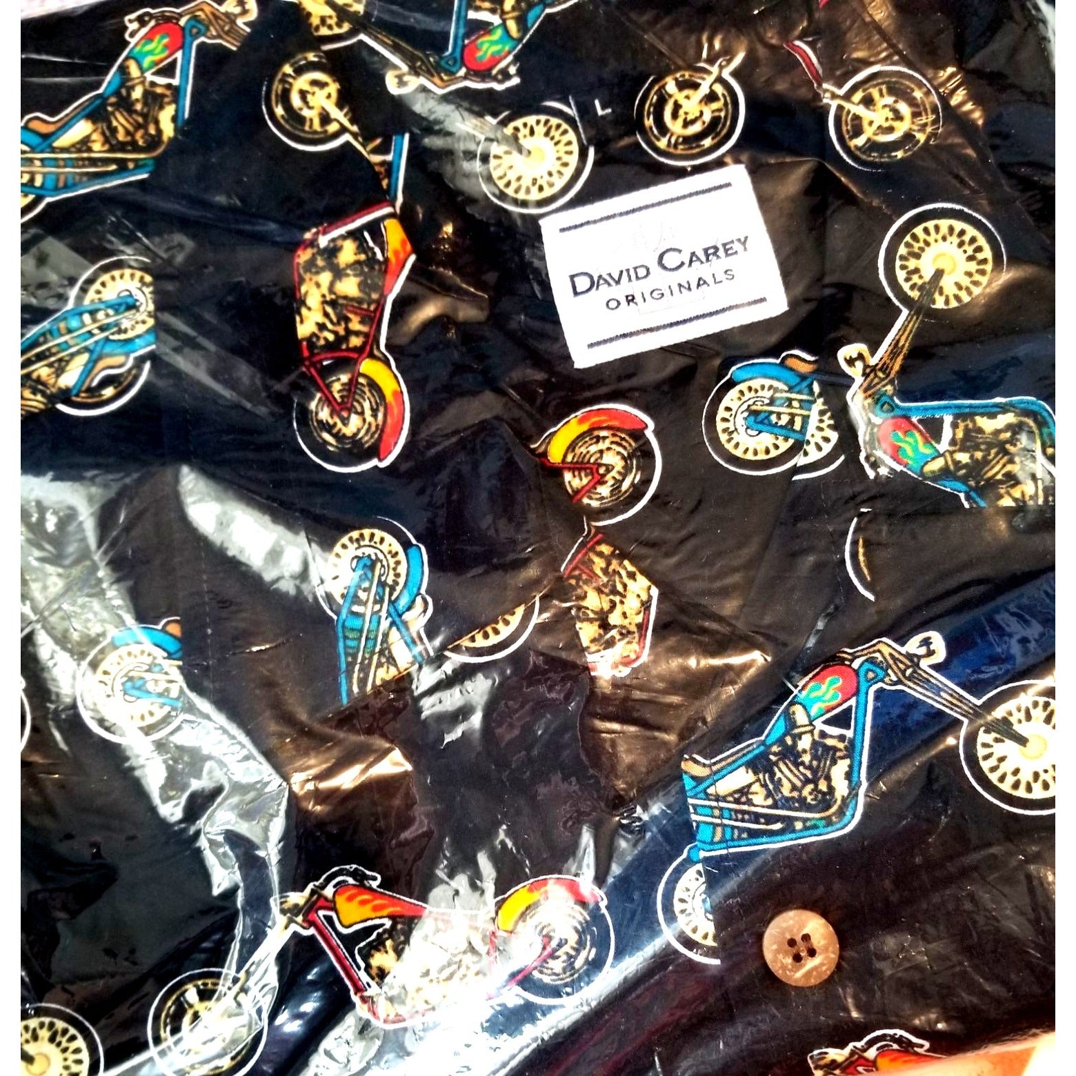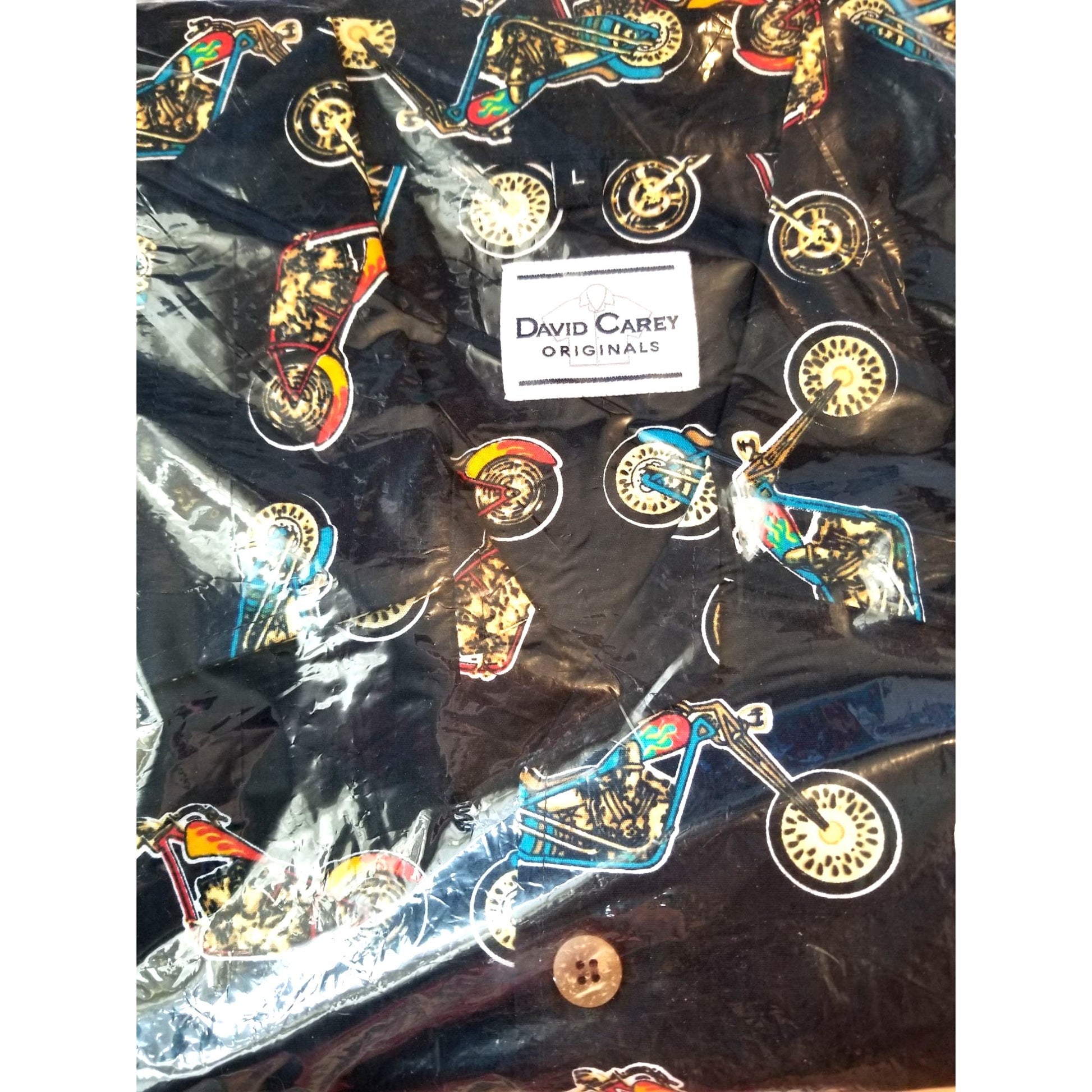 David Carey Original Chopper Motorcycles Shirt, Large, 100% Cotton. Stylish and comfortable short sleeve button-up, perfect for any casual occasion. Black with multi-color design.