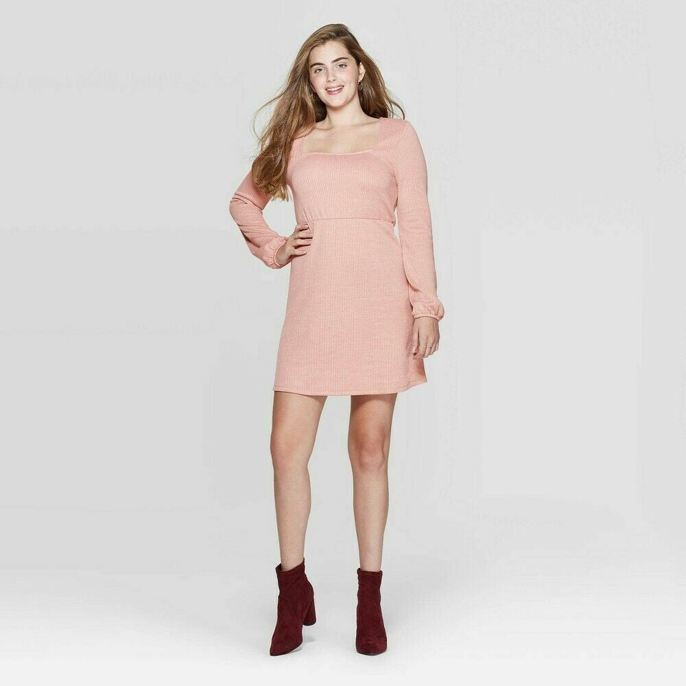 Dress Women's Xhilaration Size S Pink Long Sleeve Square Neck Sweater Mini