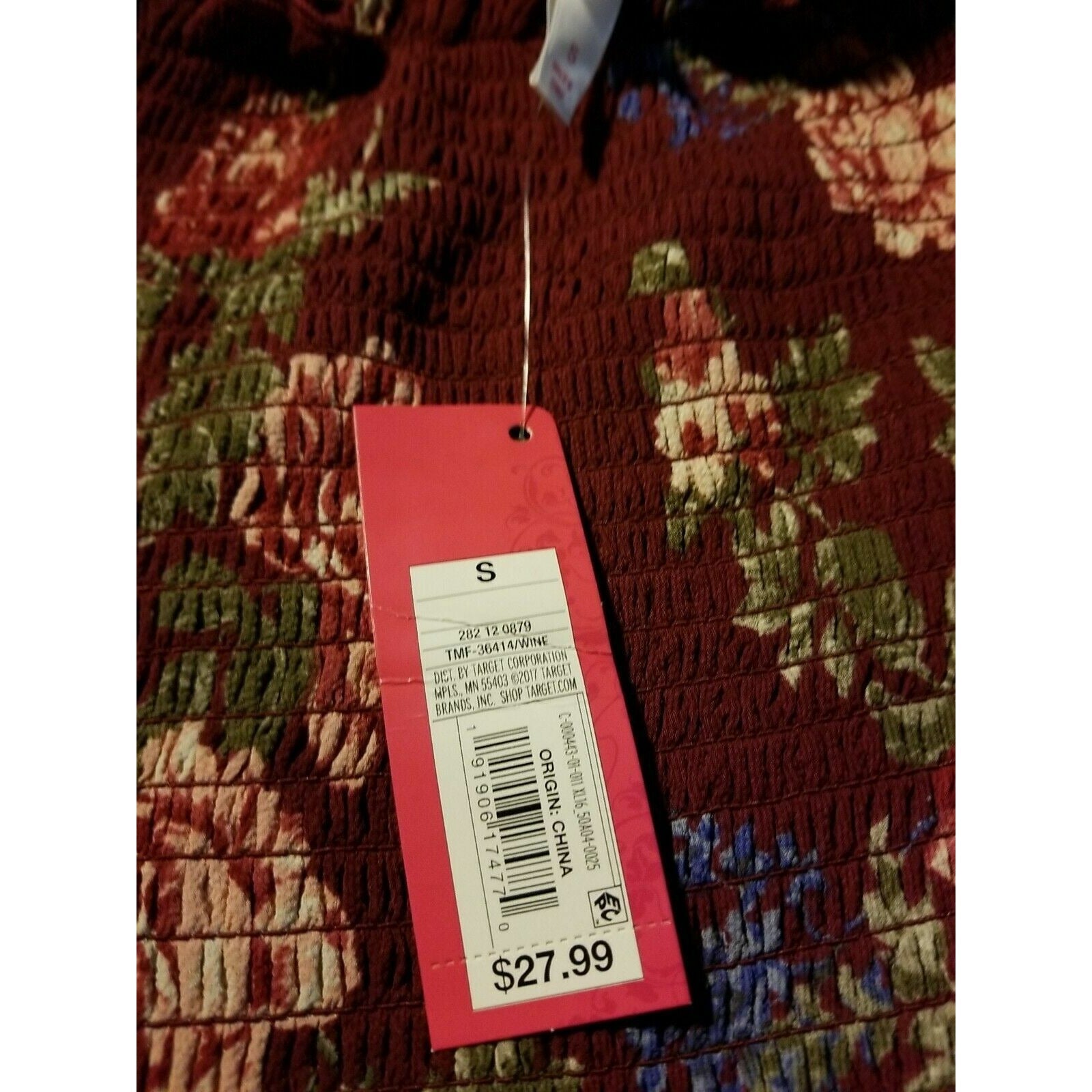 Dress Xhilaration Women's Size S Burgundy Floral Print Long Sleeve Square Neck Smocked Top Mini