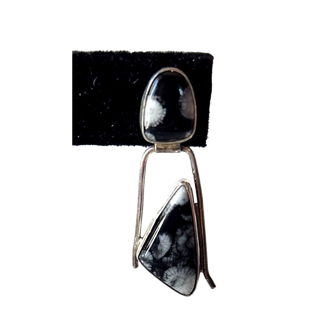 Stunning Orca Agate 925 Silver earrings by Jerry & Fran Harr. These 7.4-gram post earrings feature two hanging stones, adding a touch of elegance to any outfit.
