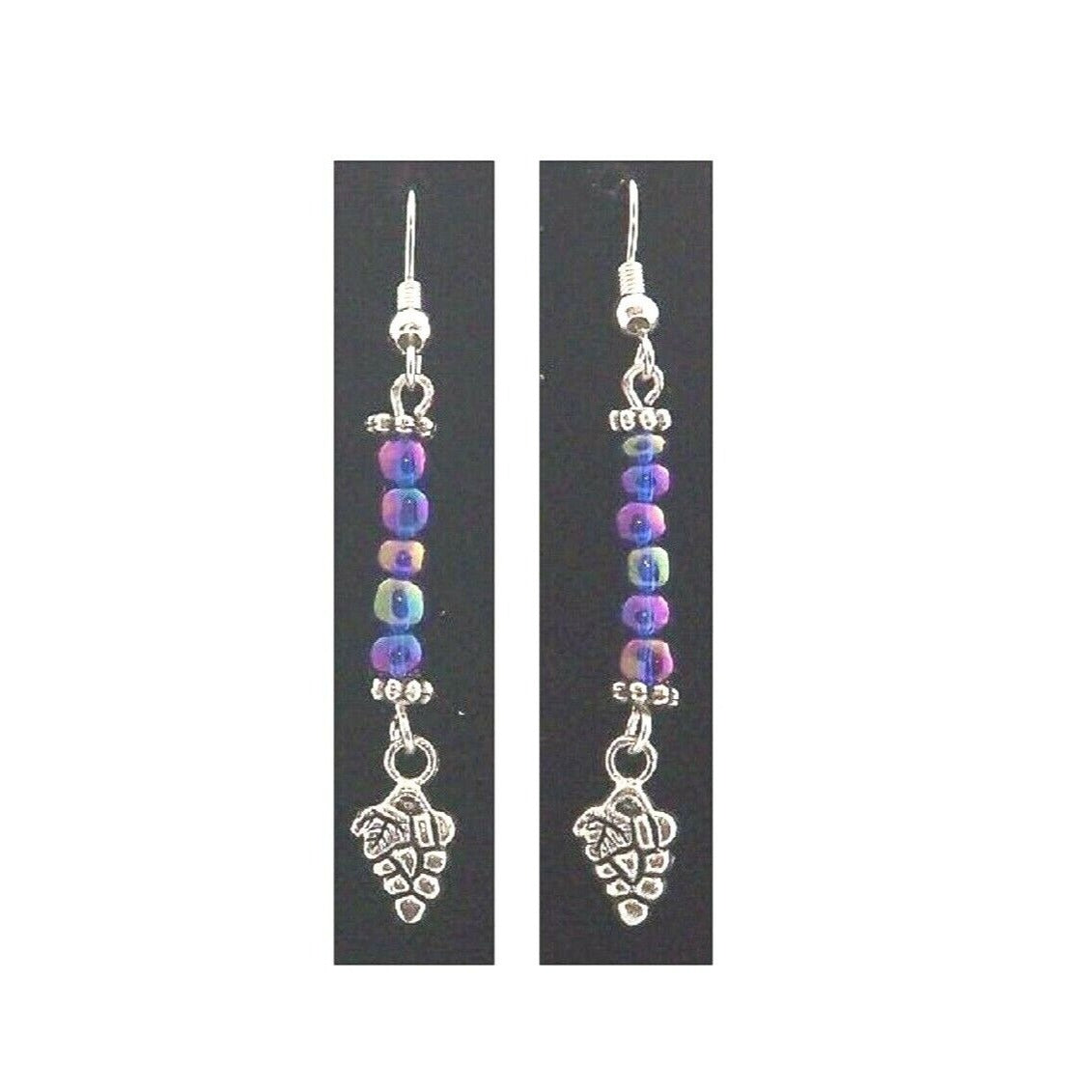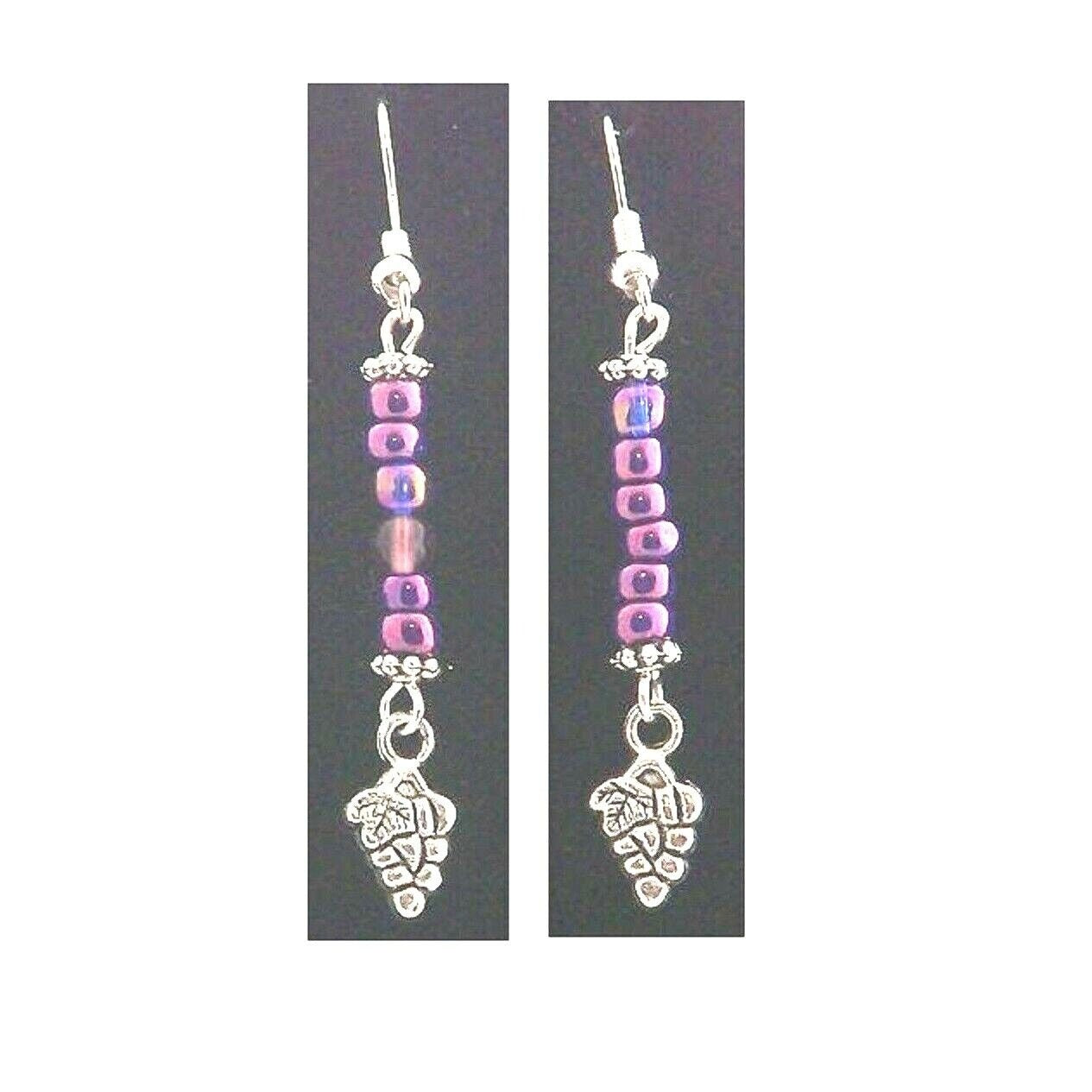 Earrings Small Grape Cluster Wine Charm Sterling Wire Metallic Purple Beads 2" Long