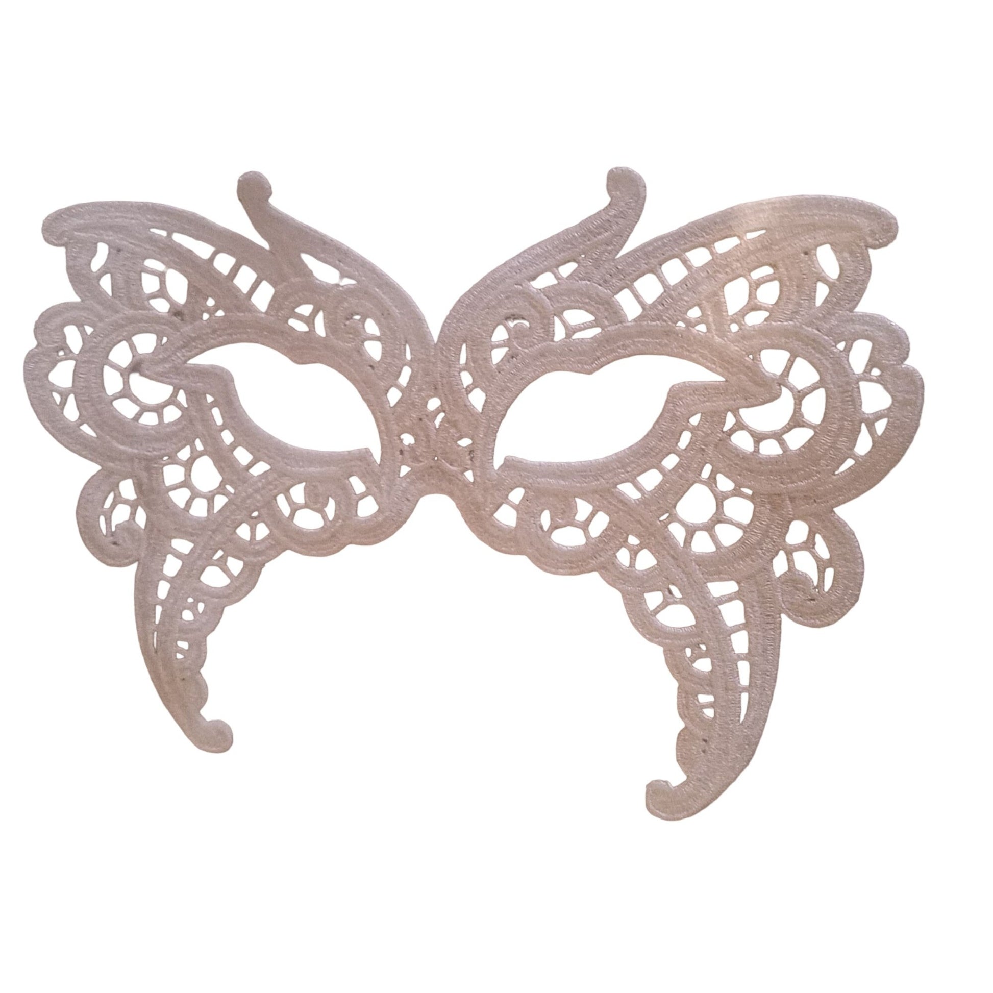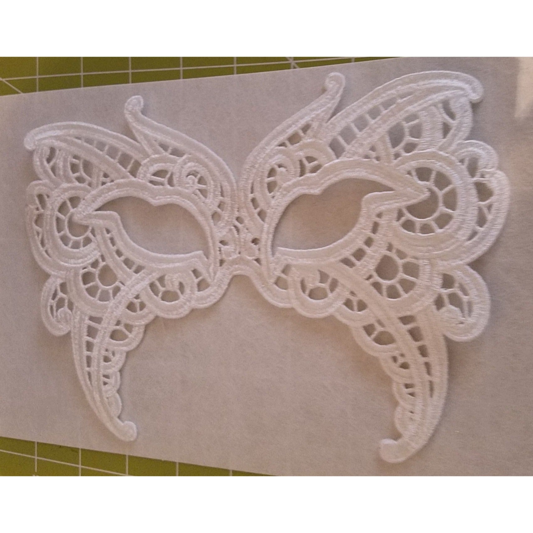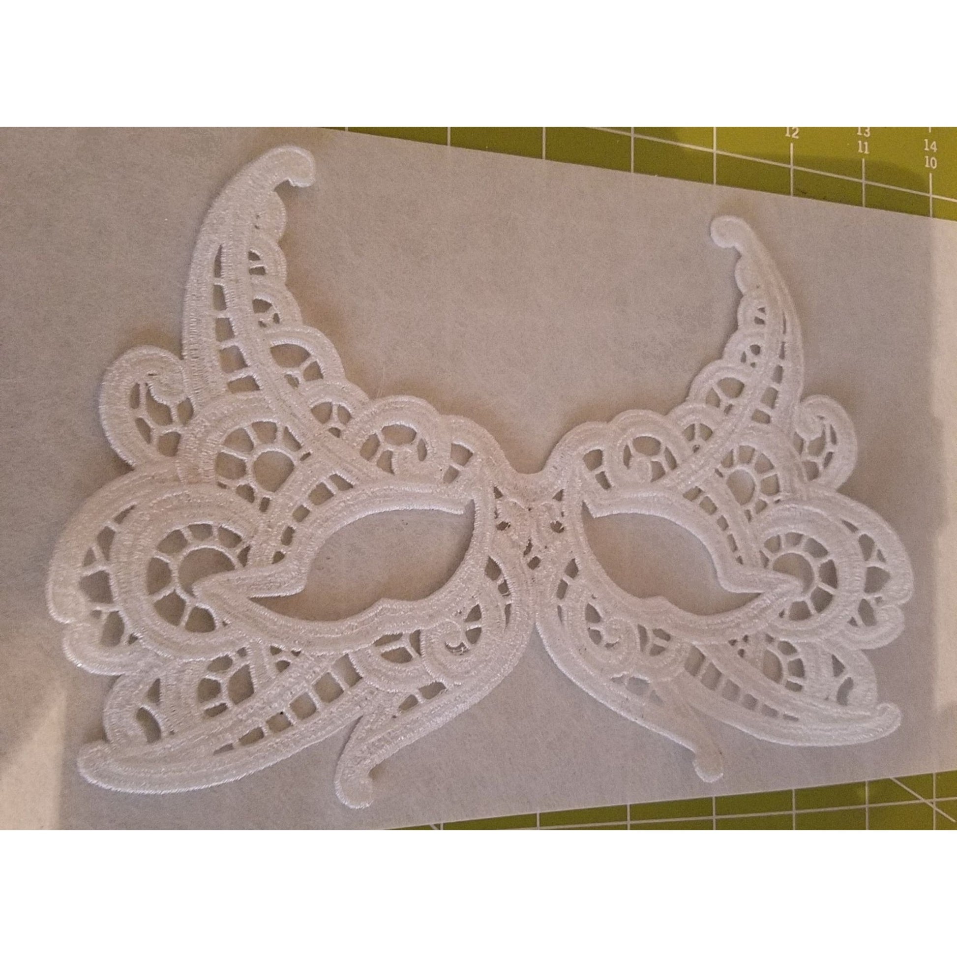 Embroidered Mardi Gras Mask 8 1/2 x 5 1/2 White Decorate Add stick Ribbons Jewels glitter Rinse in Water to make softer before you decorate