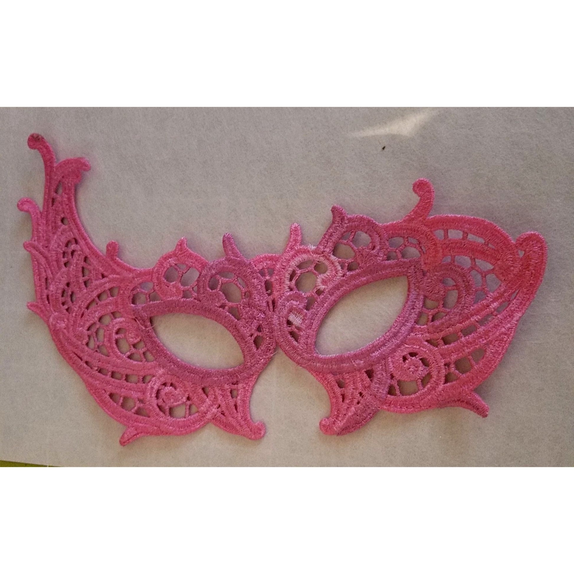 Embroidered Mardi Gras Mask 8 x 5 Pink Decorate Add a stick Ribbons Jewels glitter Rinse in Water to make softer before you decorate