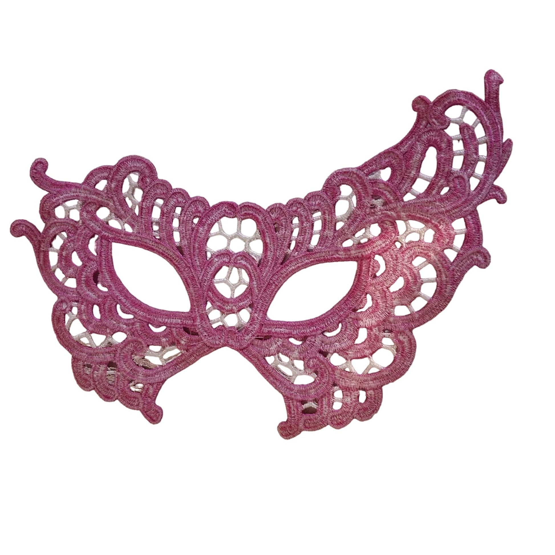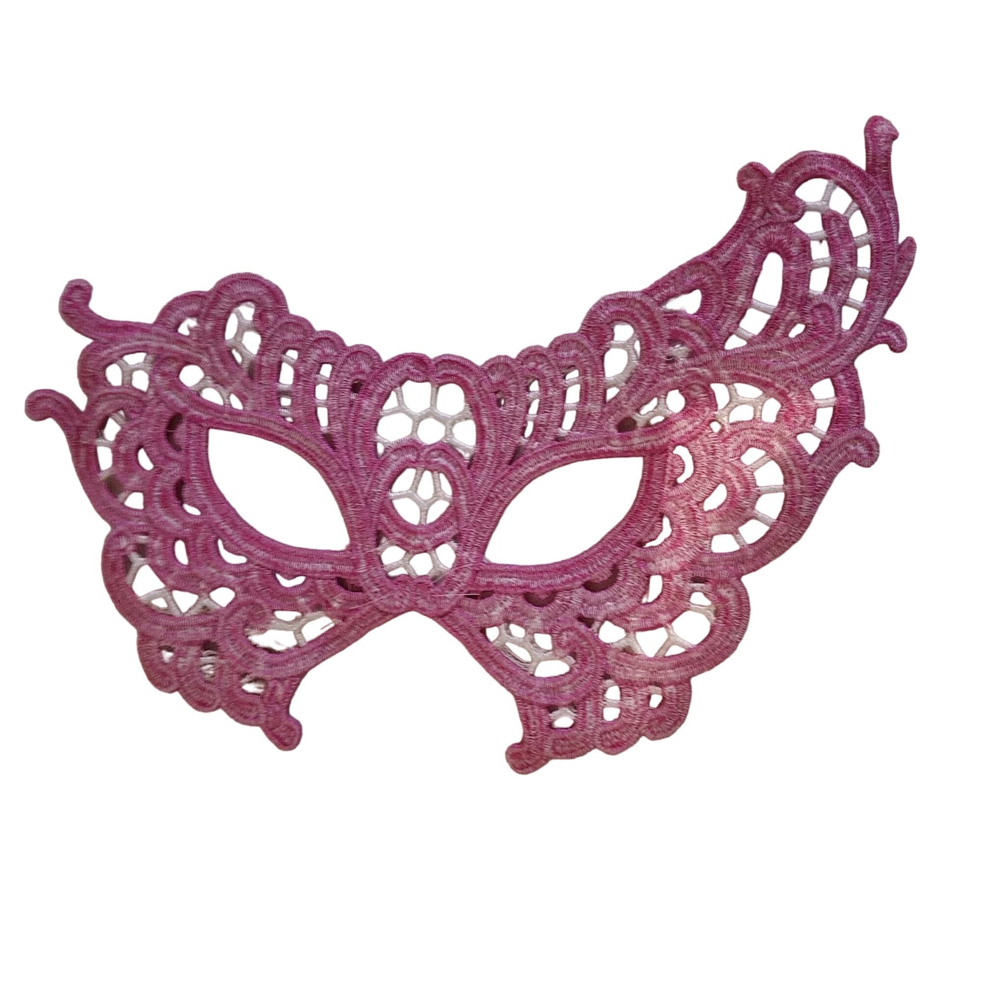 Embroidered Mardi Gras Mask 9 x 5 Pink White Decorate Add a stick Ribbons Jewels glitter Rinse in Water to make softer before you decorate