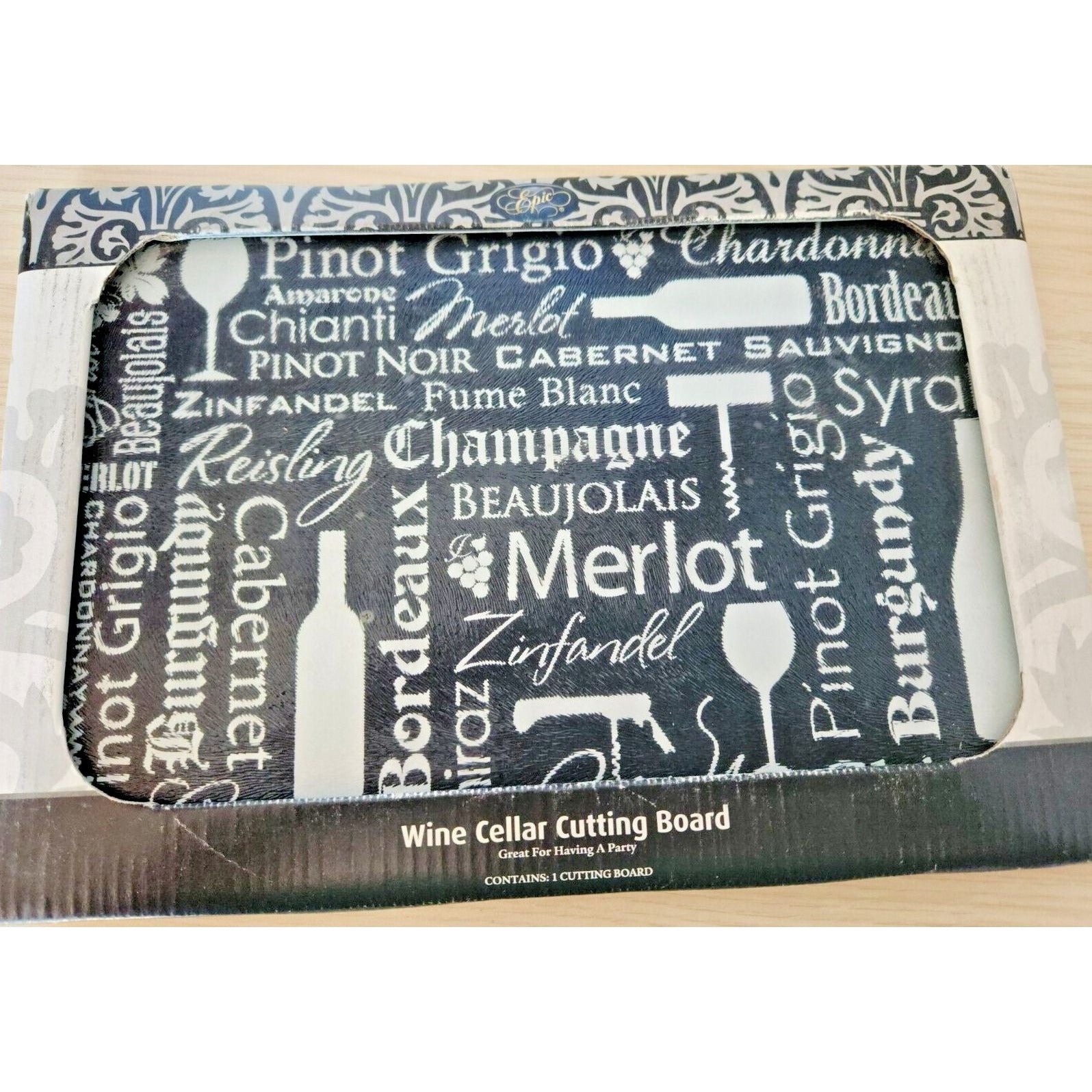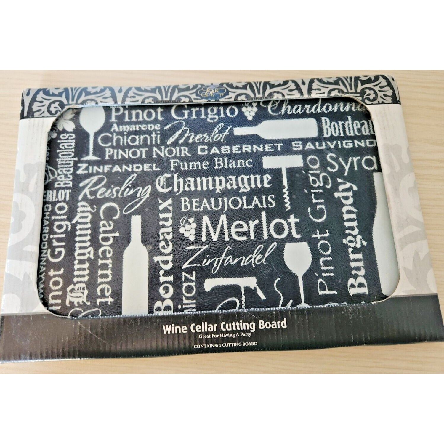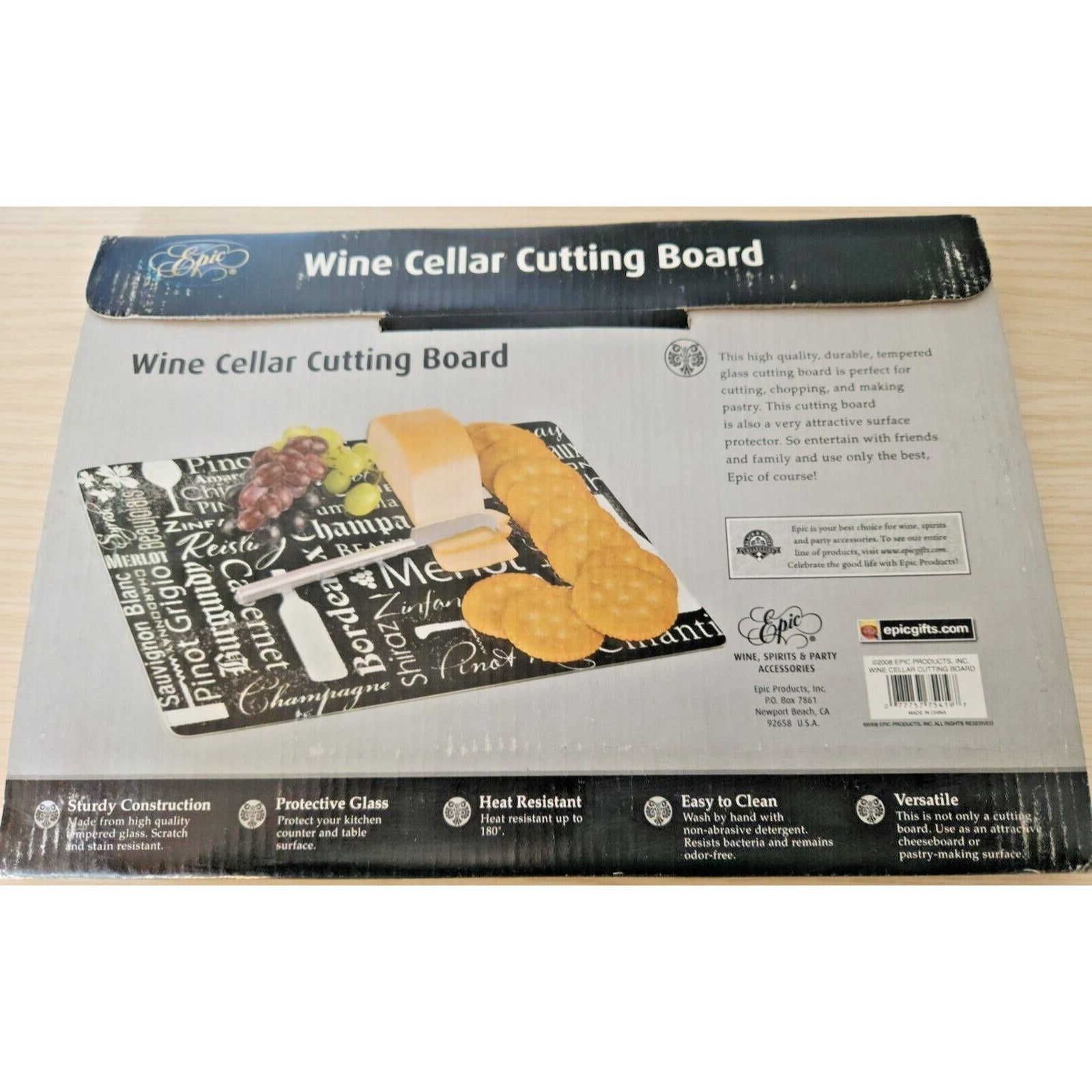 Epic Wine Cellar Tempered Glass Cutting Board 12" x 8" Wine Names Packaged