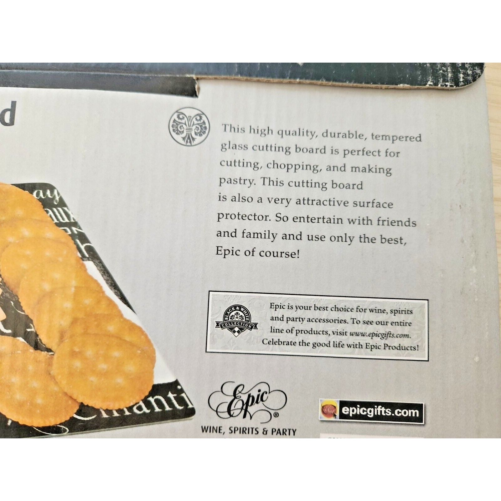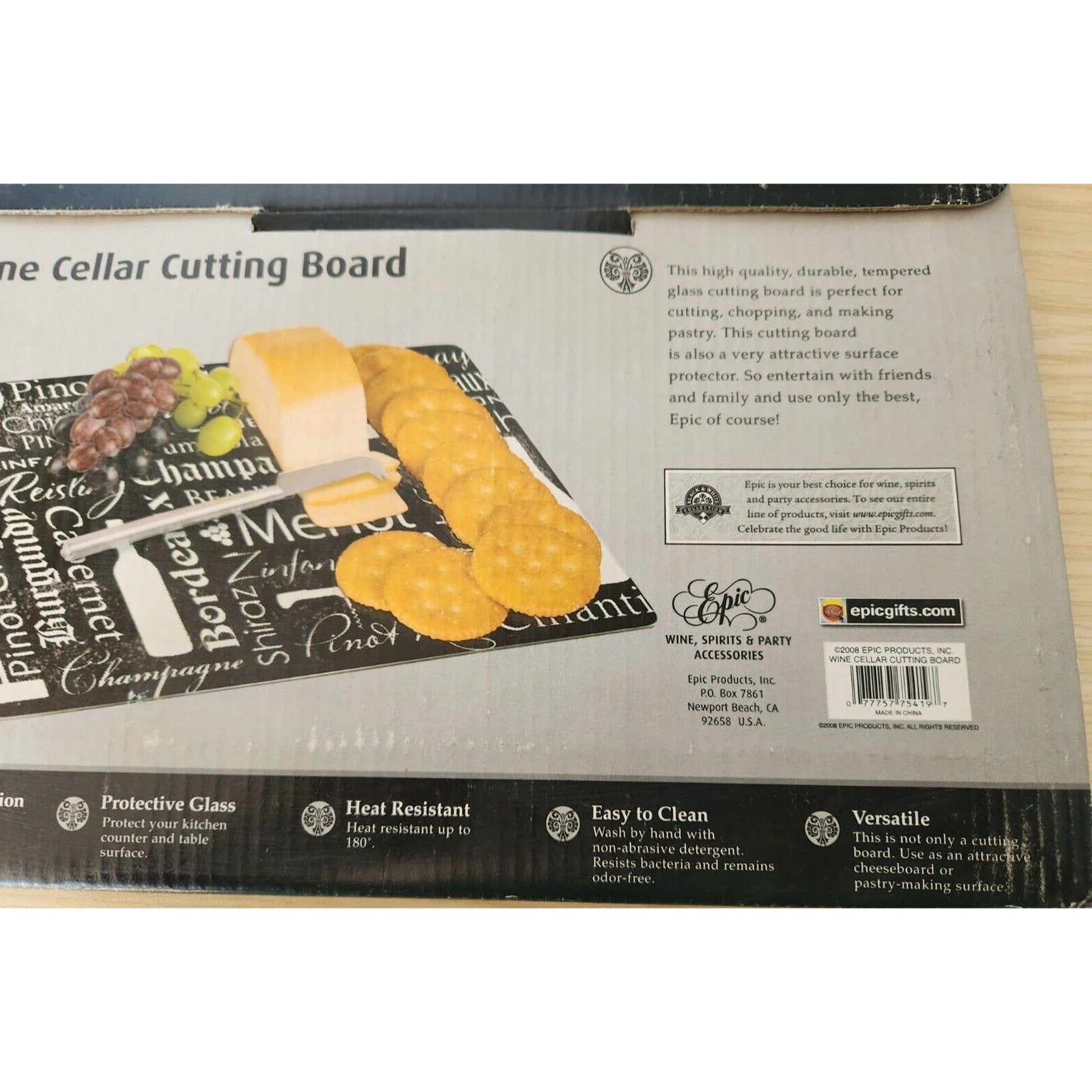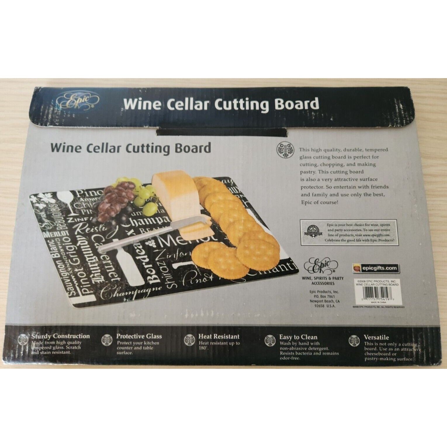 Epic Wine Cellar Tempered Glass Cutting Board 12" x 8" Wine Names Packaged