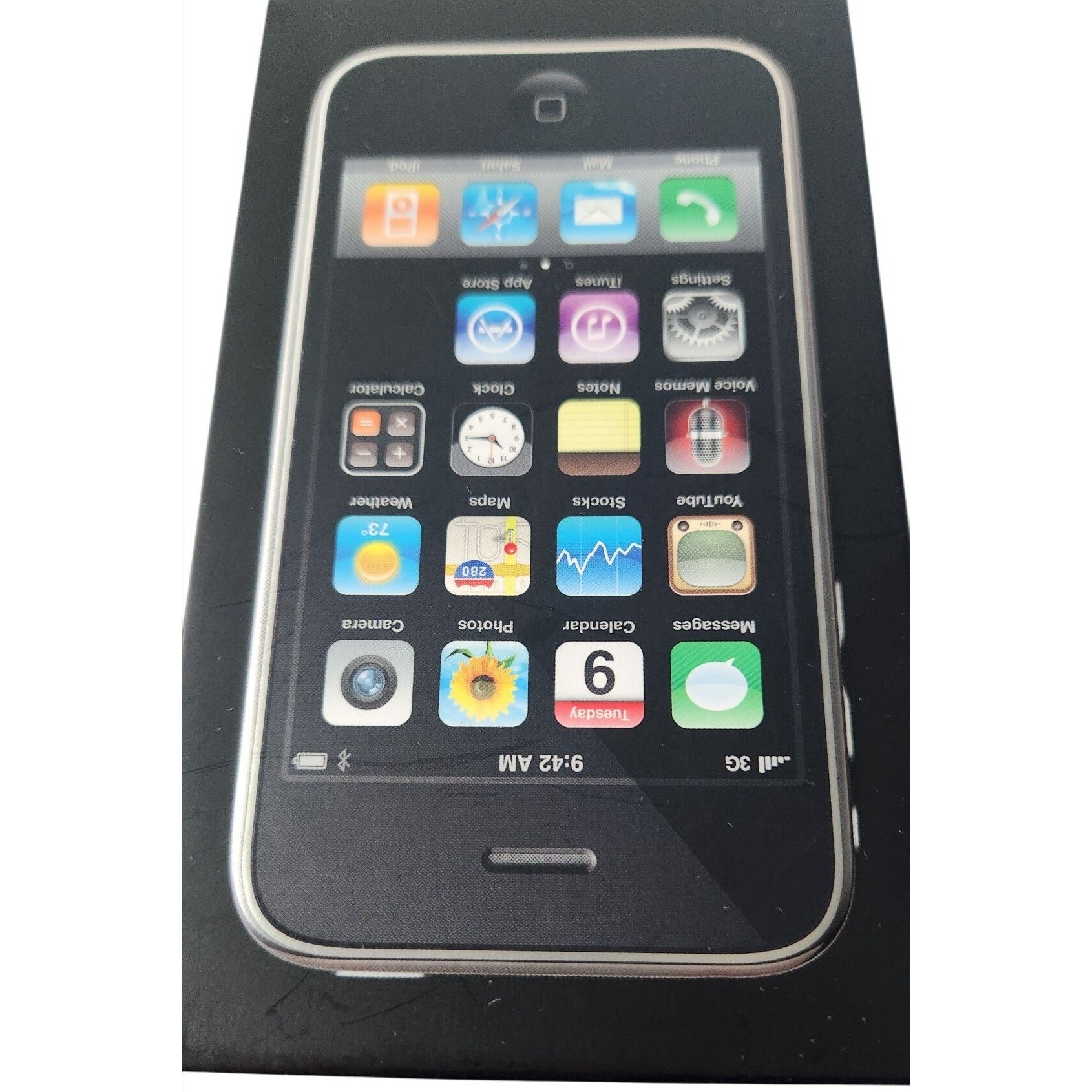 For Parts This 1Phone 3G in vibrant blue offers 8GB of storage, perfect for essential apps and media. Comes with box, instructions, plug, and wire for complete setup. Ideal for everyday use.