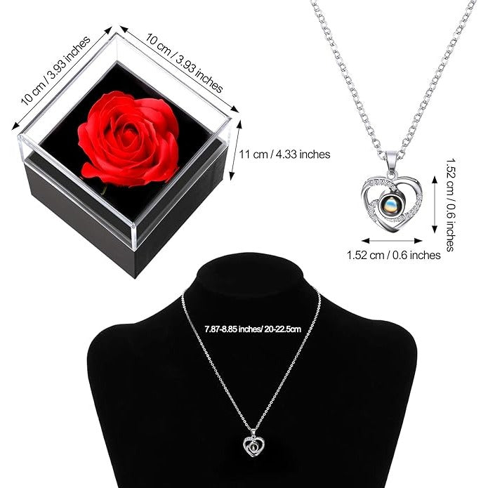 Detailed information: there are 1 piece of I love you heart pendant necklace and 1 piece of red rose jewelry gift box; The necklace chain is about 16 inches in length, the extension chain measures approx. 2 inches, the pendant is about 1.5 x 1 inch, which allows you to adjust it into proper size according to your own needs, one size is suitable for most women