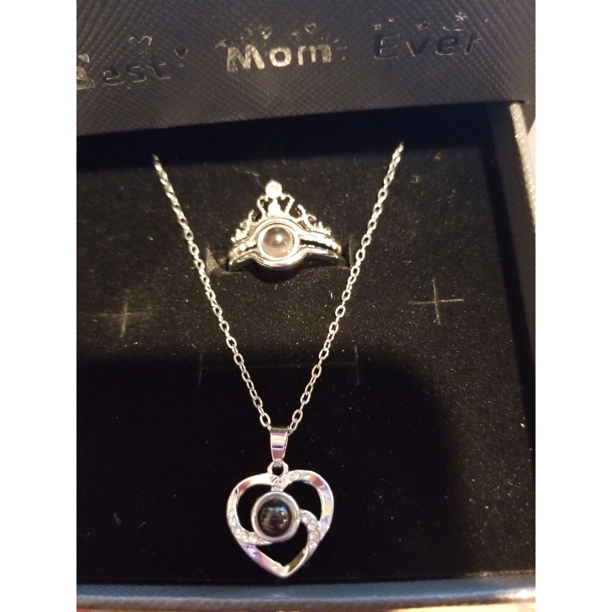 Gift Box For Mom Box says Best Mom Ever Necklace Heart Pendant and Ring with Red Rose Jewelry Storage Box for Women Mother's Day