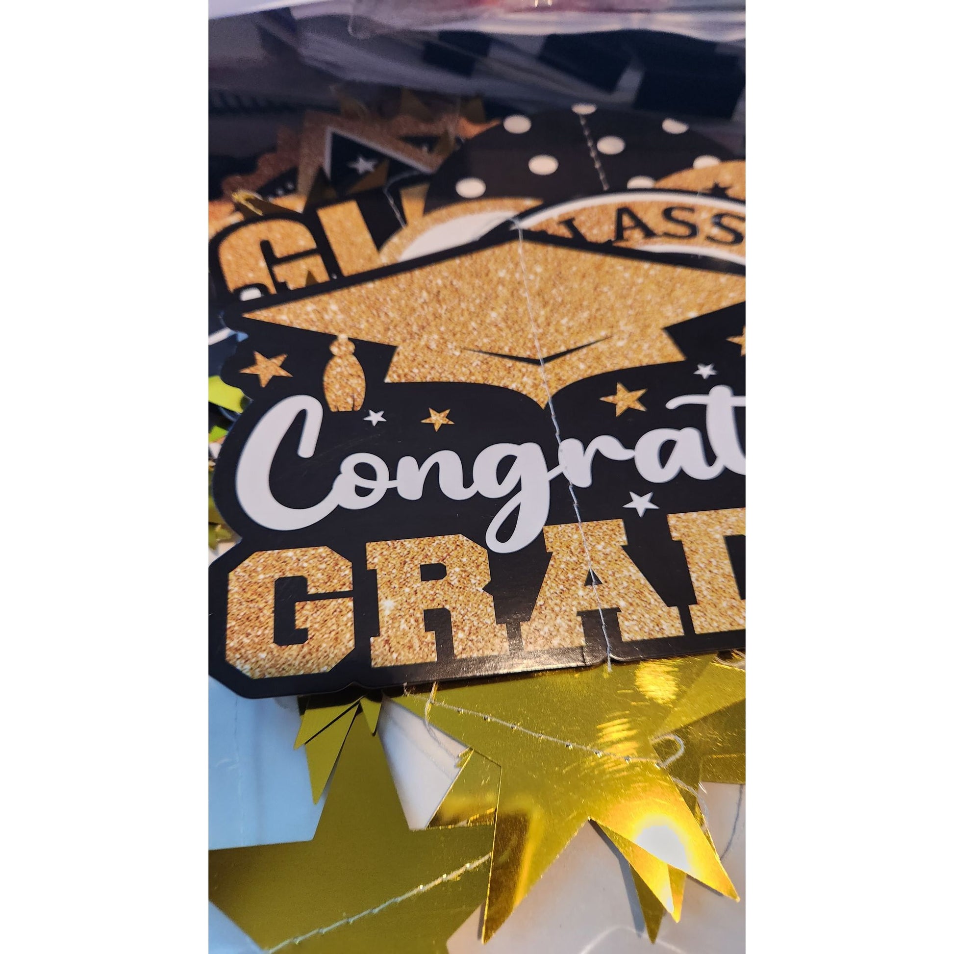 Graduation Banner 12 Signs Stars 2023 Gold Black White