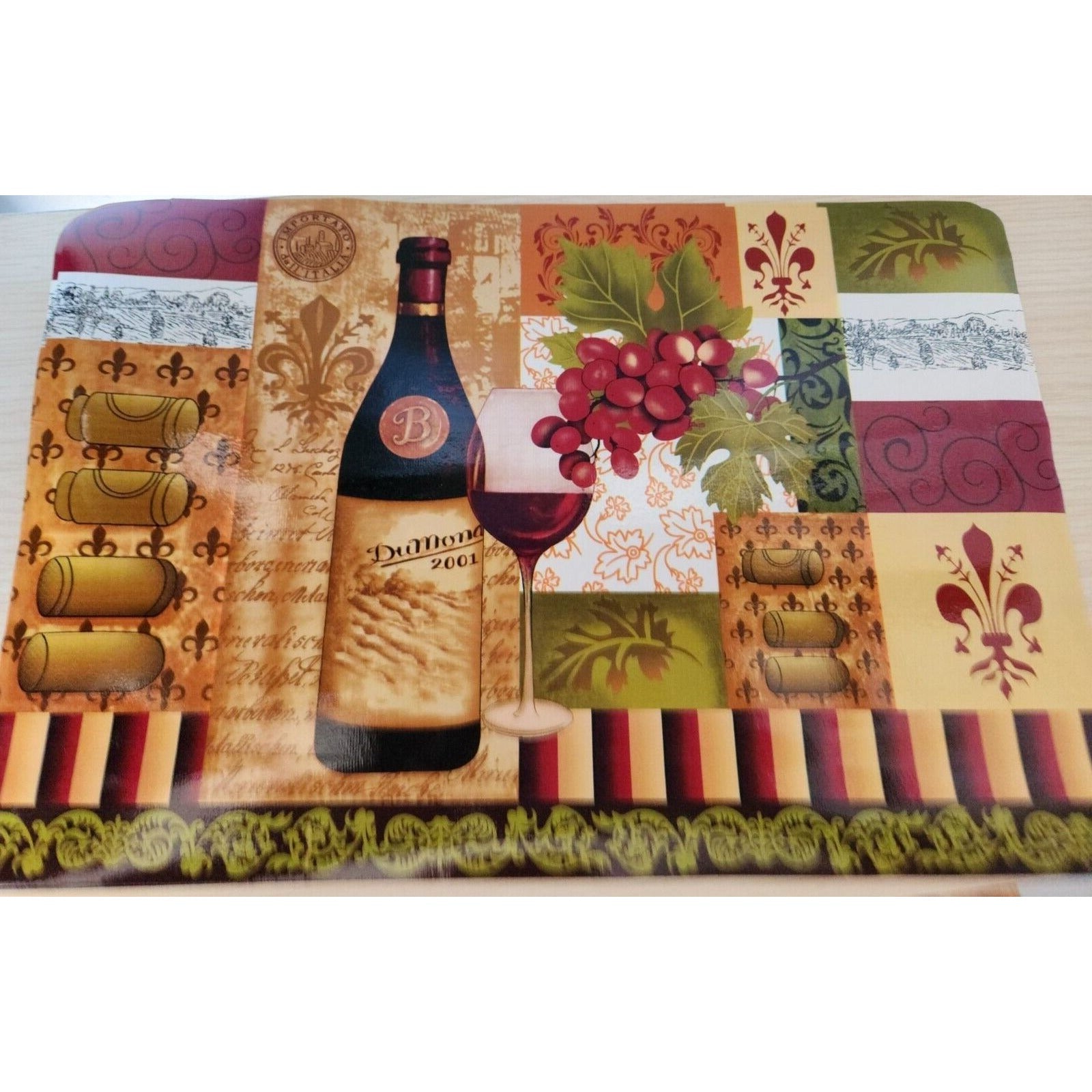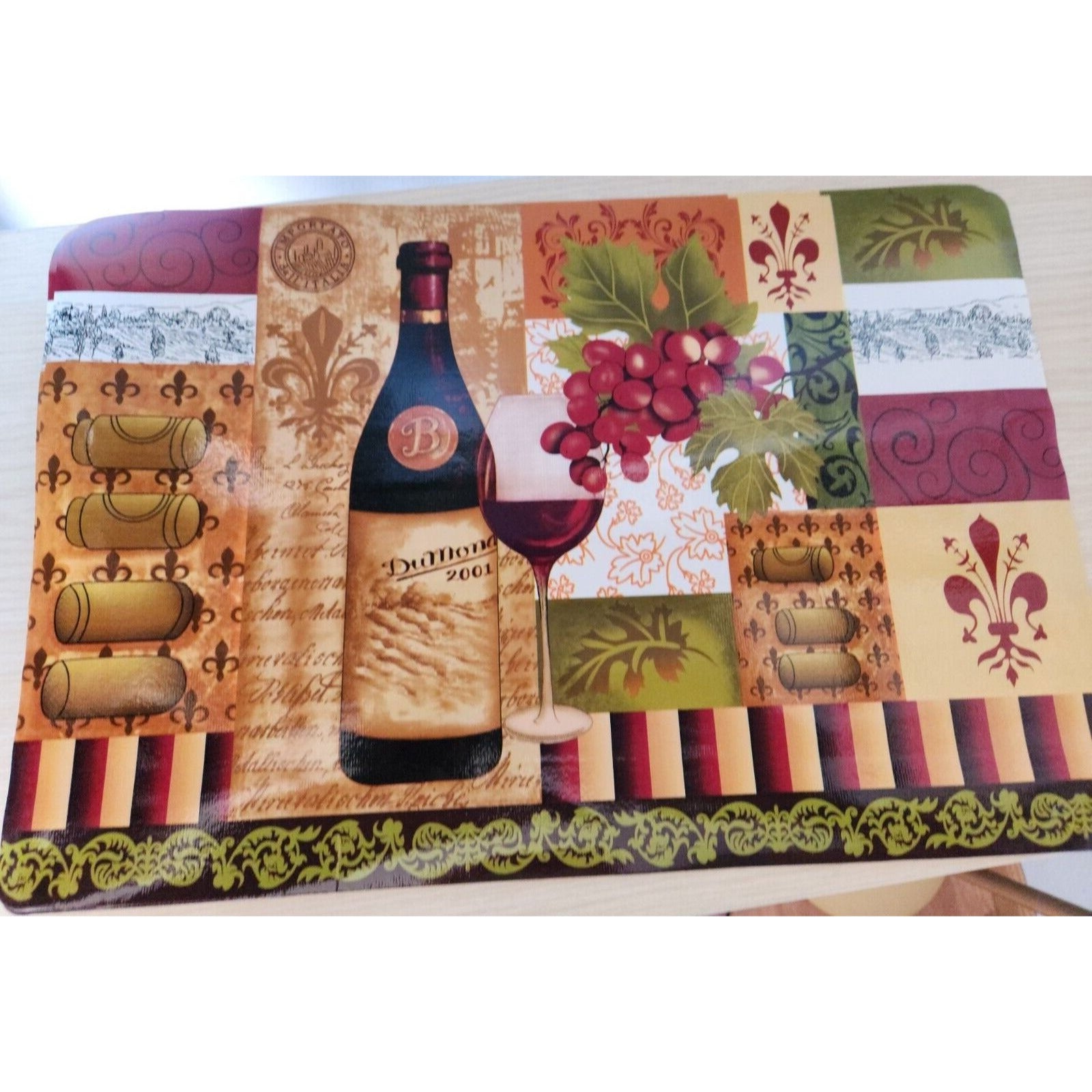Home Store Wine Bottle Grape Vinyl Placemat Set of 2 Softback Size 18" x 12"