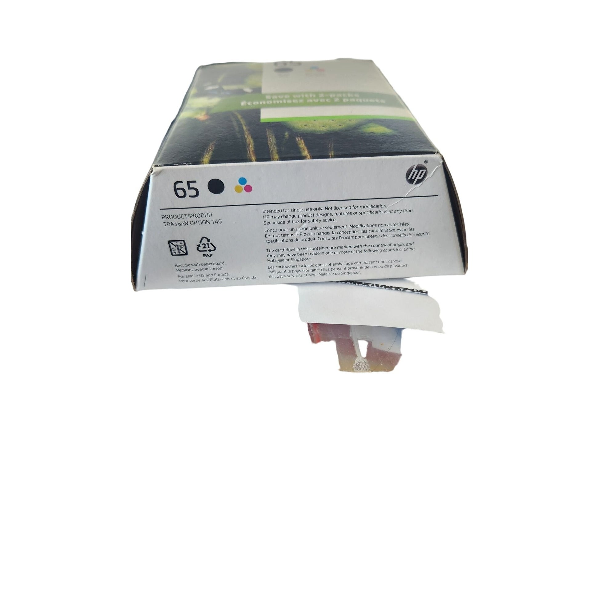 Save more on printing costs with this HP 65 Black & Tri-Color Ink Cartridges 2-Pack. Ideal for vibrant and clear print jobs.