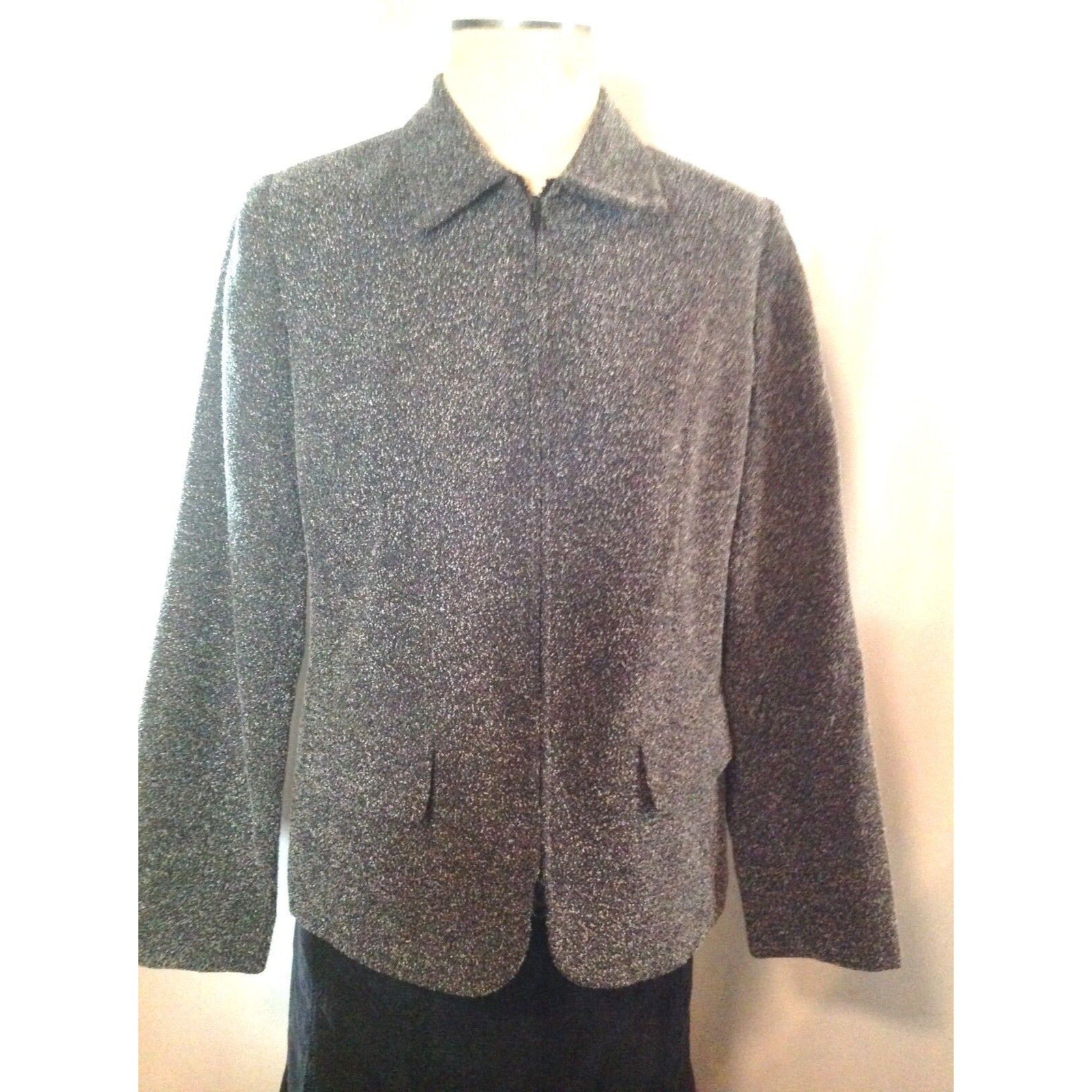 Jacket Women Sag Harbor Size 10 Black White Long Sleeves Lined Zipper Front