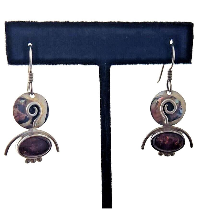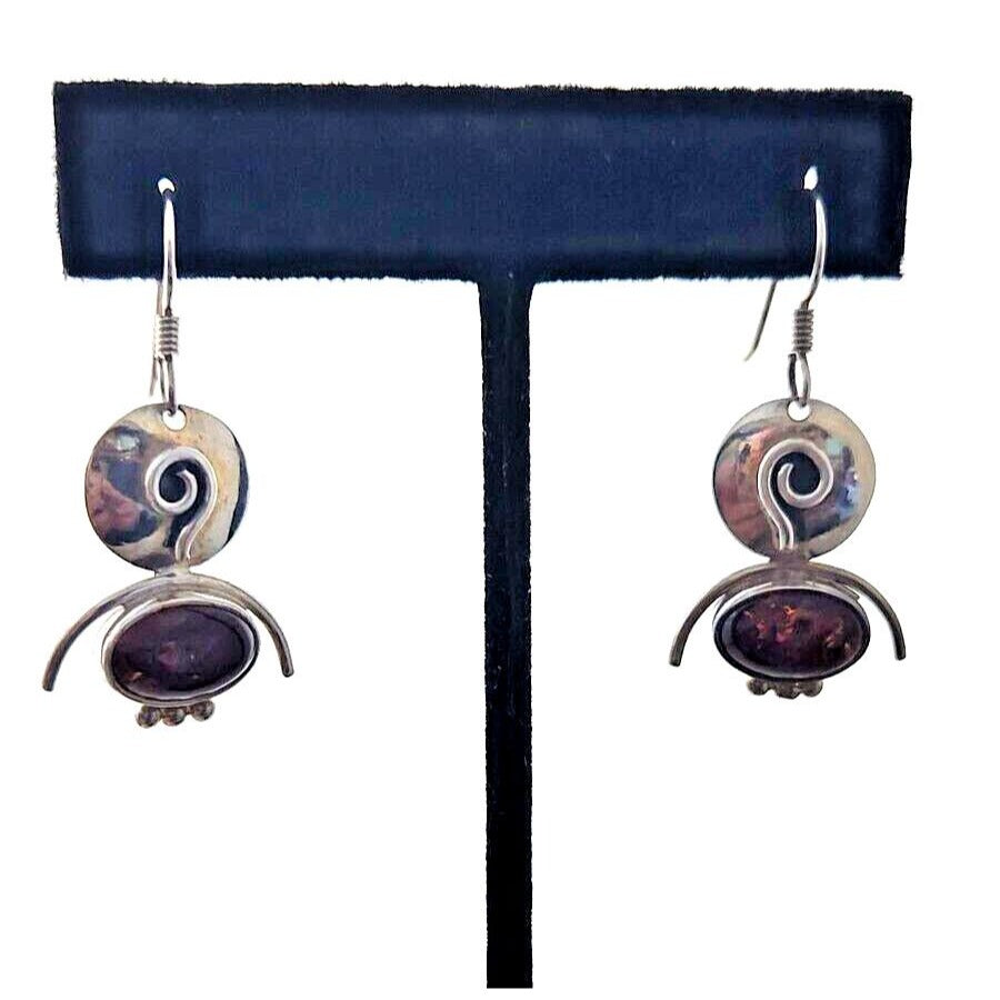 Jewelry Earrings Set Oval Amber Circle Top 925 Silver Weight 5.5 Gr Handmade