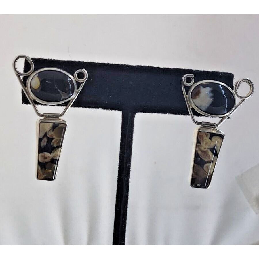Jewelry Earrings Set Peanut Wood 2 Part Floating 925 Silver Weight 10 Gr Handmade